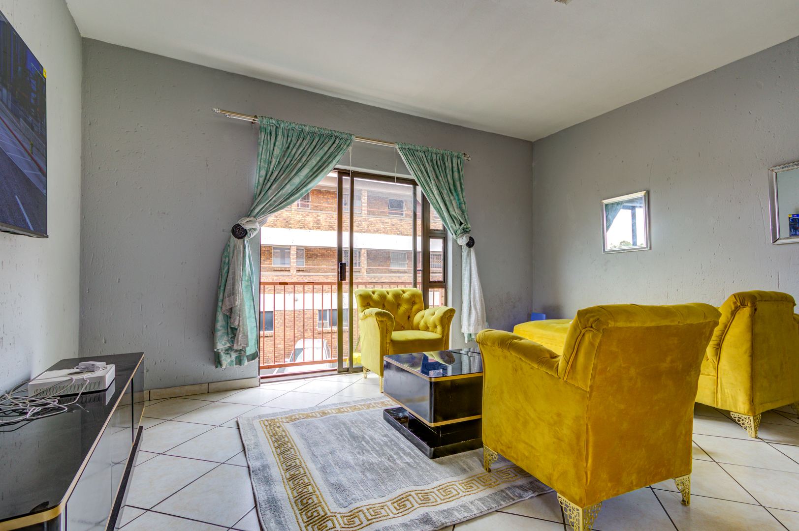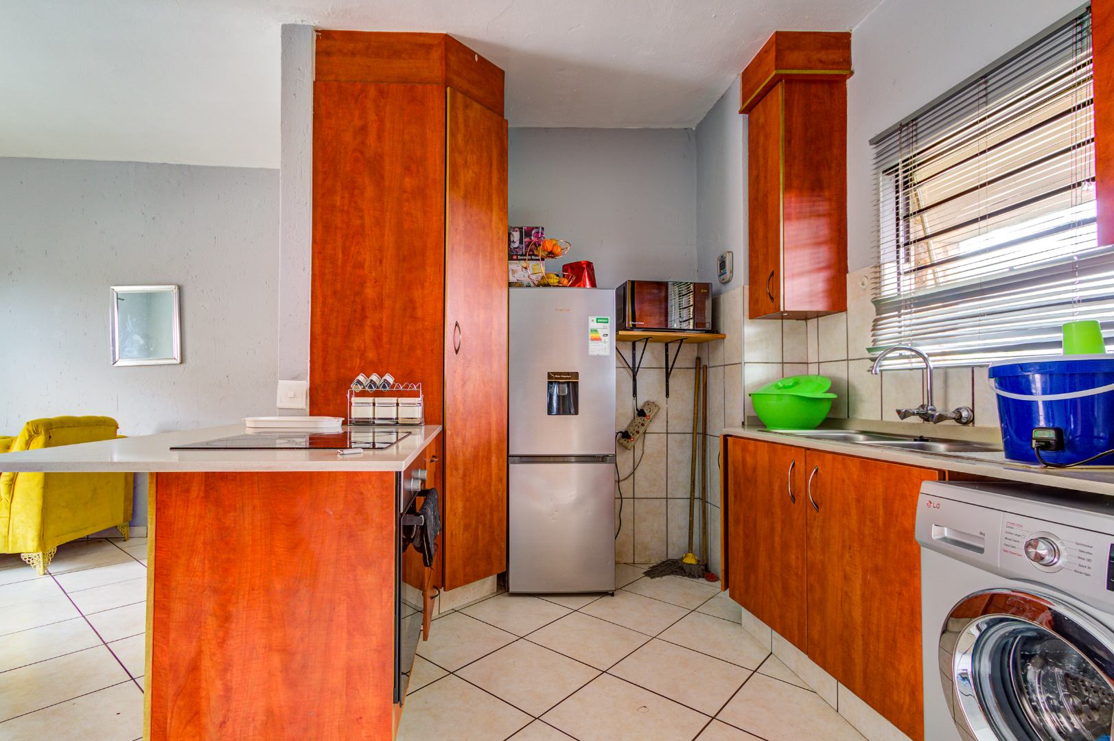 Discover comfortable living in this inviting 2-bedroom, 2-bathroom apartment located within a secure complex in Croydon, Kempton Park. Spanning 91 square metres, this residence offers a practical layout designed for modern lifestyles, ideal for individuals or small families seeking convenience and security. The heart of the home features an open-plan kitchen seamlessly flowing into the lounge area. The kitchen is well-appointed with warm-toned wooden cabinetry, ample storage, and modern appliances including a built-in hob, integrated washing machine, and a refrigerator. A central island or breakfast bar enhances functionality and provides a casual dining space. The lounge area benefits from abundant natural light, with large sliding doors opening onto a private balcony, perfect for enjoying the fresh air. Both bedrooms are designed for comfort, featuring tiled flooring and good natural light. The main bedroom boasts an upholstered bed frame and modern bedside tables, while the second bedroom includes extensive built-in wooden wardrobes, offering generous storage solutions. The two bathrooms are fully tiled for easy maintenance, each equipped with essential fixtures, including a bathtub with a glass shower screen and a vanity unit. Additional features include a dedicated garage and an extra parking space, providing secure accommodation for vehicles. The complex offers peace of mind with 24-hour security and a security gate, ensuring a safe environment for residents. Fibre connectivity is also available, catering to modern communication needs. Croydon, situated in Kempton Park, is a well-established suburb known for its accessibility and community feel. It offers convenient access to major routes, local amenities, and schools, making it a desirable location for those seeking a balanced lifestyle in Gauteng. Key Features: * Two Bedrooms, Two Bathrooms * Open-Plan Kitchen and Lounge * Modern Kitchen Appliances * Private Balcony Access * Built-in Wardrobes * Tiled Flooring Throughout * Single Garage and Additional Parking * 24-Hour Security and Security Gate * Fibre Ready