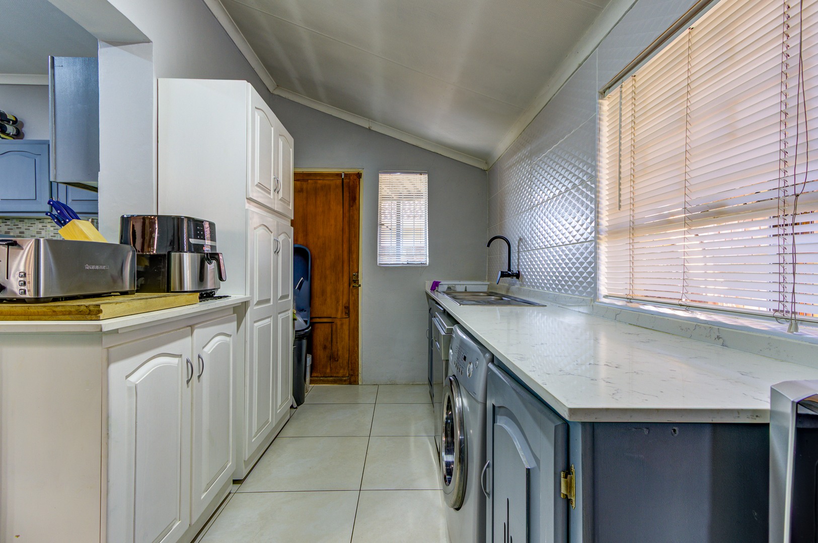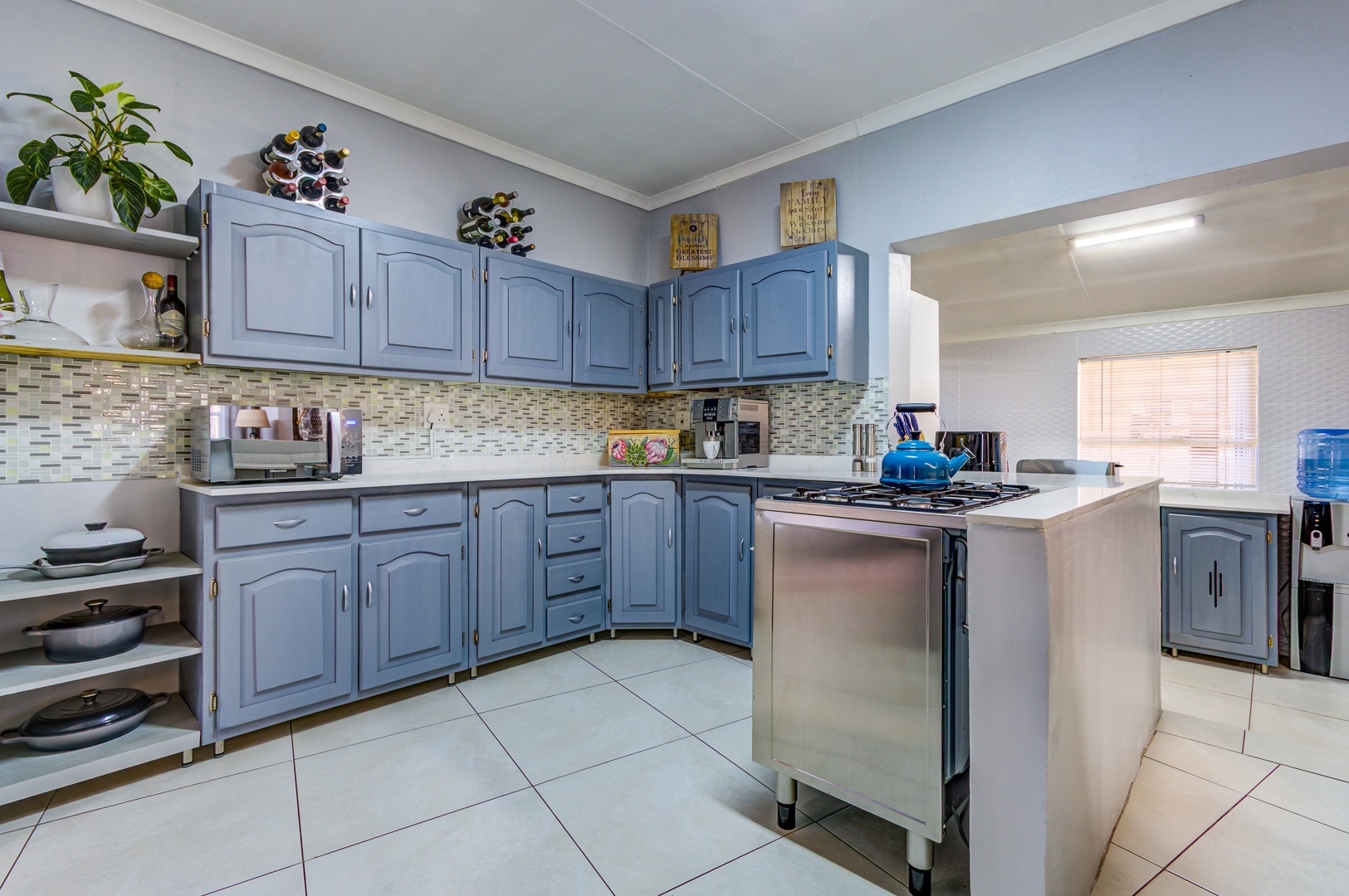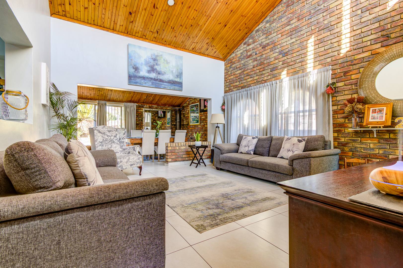 The property also includes 2 automated garages with a drive-through to a secure Dbl carport. A solar system that is sufficient enough to run the main house and the 1 bed granny flat, ensuring peace of mind during load shedding.