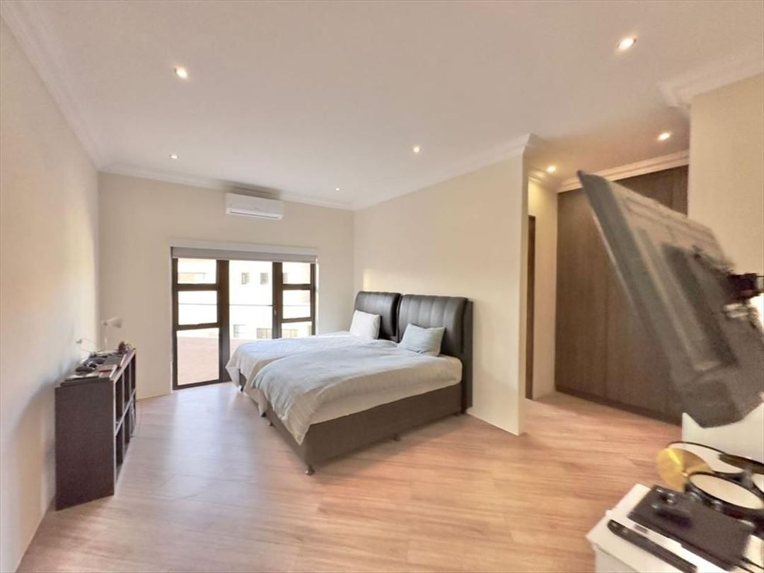 The home features 4 large bedrooms, all tiled and fitted with blinds, each opening onto a private balcony. The main bedroom impresses with its size and includes walk-in cupboards.