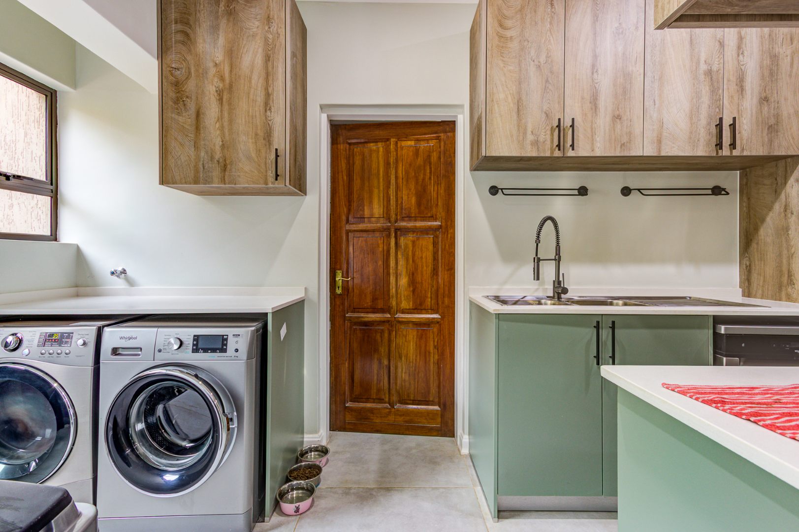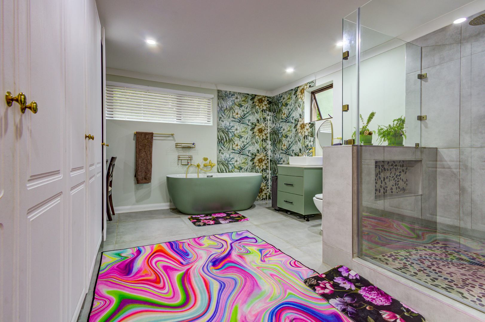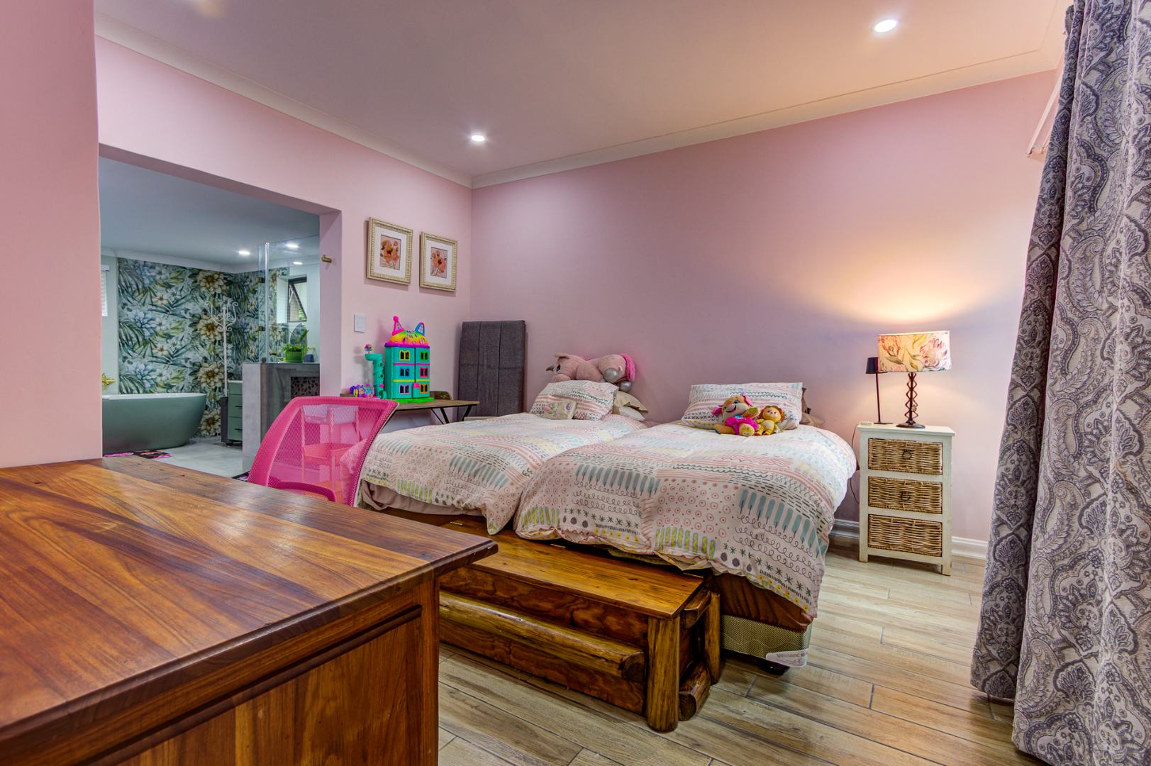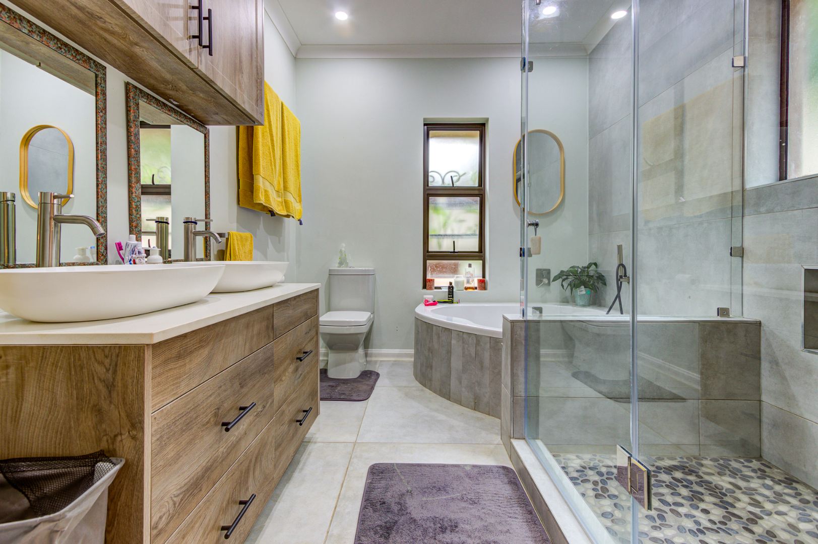 Inside, you’ll find three exceptionally spacious bedrooms and three stylish, modern bathrooms. Two of the 3 bedrooms are en-suite. The main en-suite is a true showstopper, boasting a luxurious design, generous space, and elegant dual basins. Ample built-in cupboards ensure practical and organized living.