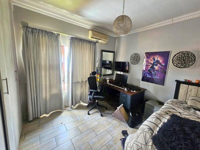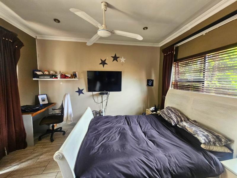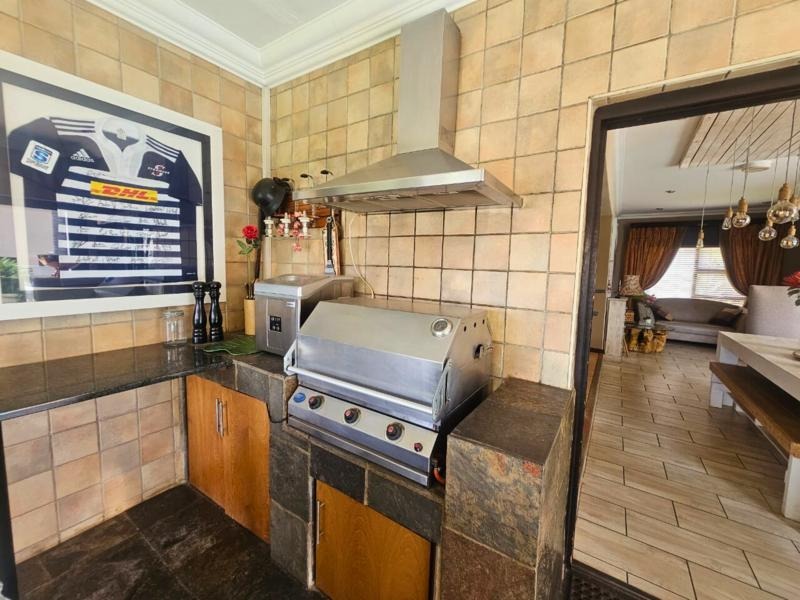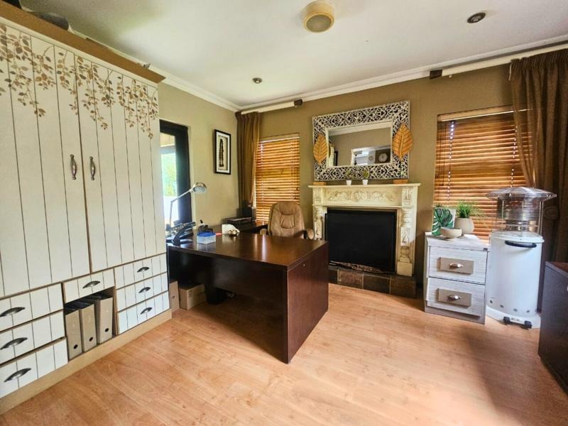 An additional room offers flexibility and can be used as a second study or converted into a fourth bedroom if required. Outdoors, the manicured garden and green lawn frame the enclosed patio and swimming pool, creating a serene setting for everyday living. A braai area enhances the outdoor entertainment appeal, making it perfect for family gatherings.