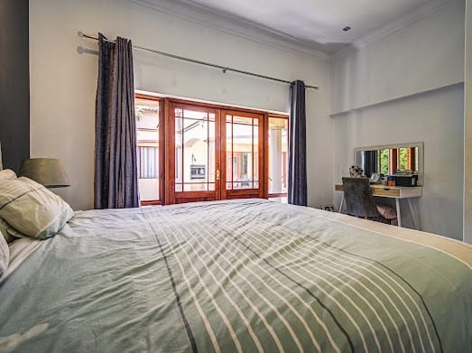This distinguished residence offers three generously proportioned bedrooms, providing serene sanctuaries for rest and rejuvenation. The two well-appointed bathrooms include a luxurious en-suite, ensuring privacy and comfort for the discerning homeowner. Each space is designed to offer a tranquil retreat, reflecting the home's overall commitment to quality and refined living. Beyond the interiors, the property extends its allure to the outdoors, where a private garden awaits. While offering ample space for outdoor enjoyment and established landscaping with palm trees, it presents a canvas for personal enhancement, allowing the new owner to cultivate their bespoke outdoor oasis. A charming patio provides an ideal setting for al fresco dining or quiet contemplation, further enhancing the lifestyle appeal of this exceptional home.