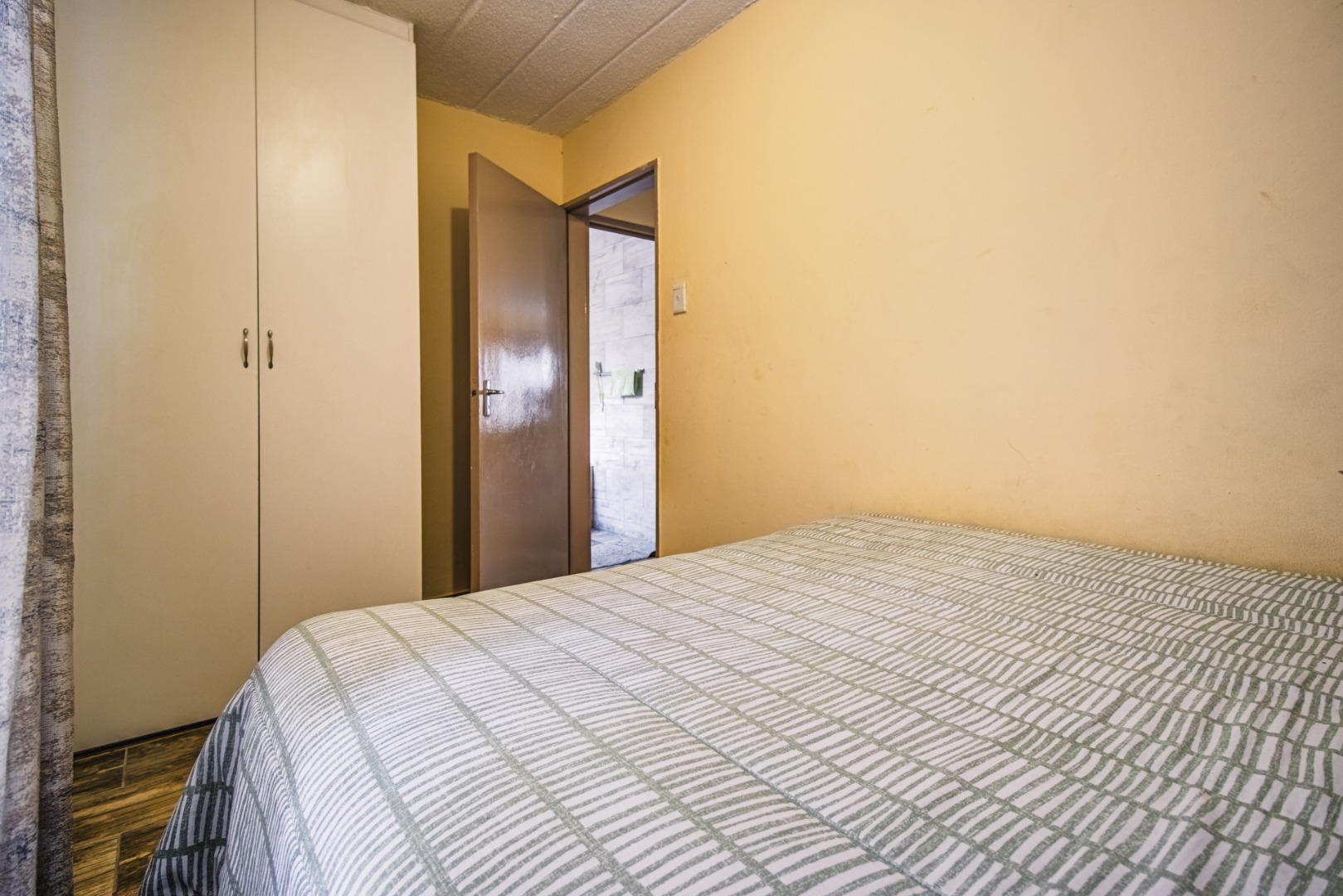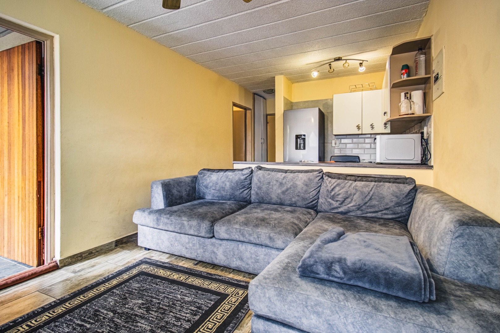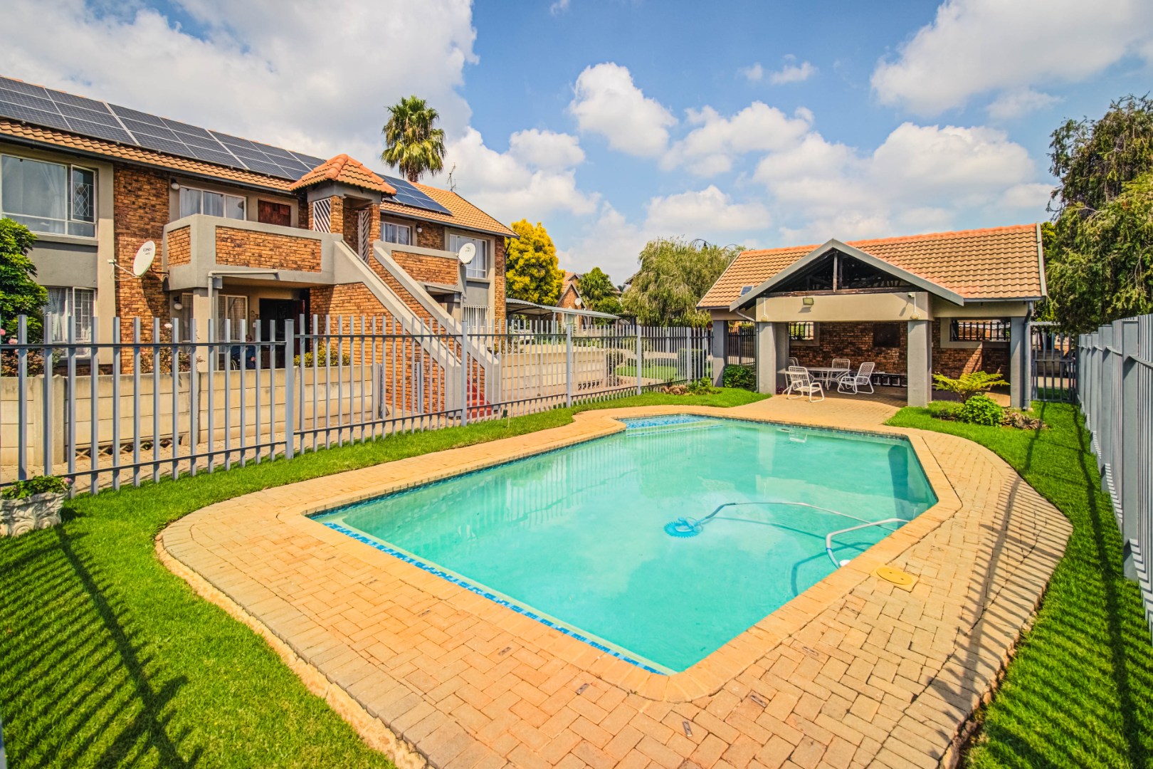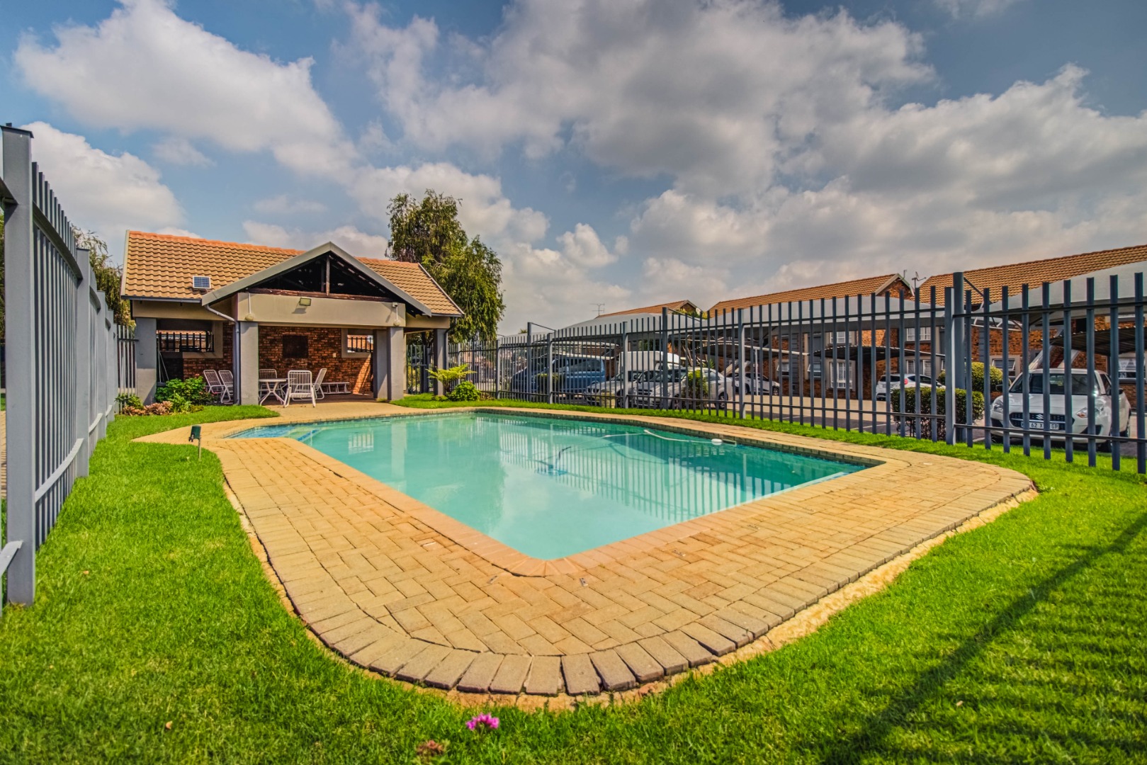 The interior features a functional kitchen, a comfortable lounge area, two well-proportioned bedrooms, and a single bathroom. The property is part of a complex that prioritises resident safety and convenience. Residents benefit from access to a communal swimming pool and a garden area, perfect for relaxation and outdoor enjoyment.