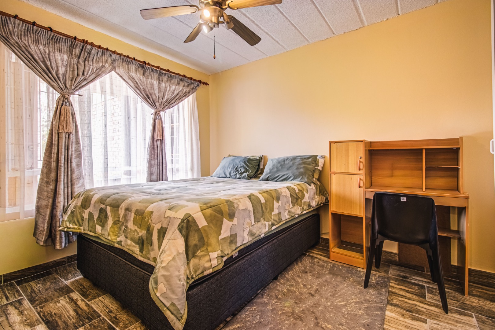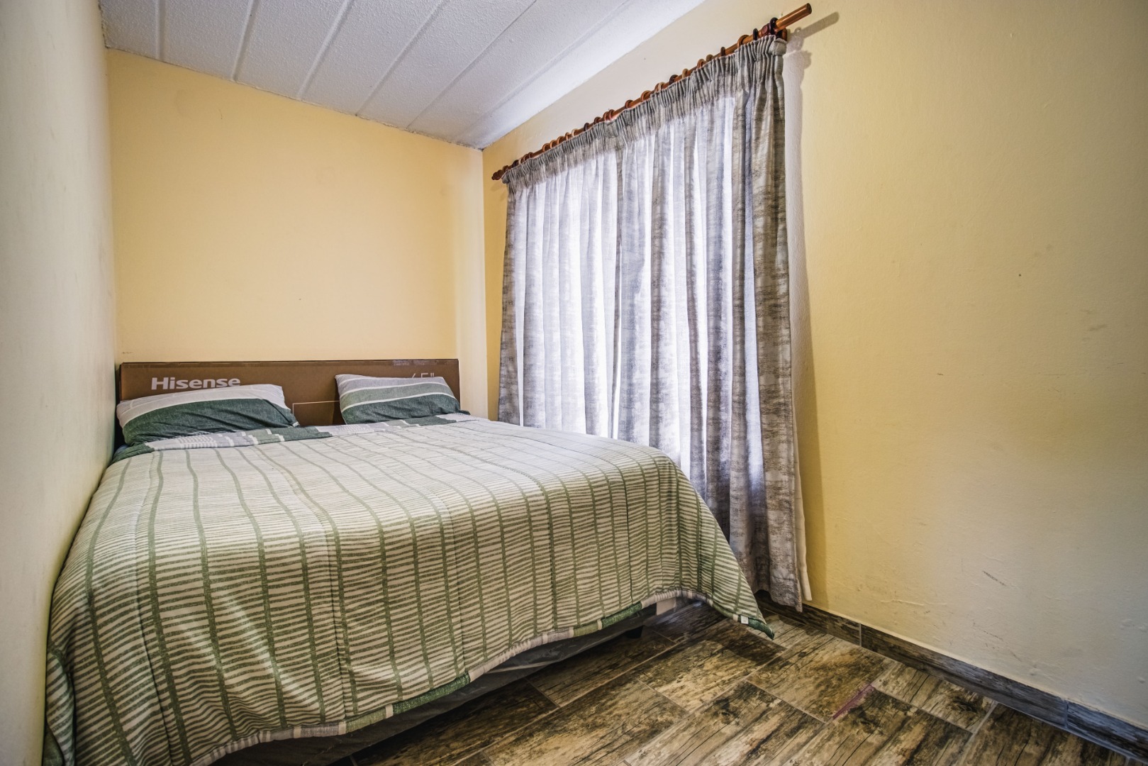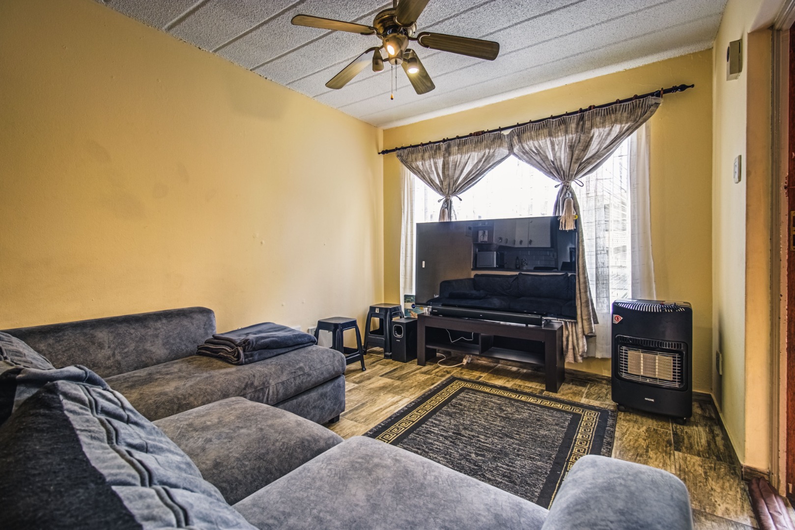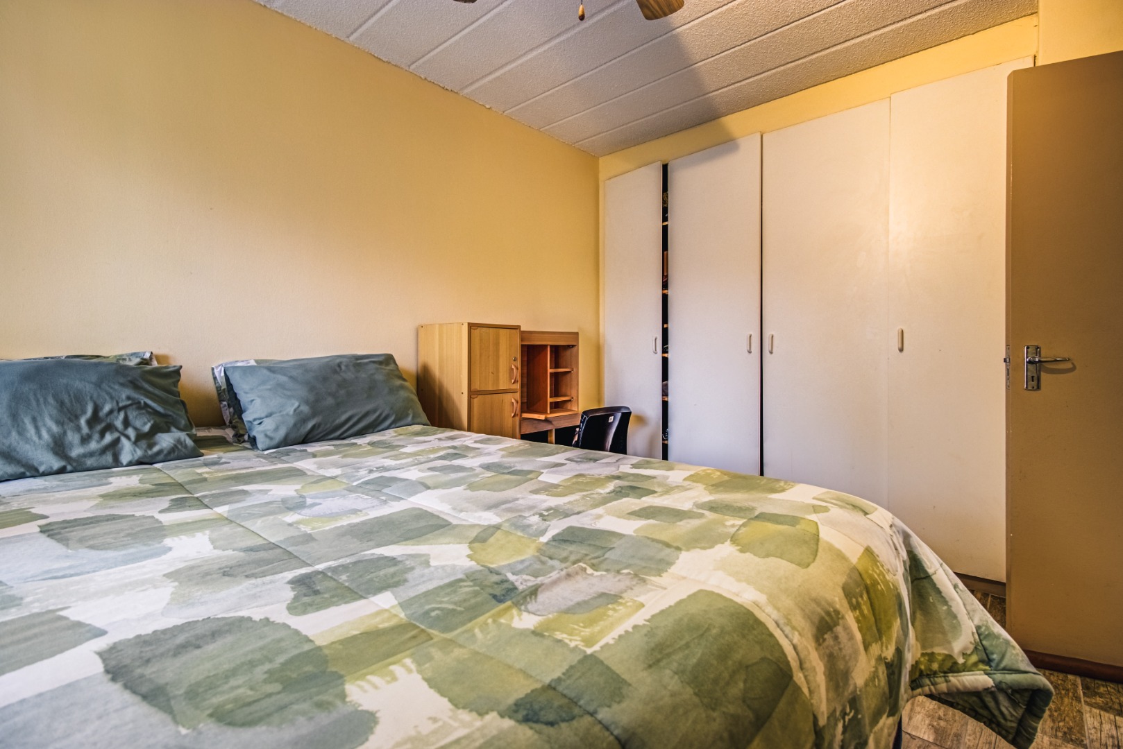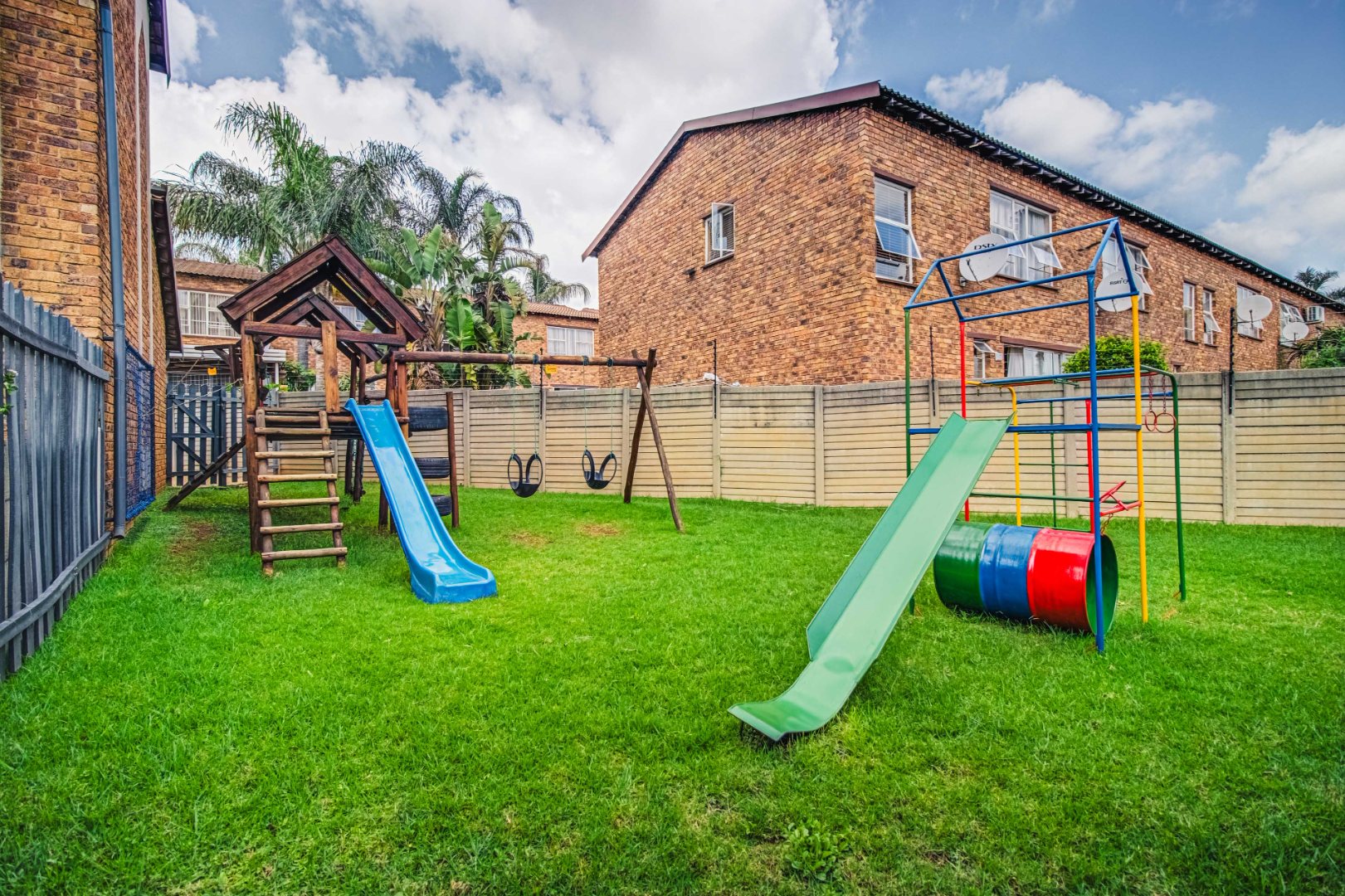 The interior features a functional kitchen, a comfortable lounge area, two well-proportioned bedrooms, and a single bathroom. The property is part of a complex that prioritises resident safety and convenience. Residents benefit from access to a communal swimming pool and a garden area, perfect for relaxation and outdoor enjoyment.