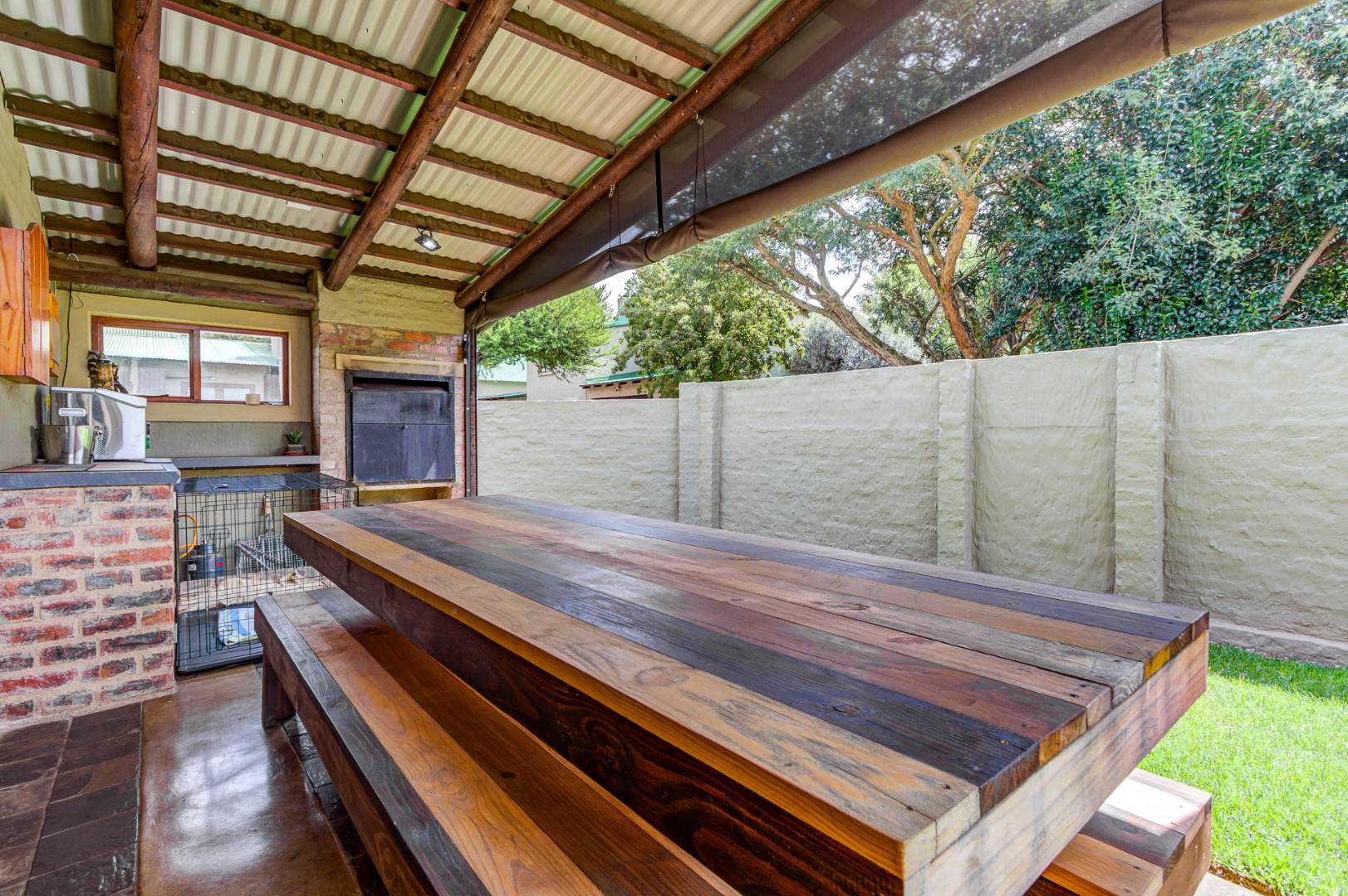 Step outside to a lovely covered patio with a built-in braai, overlooking a well-sized garden—perfect for relaxing or entertaining guests.