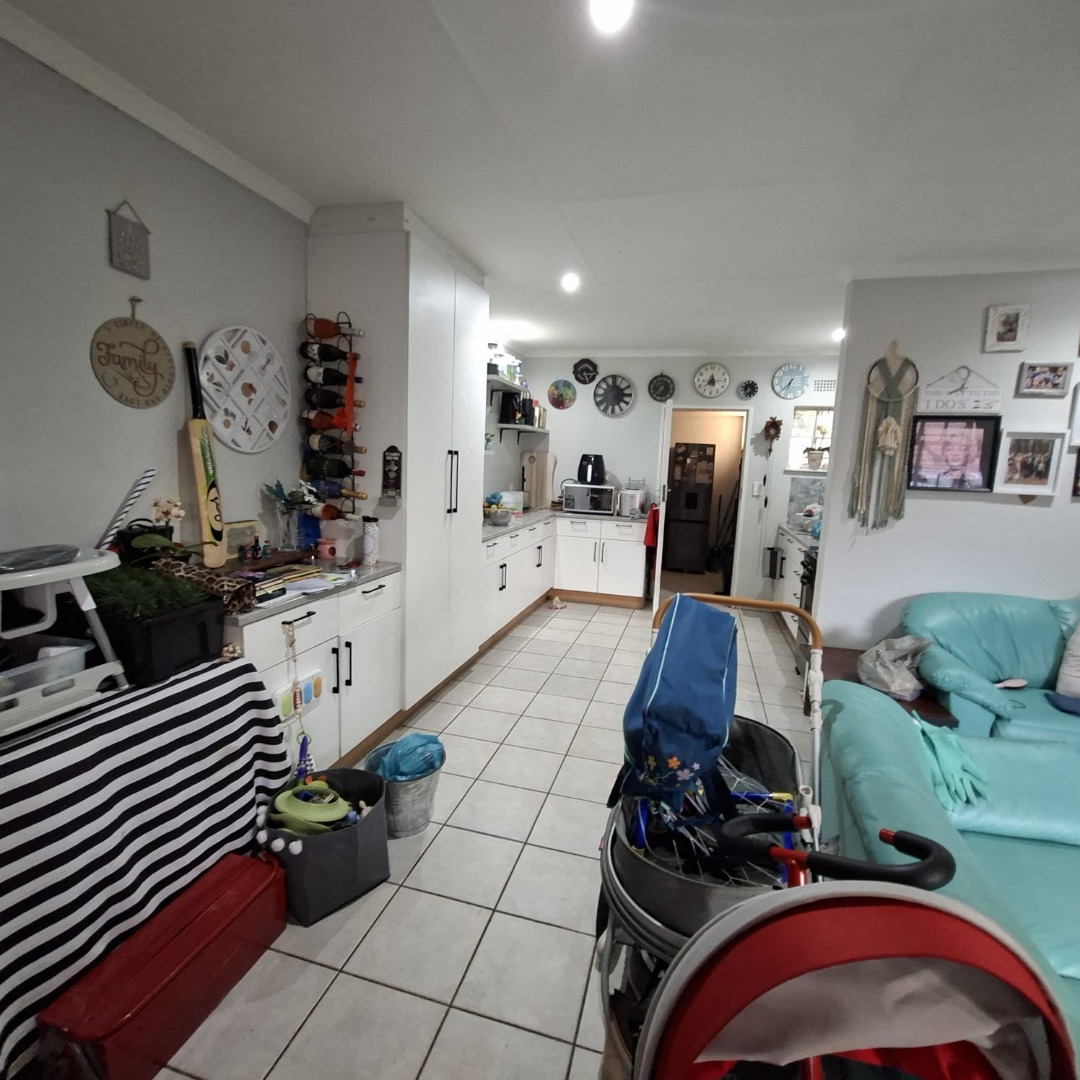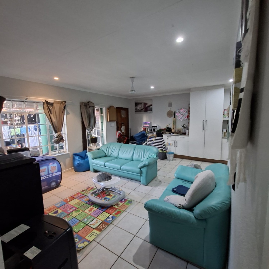 The home features a modern open-plan kitchen with a separate scullery, offering plenty of storage and keeping your living space neat and functional. The living area flows seamlessly to a private outdoor entertainment area, ideal for relaxing or hosting friends and family.