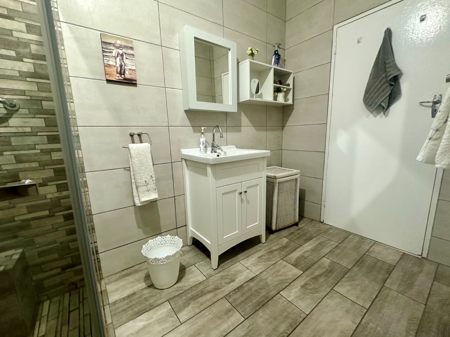 Security is well-addressed with an alarm system, electric fencing, outside security beams, an access gate, and a security gate, complemented by visible security bars on windows and a totally walled perimeter, ensuring peace of mind. Located in the suburban area of Glen Marais, this home offers convenient access to local amenities and a family-friendly environment within Kempton Park.