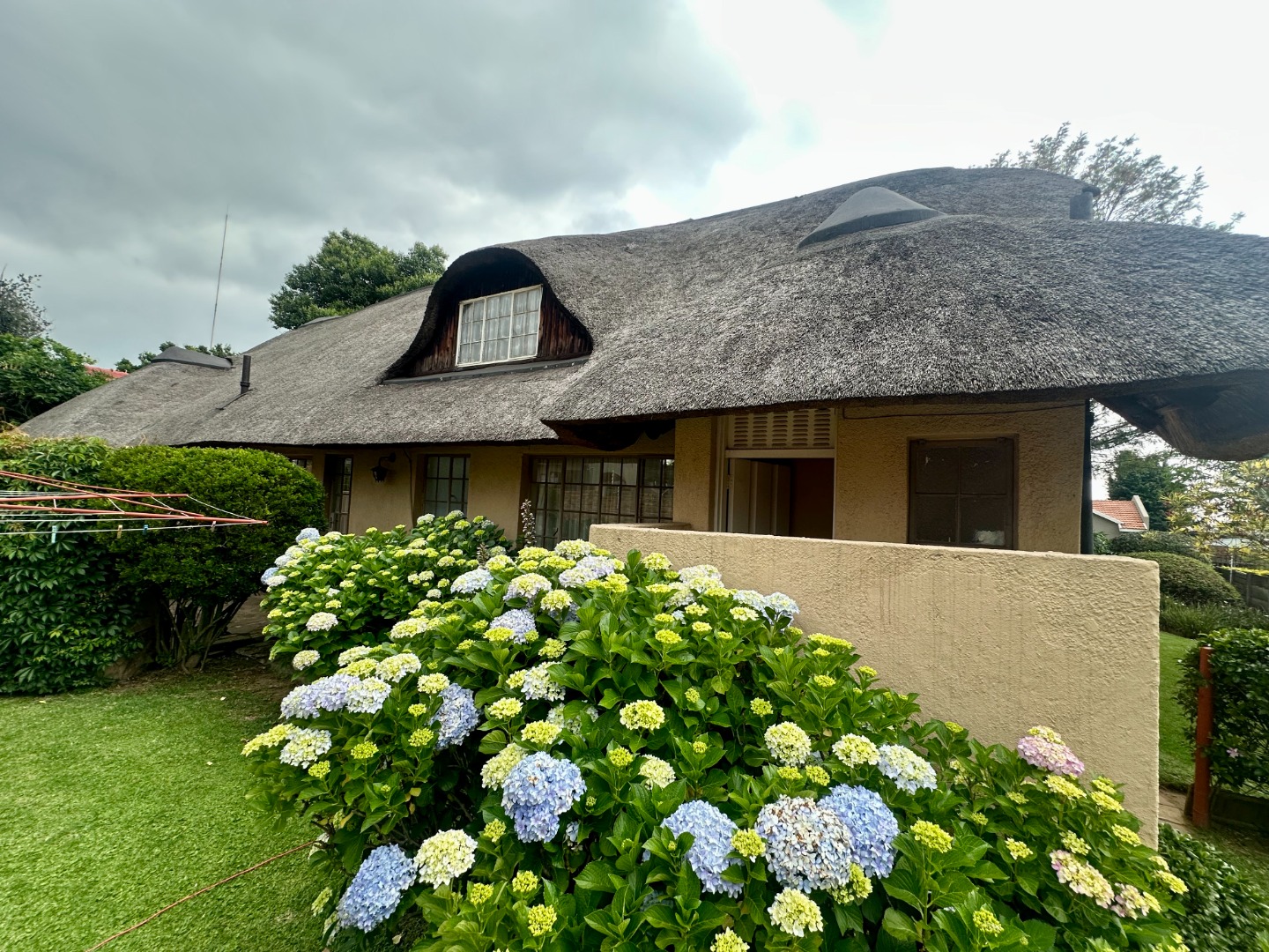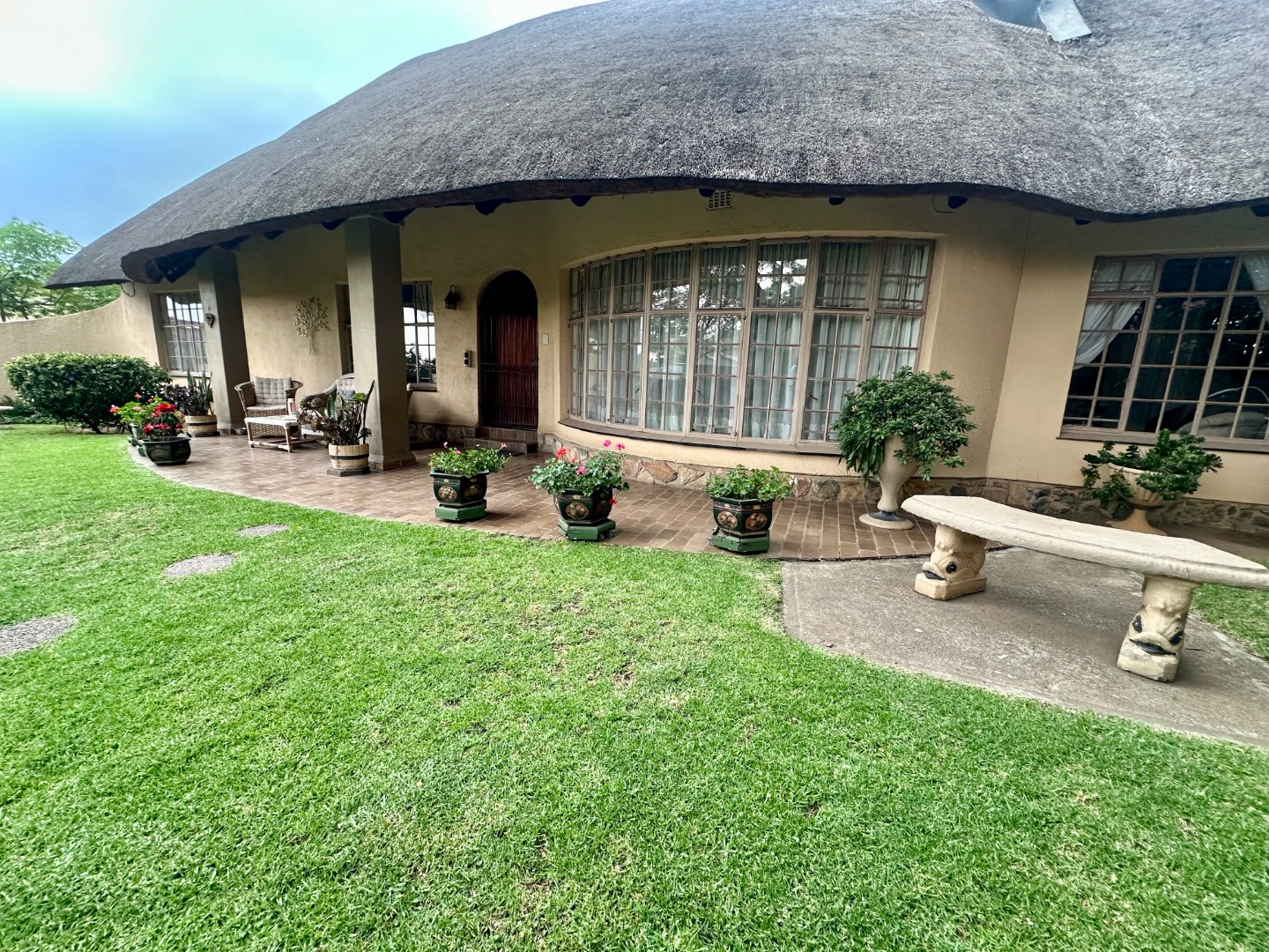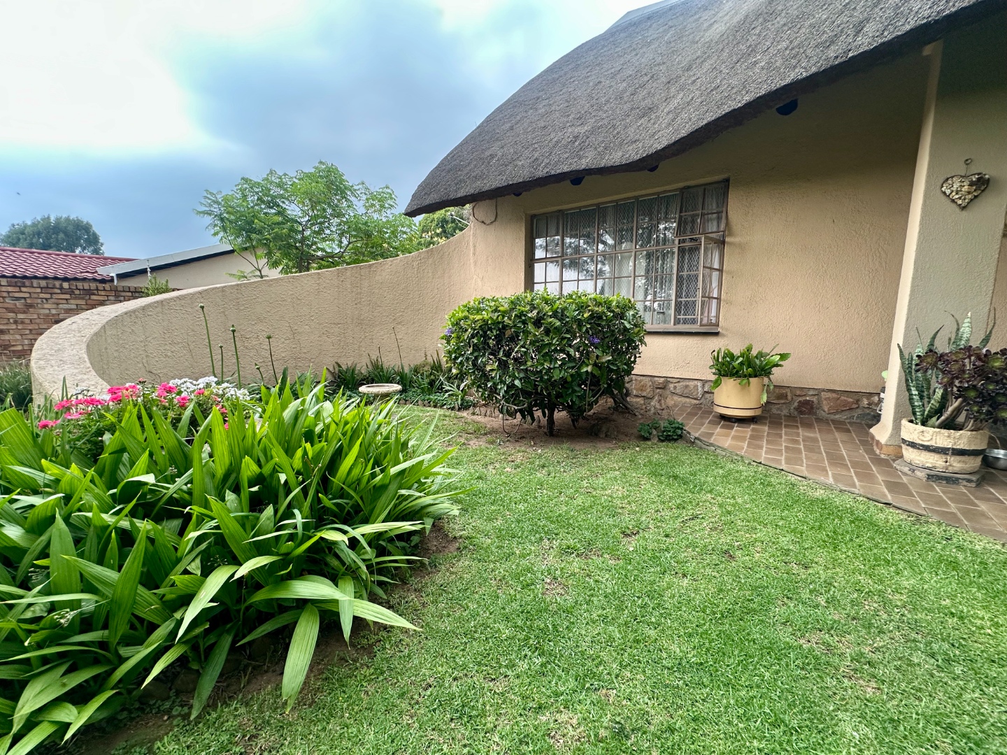 Discover this charming suburban residence in Glen Marais, immediately captivating with its distinctive thatched roof architecture. Set on a generous 1000 sqm erf, the property boasts exceptional kerb appeal, featuring a meticulously maintained, lush green garden and expansive lawn. Mature trees and vibrant garden beds enhance the tranquil outdoor ambiance, creating an inviting first impression.