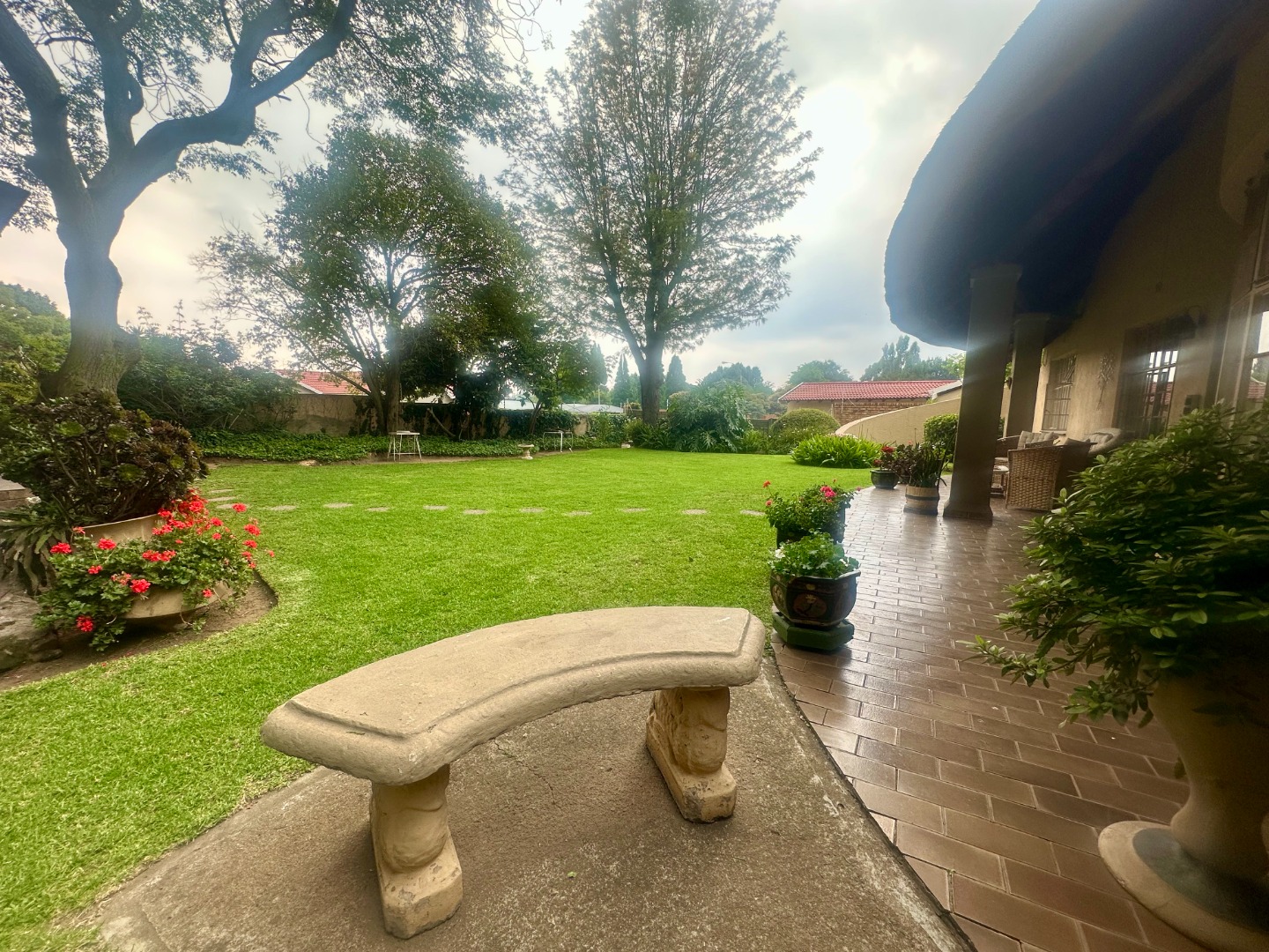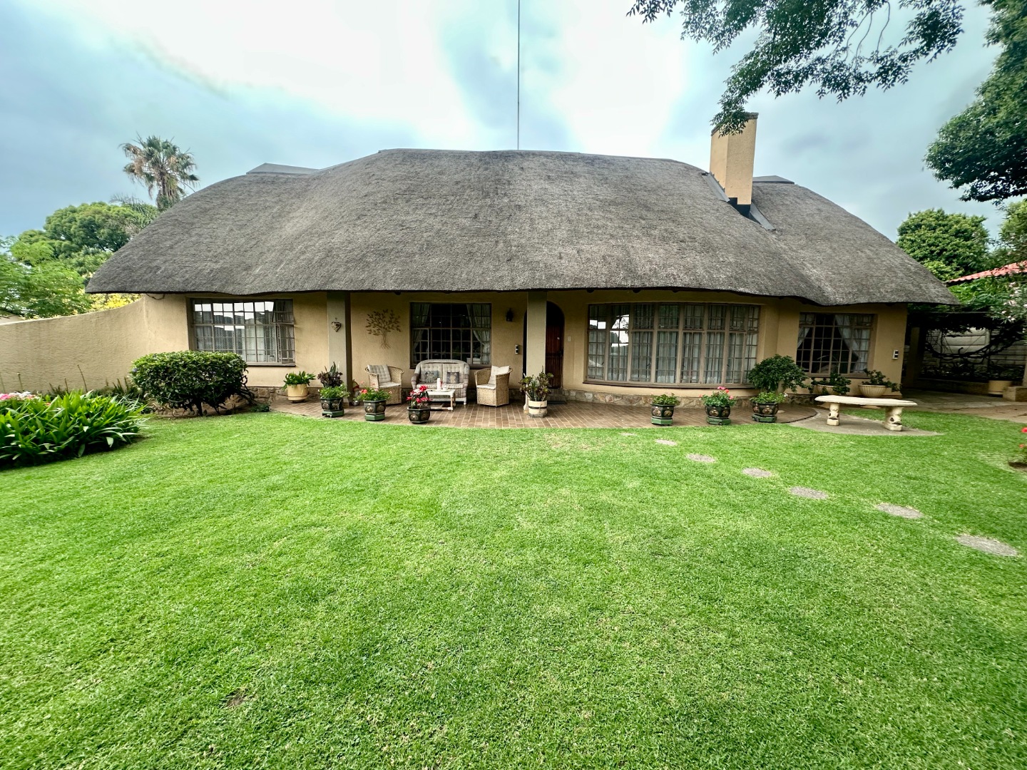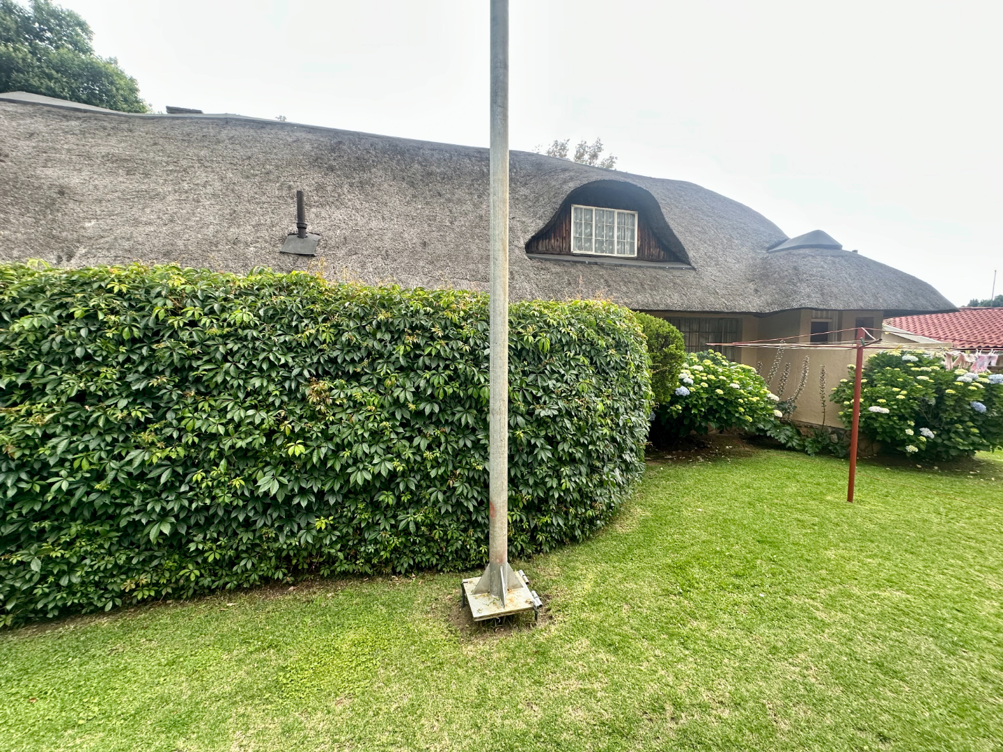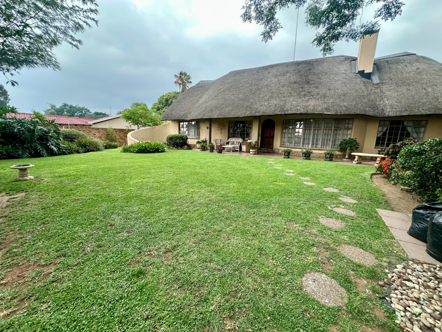 Discover this charming suburban residence in Glen Marais, immediately captivating with its distinctive thatched roof architecture. Set on a generous 1000 sqm erf, the property boasts exceptional kerb appeal, featuring a meticulously maintained, lush green garden and expansive lawn. Mature trees and vibrant garden beds enhance the tranquil outdoor ambiance, creating an inviting first impression.