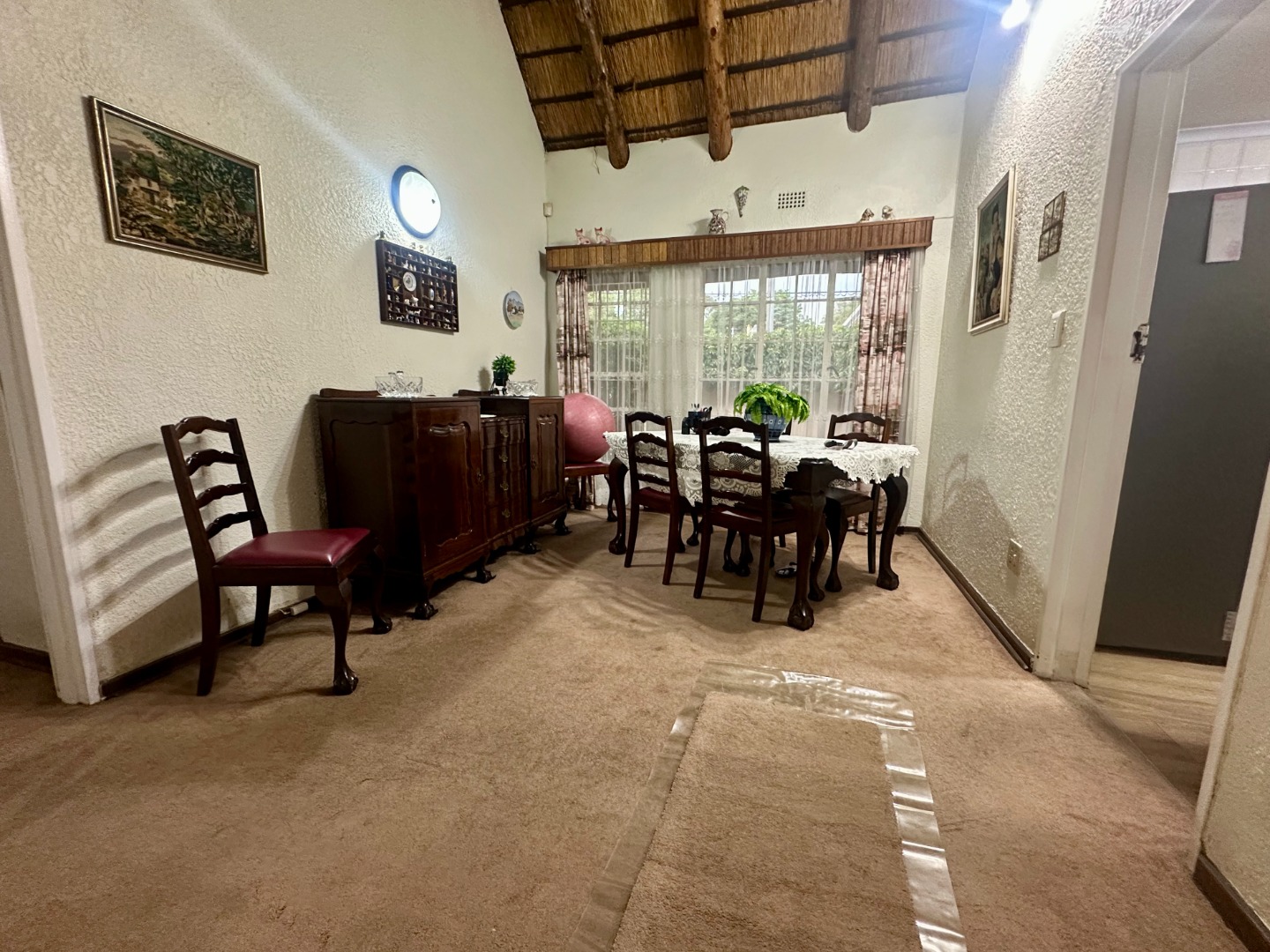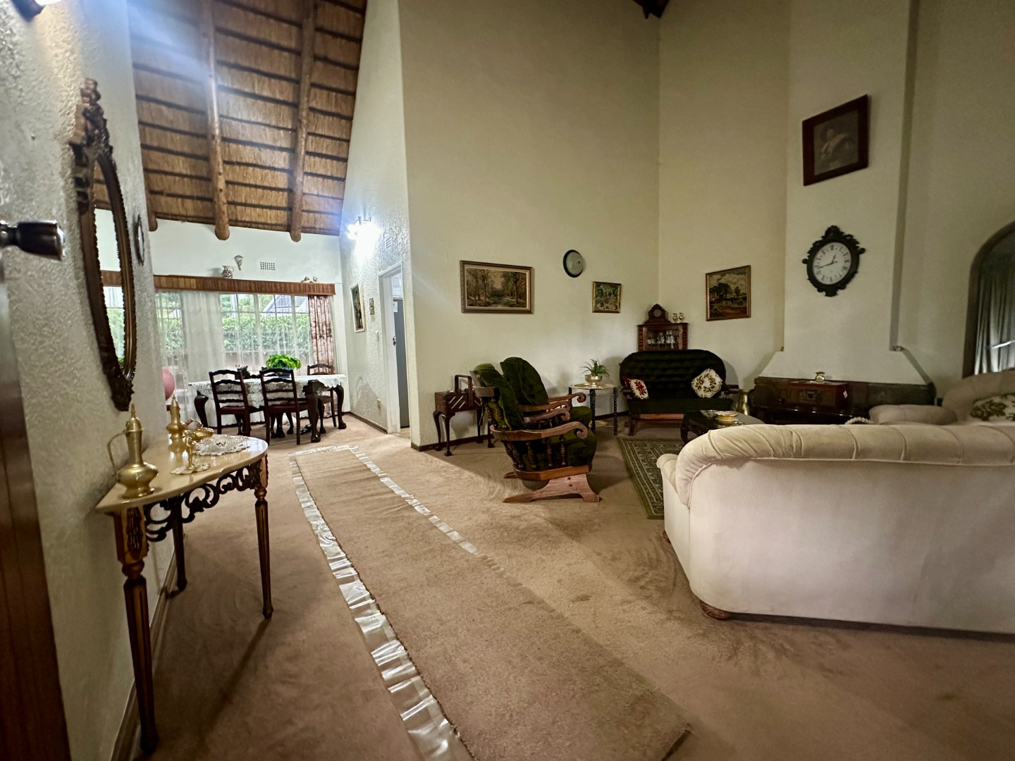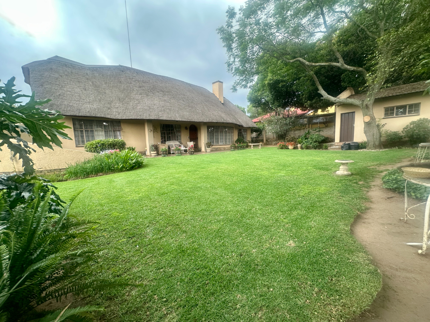 Discover this charming suburban residence in Glen Marais, immediately captivating with its distinctive thatched roof architecture. Set on a generous 1000 sqm erf, the property boasts exceptional kerb appeal, featuring a meticulously maintained, lush green garden and expansive lawn. Mature trees and vibrant garden beds enhance the tranquil outdoor ambiance, creating an inviting first impression.