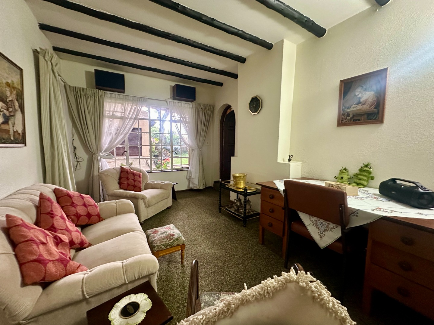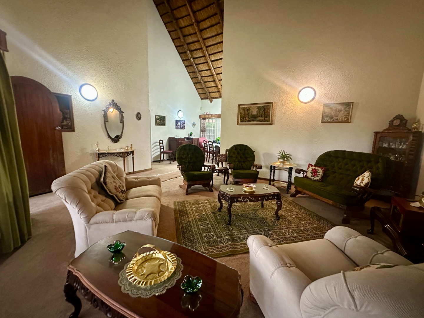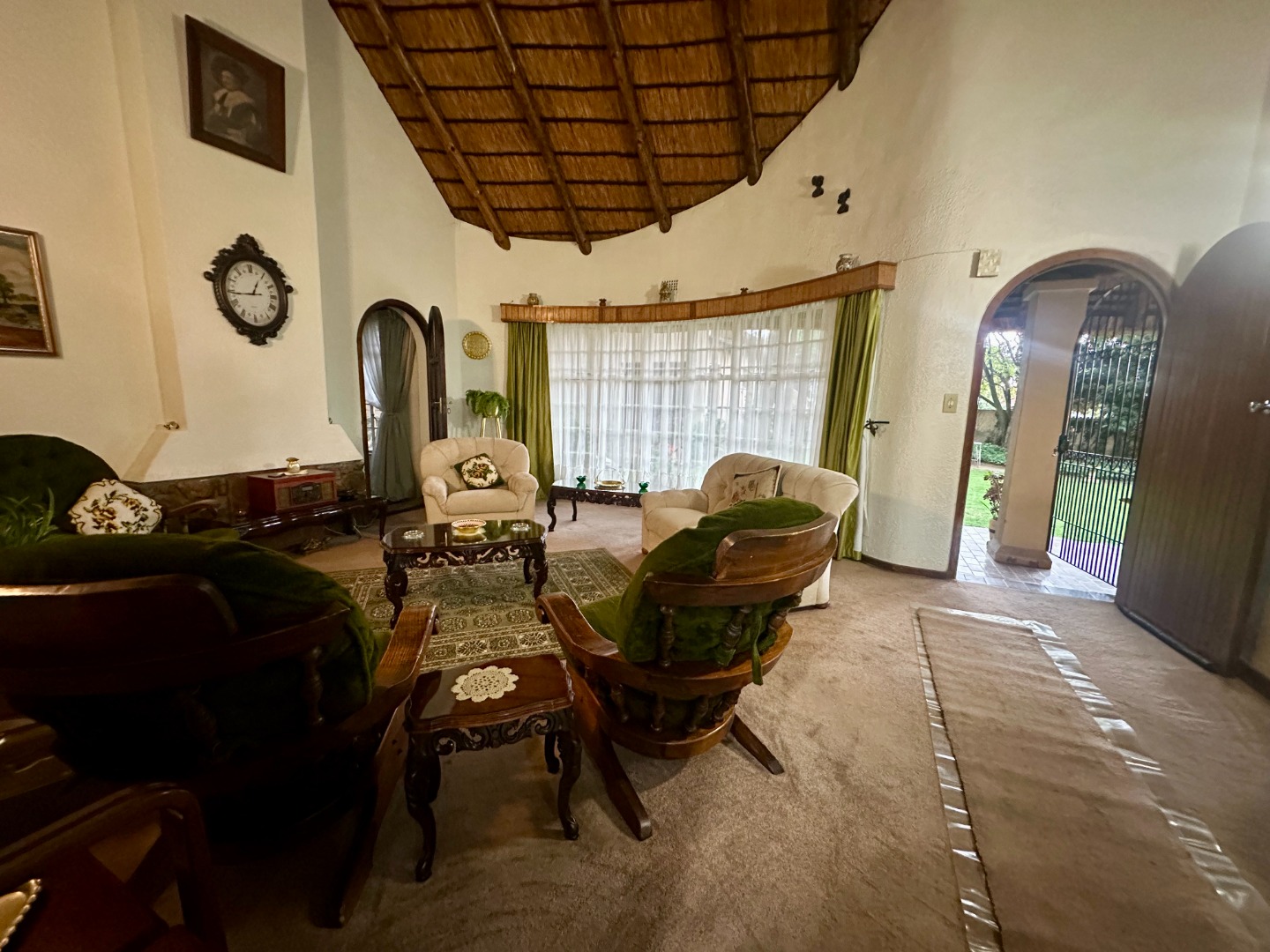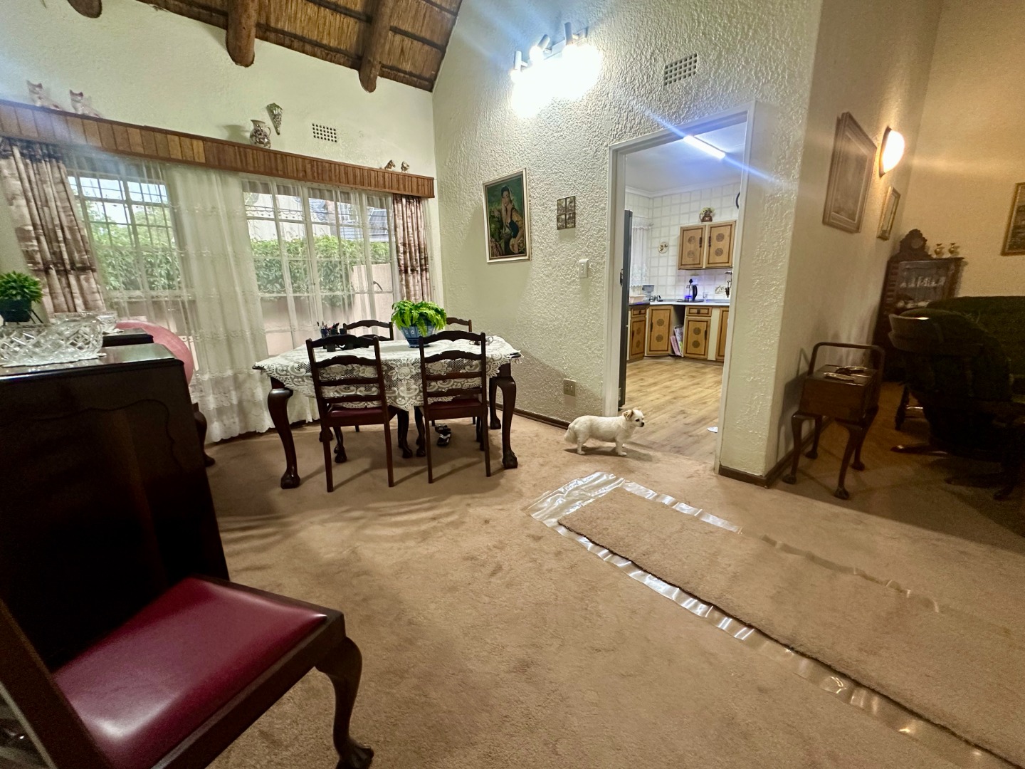 Discover this charming suburban residence in Glen Marais, immediately captivating with its distinctive thatched roof architecture. Set on a generous 1000 sqm erf, the property boasts exceptional kerb appeal, featuring a meticulously maintained, lush green garden and expansive lawn. Mature trees and vibrant garden beds enhance the tranquil outdoor ambiance, creating an inviting first impression.