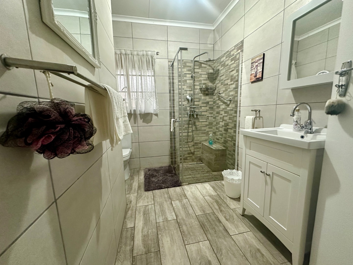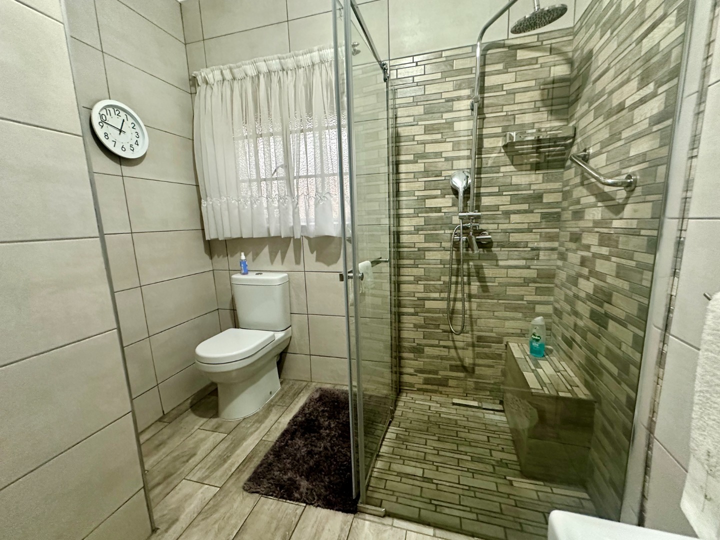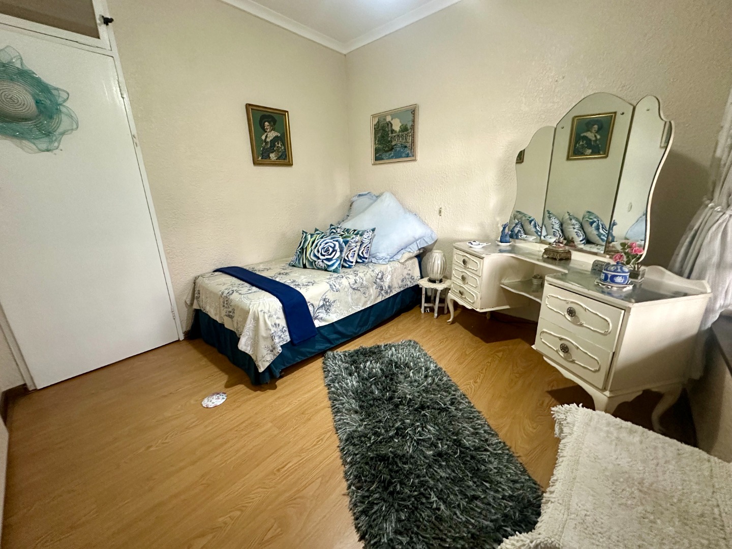 Security is well-addressed with an alarm system, electric fencing, outside security beams, an access gate, and a security gate, complemented by visible security bars on windows and a totally walled perimeter, ensuring peace of mind. Located in the suburban area of Glen Marais, this home offers convenient access to local amenities and a family-friendly environment within Kempton Park.