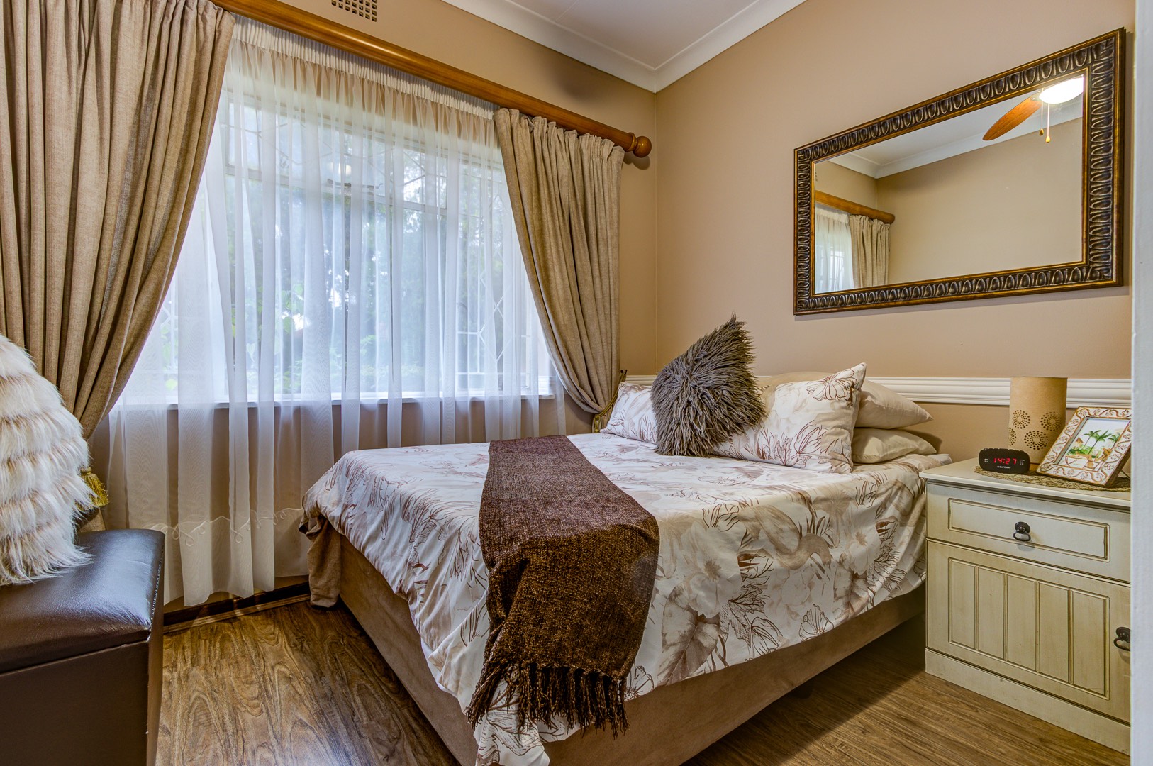 From the moment you enter, the home creates an impression of warmth and practicality. A tasteful combination of laminate flooring and tiles brings together comfort and durability, while the modern bathrooms and renovated kitchen add a fresh, contemporary feel. The kitchen has been thoughtfully updated to be both stylish and functional, complete with a cleverly integrated laundry area neatly built into cupboard space.