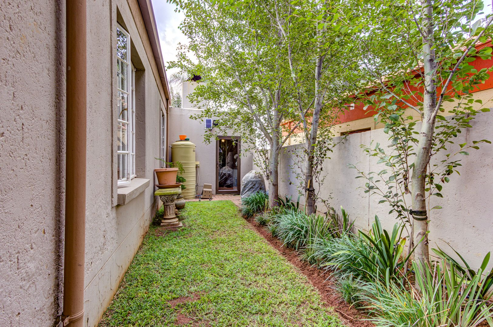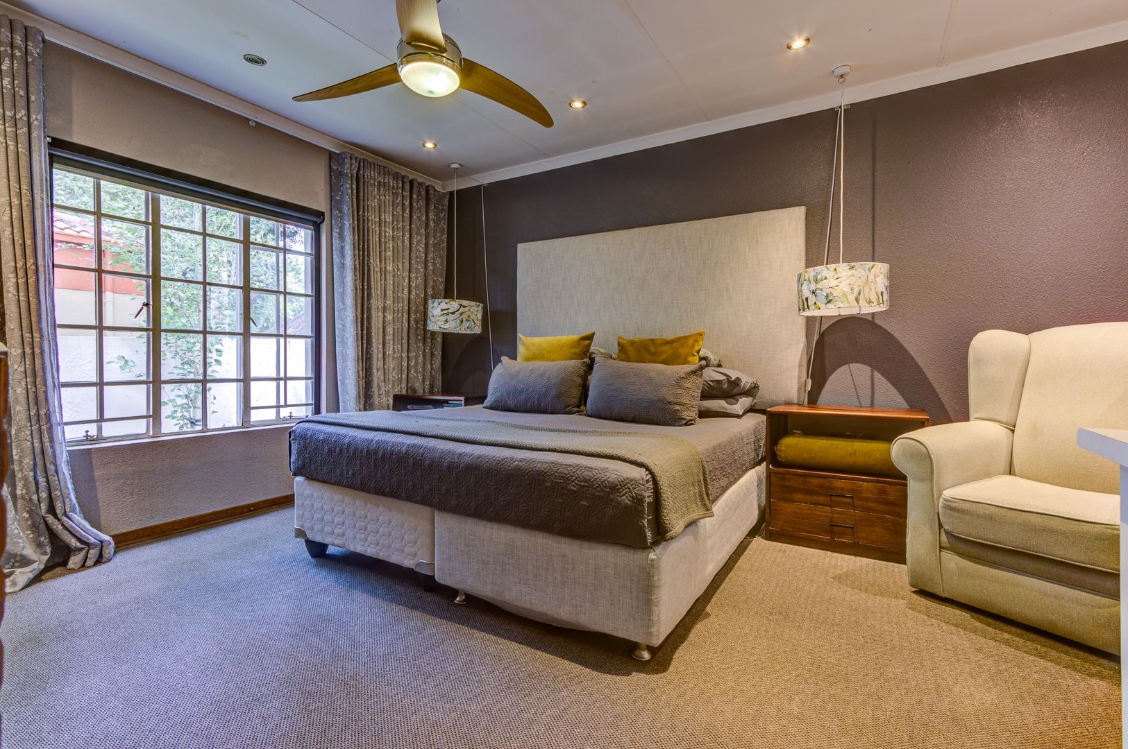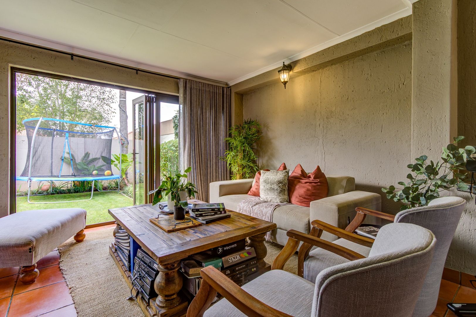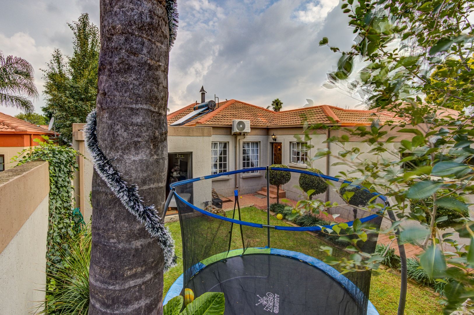 The main lounge features, tiles, an aircon, a ceiling fan and a fire place. The second lounge (entertainment room) has space for a study area and features sliding doors that opens onto the garden area.