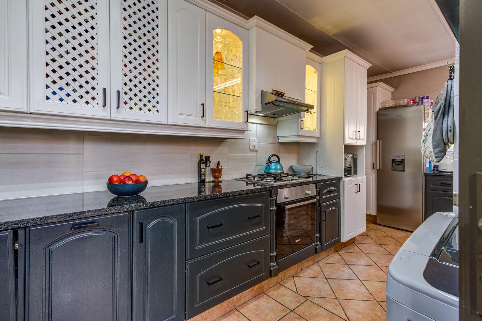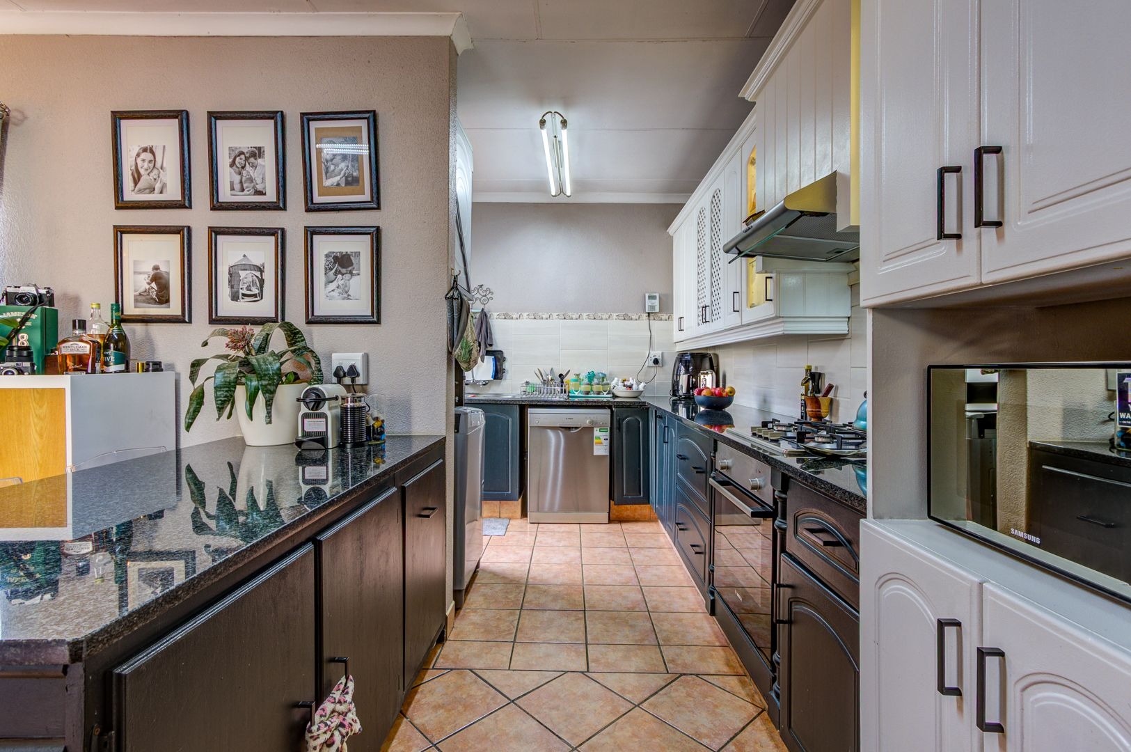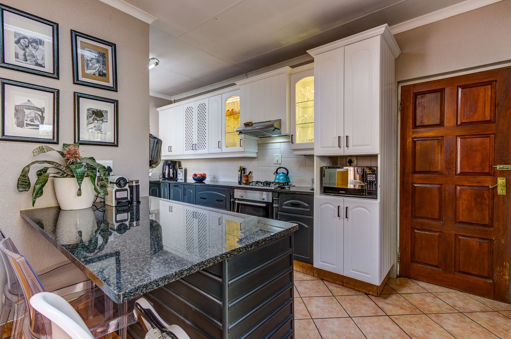 The open plan dining area welcomes the whole family as a place to come together and enjoy a loving meal. a Modern open plan kitchen, or as we say, the heart of the home, features a breakfast nook, granite tops, ample cupboard space, space for all the electrical appliances and many more.