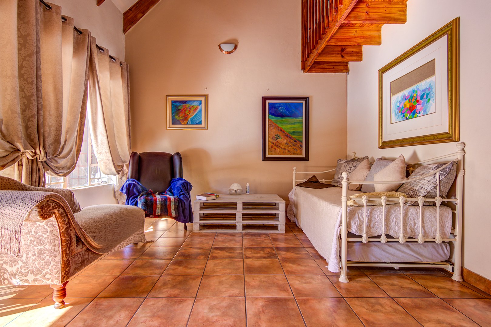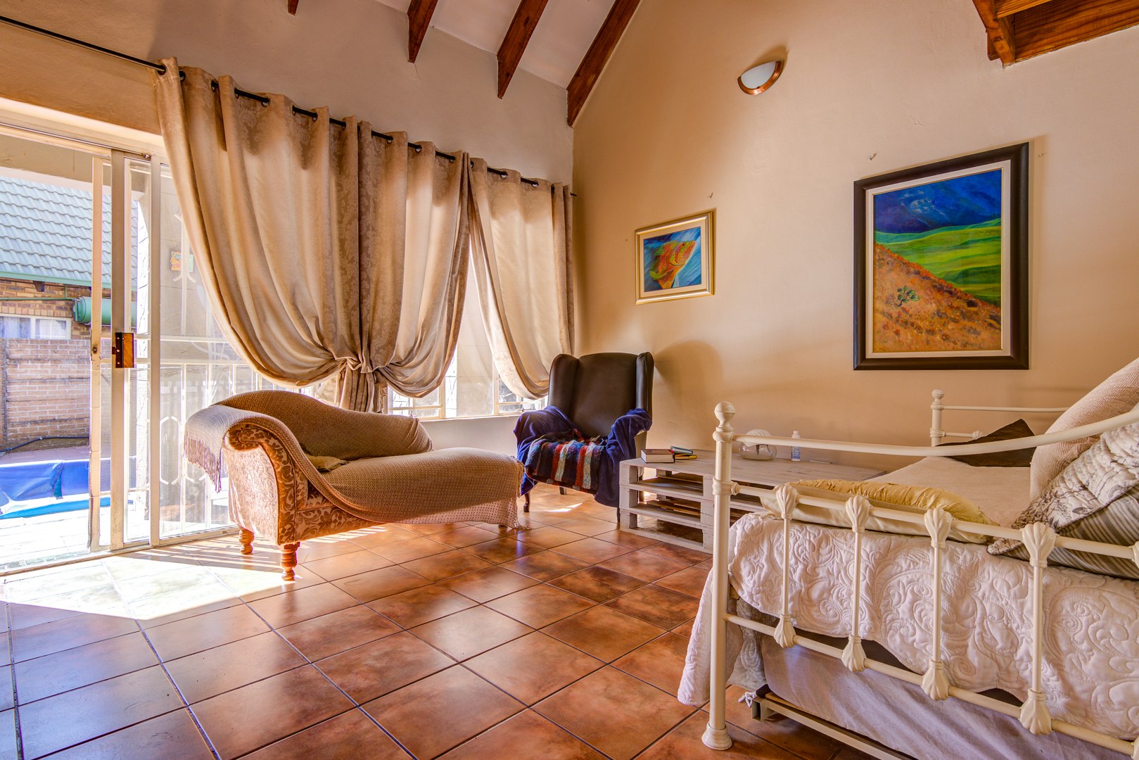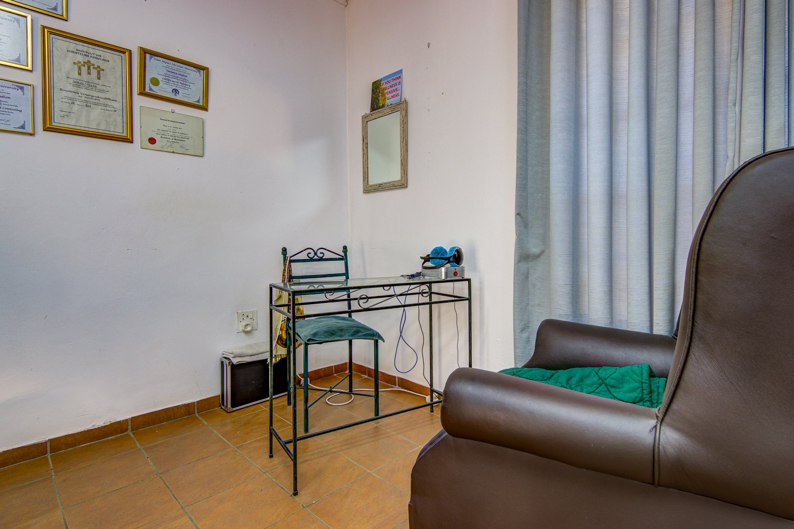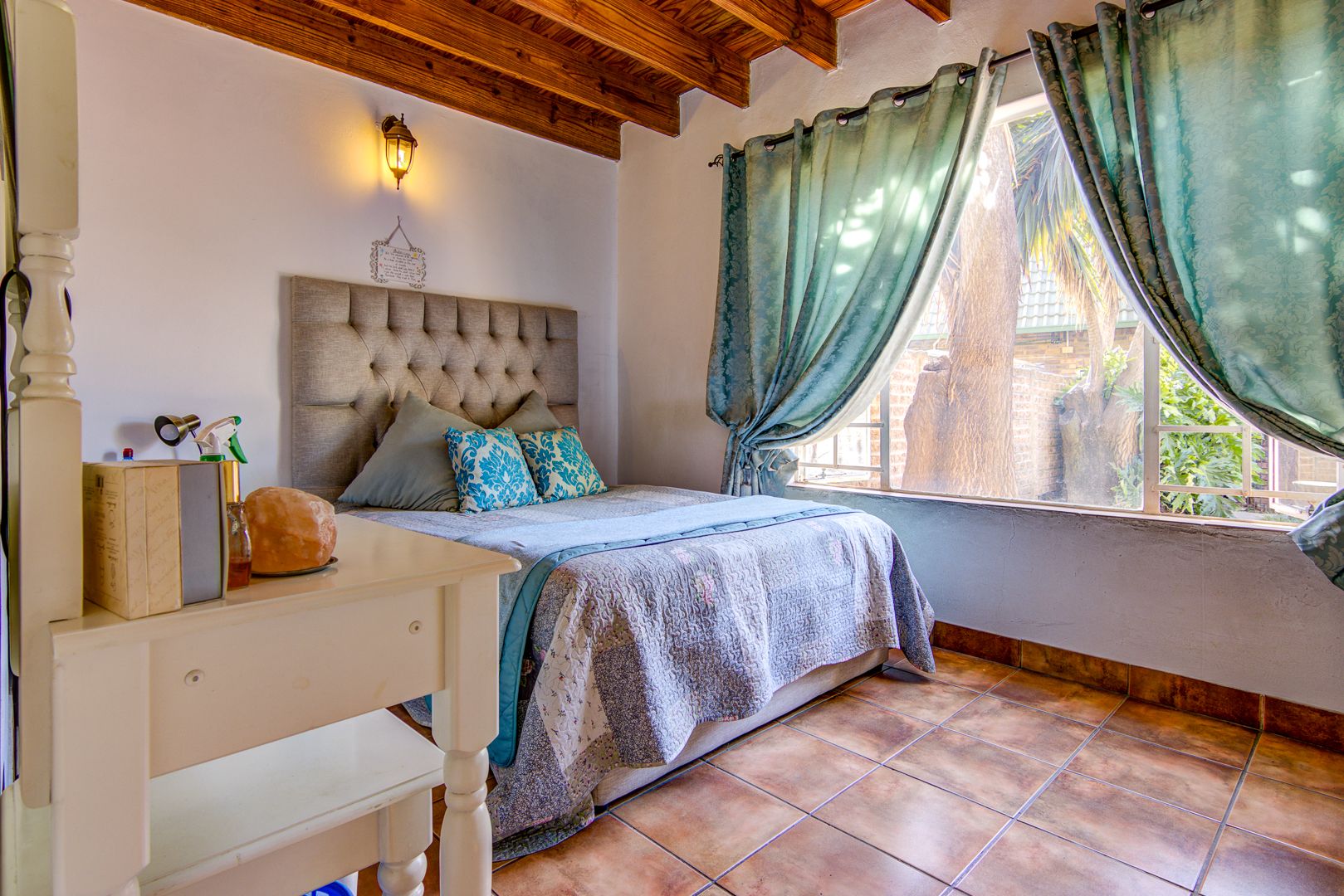 Downstairs you have a tiled open plan lounge and dining room linked to the kitchen. 2 Tiled bedrooms with a bathroom to serve these 2 bedrooms. Upstairs is a large open plan wooden floor loft with built-in cupboards. This space can also be utilised as a possible bedroom. An open space that could be used as a gym or playroom for the kids. A small carpeted study room, could also be used as a make-up room. 1 Carpeted bedroom with an en-suite bathroom. 3rd Bedroom with a shower is an absolute bonus.