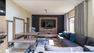 Discover a residence of contemporary elegance nestled within a desirable complex in Glen Marais, Kempton Park. This exquisite two-story home, spanning 193.00 sqm on a 360.00 sqm erf, presents a sophisticated lifestyle for the discerning homeowner. The exterior boasts a well-maintained facade with a double garage and a welcoming covered entrance, hinting at the refined interiors within. Step inside to an expansive open-plan living area, bathed in natural light from generous windows and accentuated by high ceilings. The design seamlessly integrates a modern kitchen, featuring sleek dark cabinetry, an L-shaped layout with a practical breakfast bar, and integrated appliances, perfect for culinary pursuits. The lounge area is a testament to modern design, showcasing a striking feature wall with an integrated TV unit and ample space for a luxurious sectional sofa. Flexible dining solutions are provided by an innovative wall-mounted table, ensuring optimal use of space. This distinguished home offers three generously proportioned bedrooms and two impeccably appointed bathrooms, both of which are en-suite, providing ultimate privacy and comfort. Each space is designed with a keen eye for detail, reflecting a clean and contemporary aesthetic. Outdoor living is catered for with a private patio and a neat garden, offering a tranquil retreat. The double garage provides secure parking and additional storage. For peace of mind, the property is equipped with burglar bars and security gates, ensuring a secure environment within this sought-after complex. Glen Marais, a vibrant suburb in Kempton Park, South Africa, offers convenient access to amenities and a well-connected lifestyle, making it an ideal location for modern families. Key Features: * Modern Two-Story Residence * 3 Bedrooms, 2 En-suite Bathrooms * Open-Plan Living & Contemporary Kitchen * Double Garage * Private Patio & Garden * Burglar Bars & Security Gate * Located in a Secure Complex * High Ceilings & Abundant Natural Light