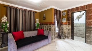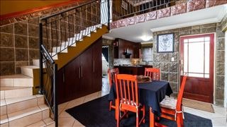 Discover this inviting 3-bedroom, 3-bathroom residential property for sale in the sought-after Glen Marais, Kempton Park. The interior boasts a distinctive design with strong, textured wall treatments and bold accents, creating a unique ambiance. The functional dining area seamlessly connects to multiple living spaces, all featuring durable tiled flooring. The compact yet efficient kitchen is equipped with modern dark wood cabinetry, granite-look countertops, a double sink, and integrated appliances including an oven, hob, extractor fan, and a convenient washing machine. Built-in storage under the staircase maximises space, enhancing the home's practical appeal. Air conditioning ensures comfort throughout. This multi-level home offers three comfortable bedrooms, two of which feature private en-suite bathrooms, providing ample privacy and convenience. The upper landing, accessible via a tiled staircase with a decorative metal railing, offers additional functional space, perfect for a small seating area or study nook. Step outside to a private walled garden, offering a tranquil green space and a small lawn, ideal for relaxation or pets. A covered patio extends the living area outdoors, perfect for entertaining. The property features a neat exterior, a well-maintained roof, and a two-story design that adds to its kerb appeal. Parking is well-catered for with a single garage and two additional parking spaces. Enhanced security features include security gates and burglar bars, providing peace of mind within this residential complex. Located in Glen Marais, Kempton Park, this property offers convenient access to local amenities and transport routes in South Africa. Key Features: * 3 Bedrooms, 3 Bathrooms (2 En-suite) * 1 Garage, 2 Parking Spaces * Private Walled Garden with Covered Patio * Modern Kitchen with Integrated Appliances * Air Conditioning * Tiled Flooring Throughout * Security Gates & Burglar Bars * Pets Allowed * Located in a Residential Complex