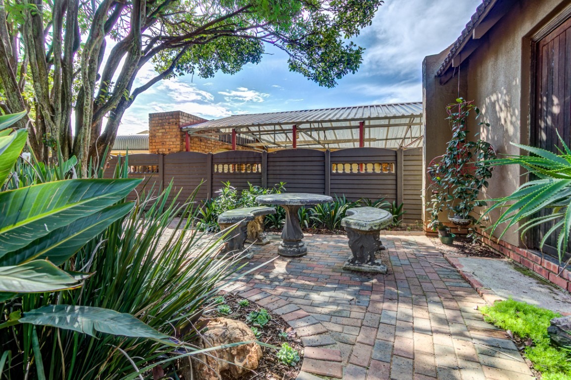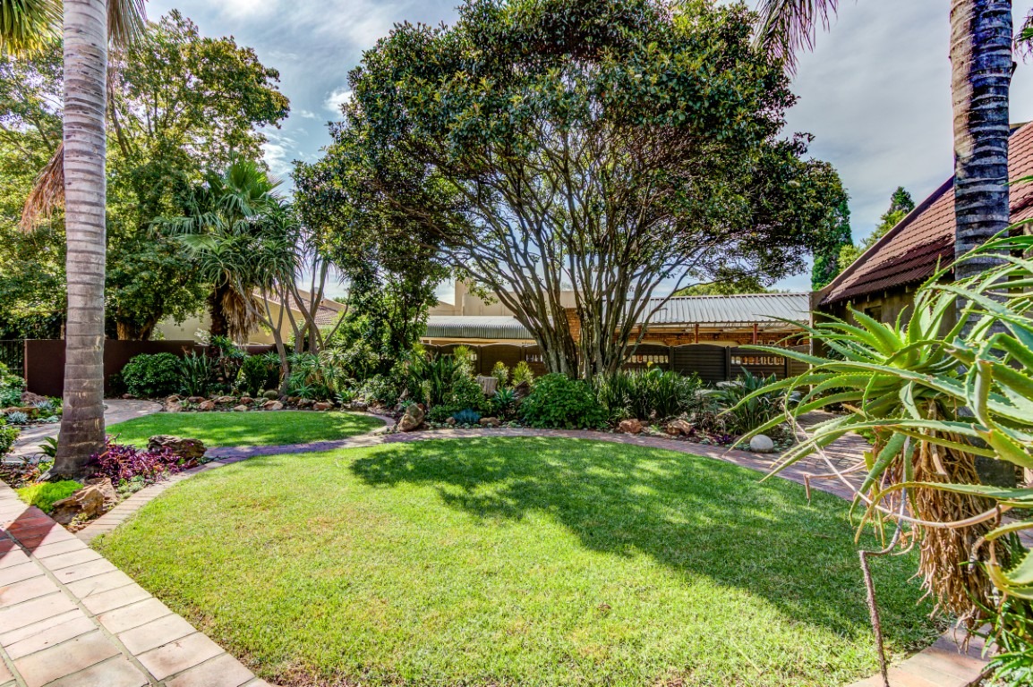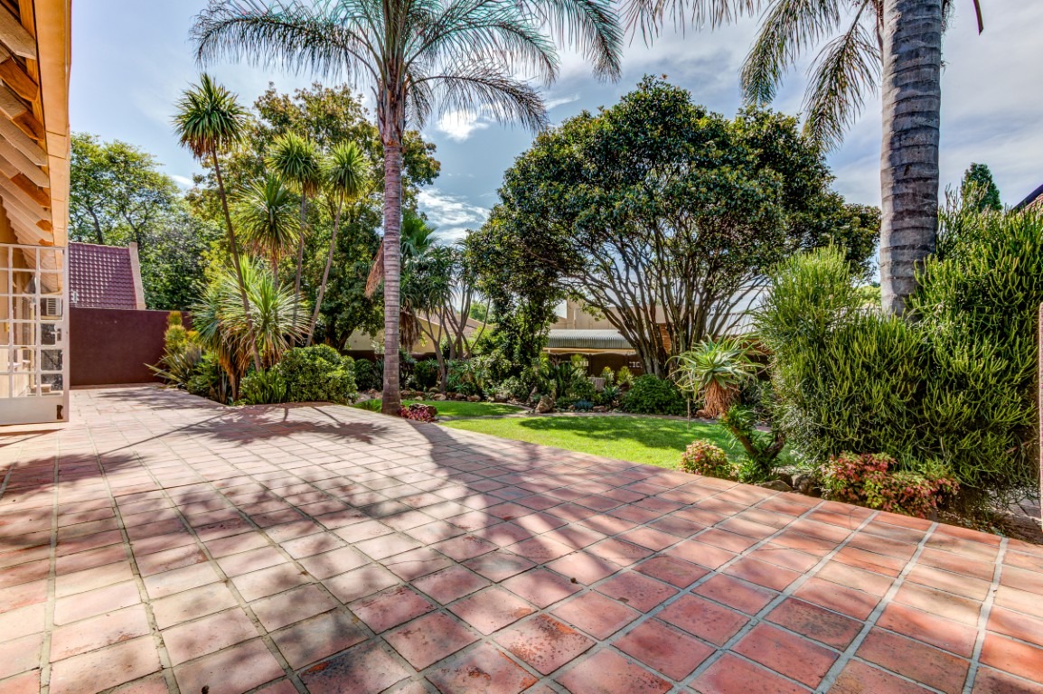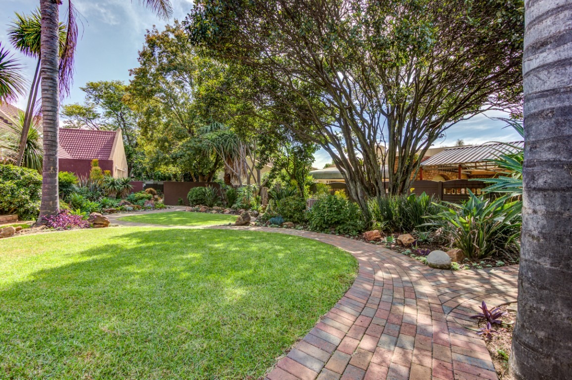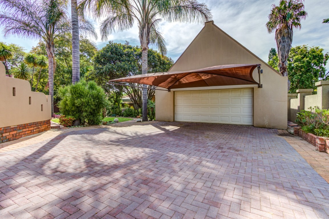 The home welcomes you with striking kerb appeal, featuring a large paved driveway, a double garage, and additional parking for up to four vehicles. Mature trees, manicured gardens, and charming brick pathways create a private and tranquil environment. Multiple patios with a built-in braai provide ideal outdoor entertainment spaces.