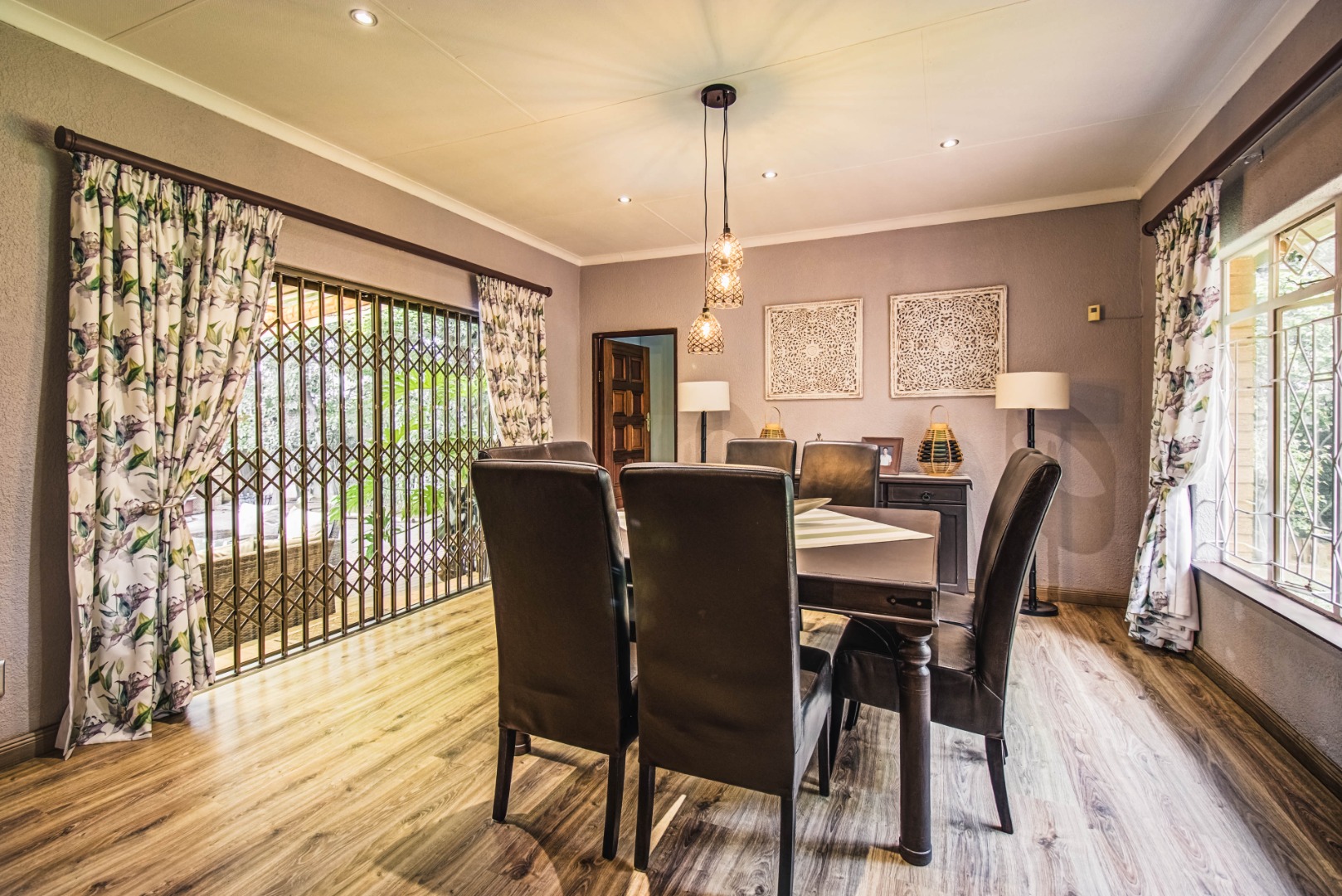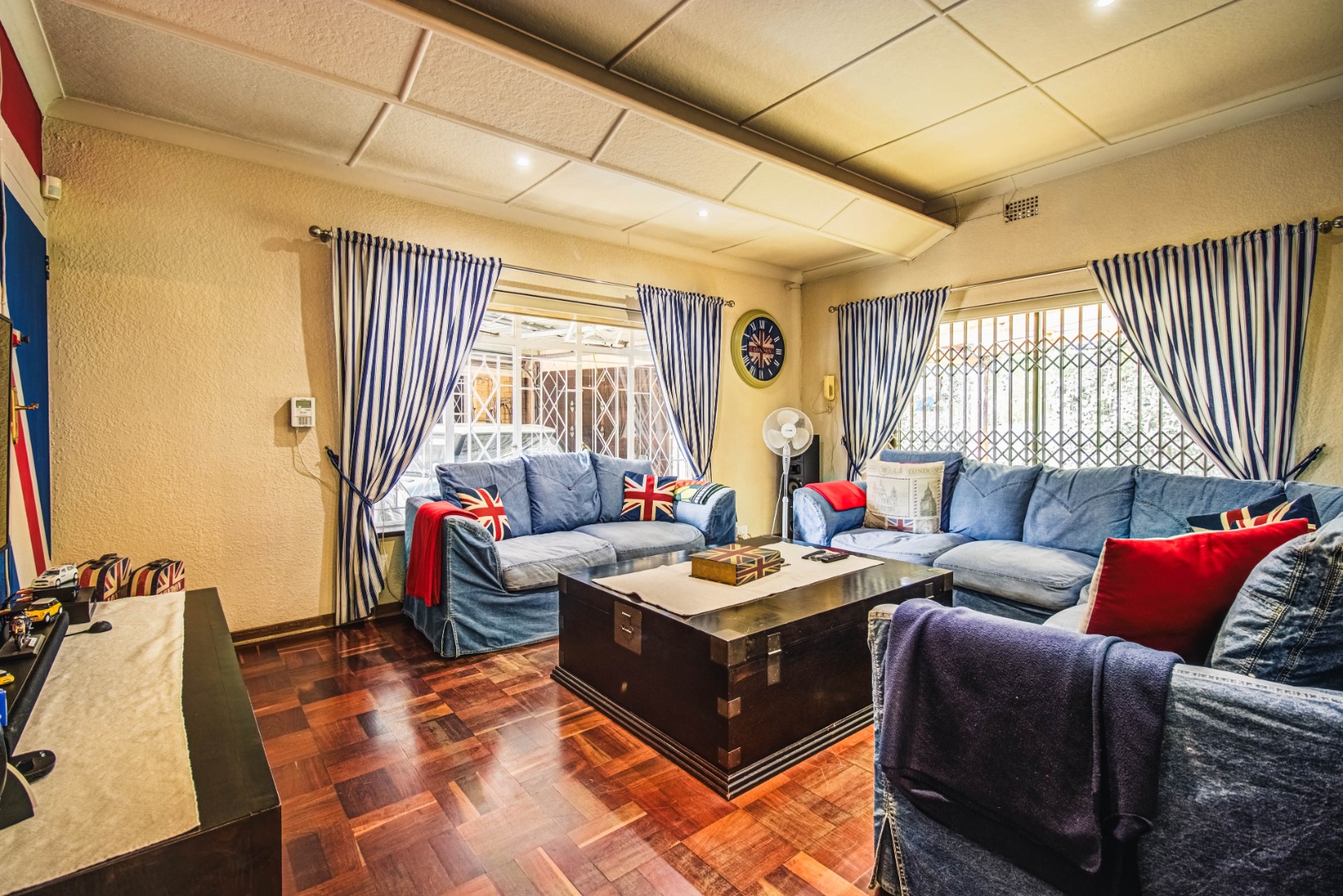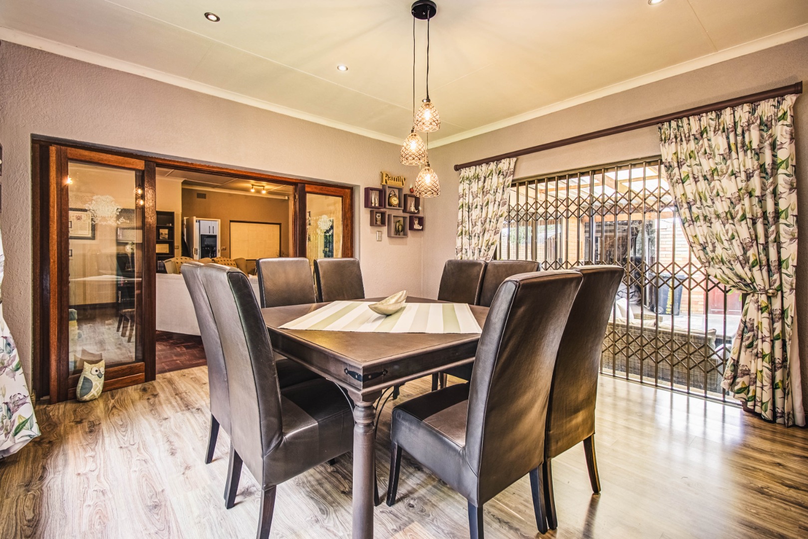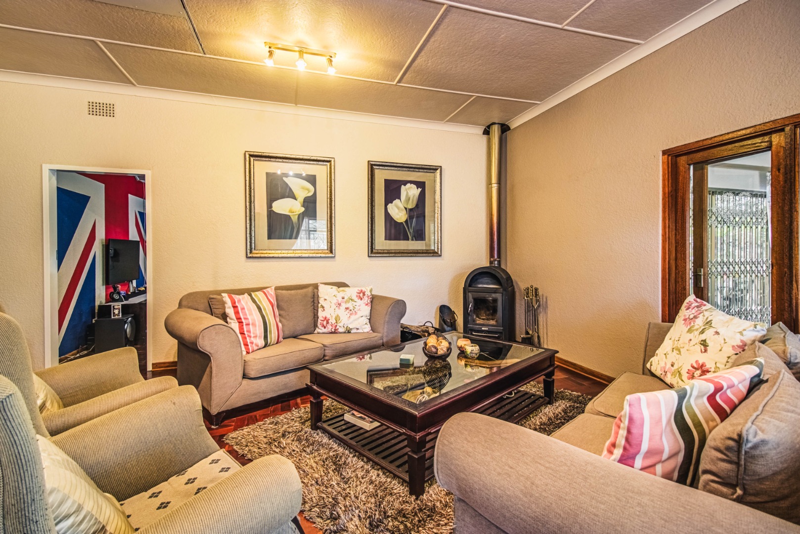 Discover this inviting 4-bedroom family home nestled within a secure gated community in Kempton Park Ext 4. Boasting a generous 1343 sqm erf and a spacious 340 sqm floor size, this residence offers ample room for comfortable living. The interior features a welcoming lounge, a dedicated dining room, and an additional family TV room, providing versatile spaces for relaxation and entertainment. A prominent wood-burning stove adds a cozy ambiance, complemented by wooden flooring.