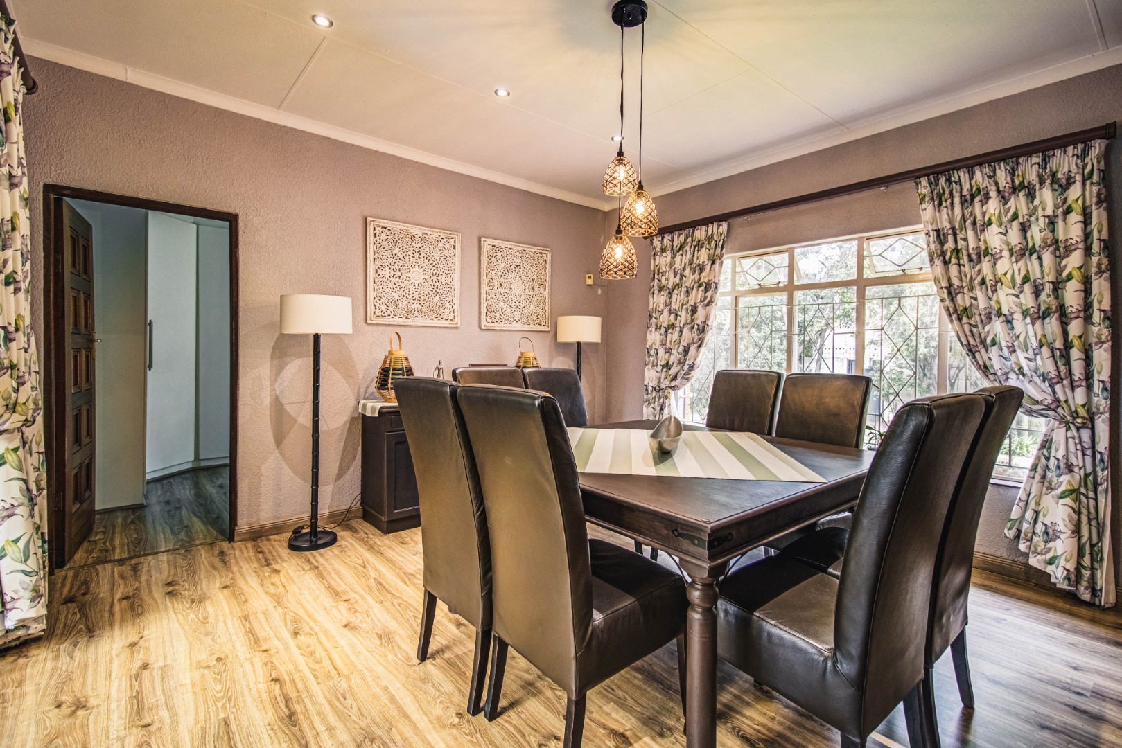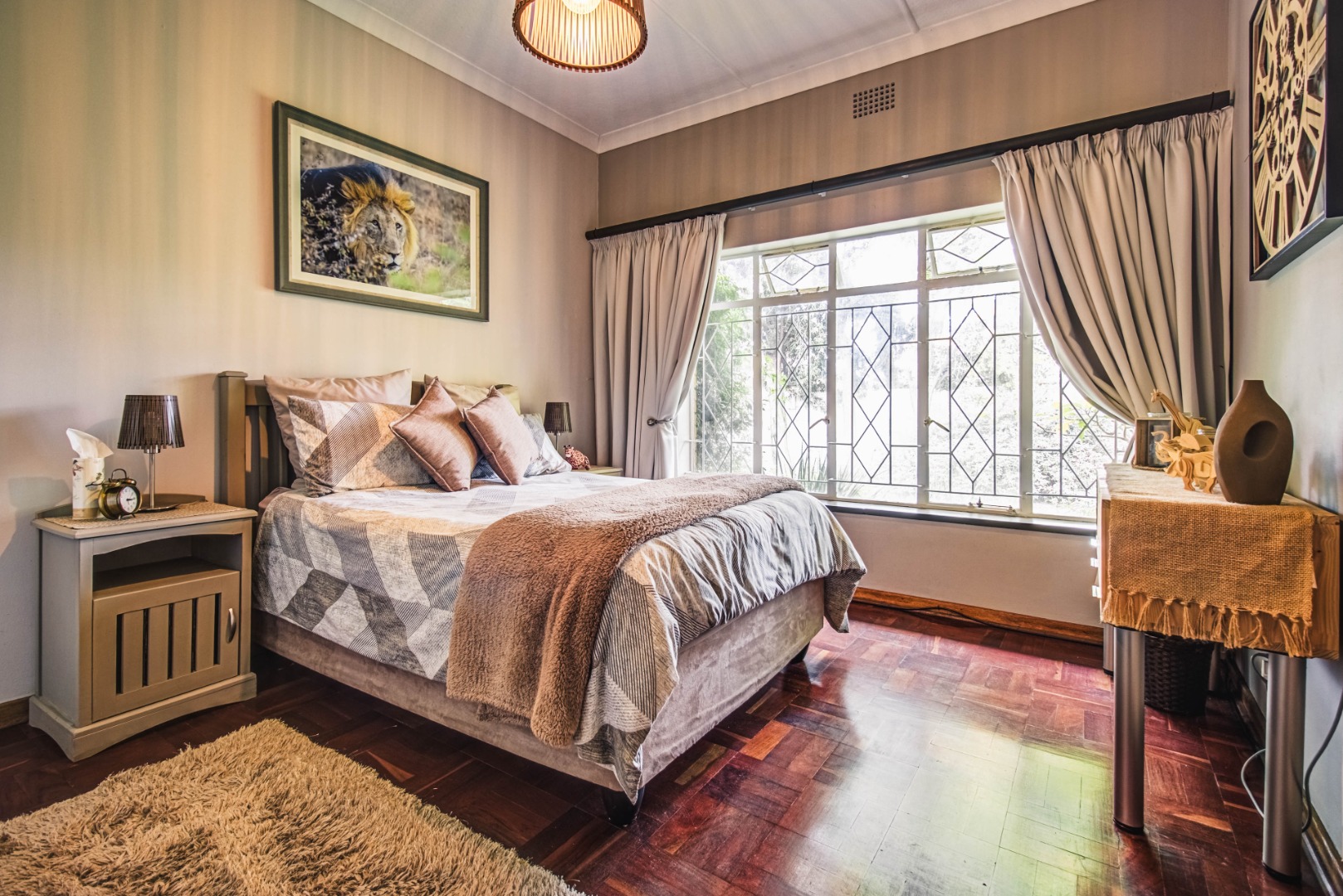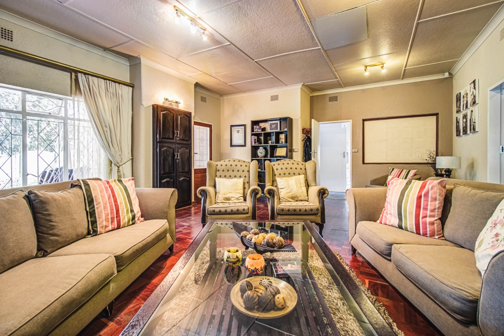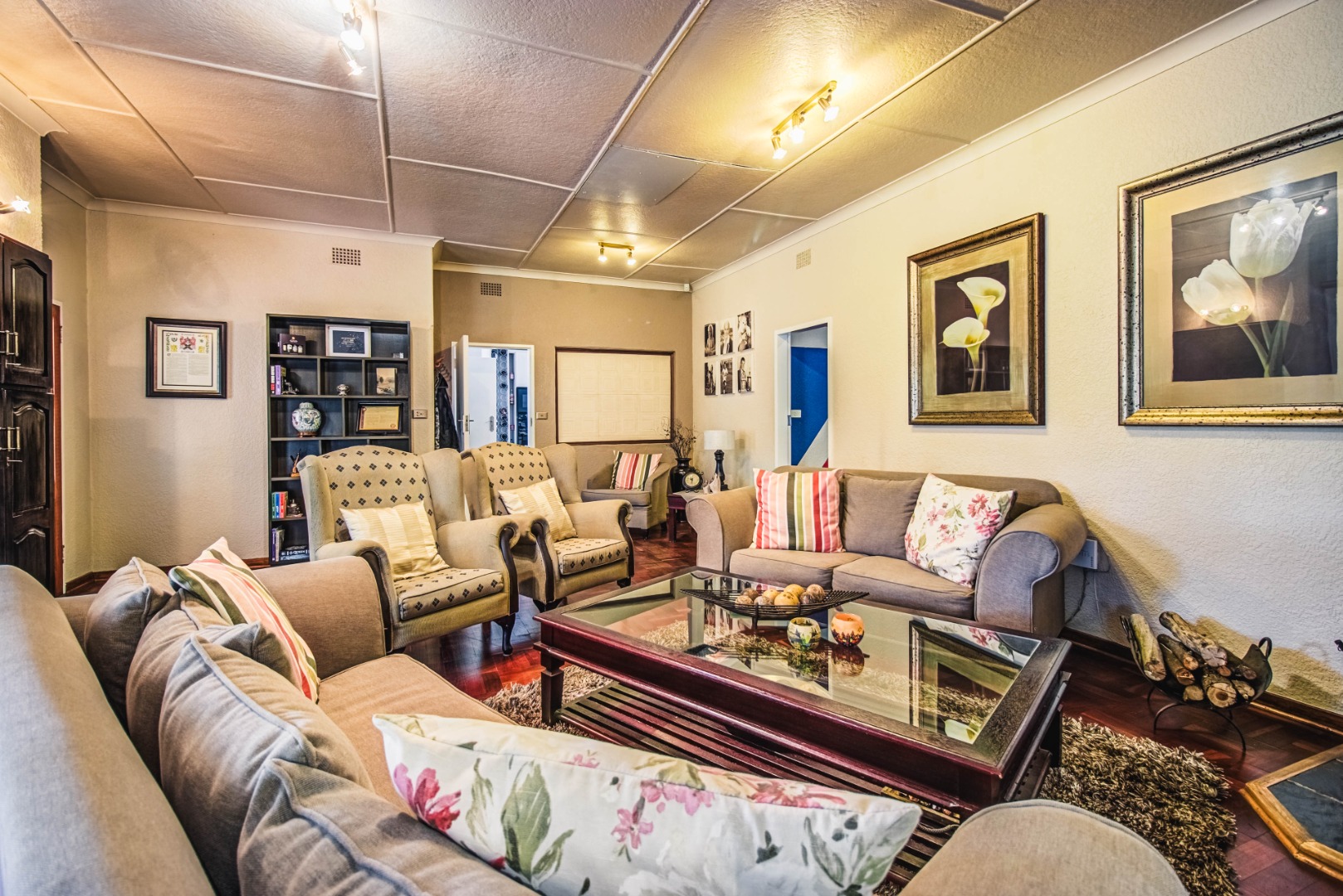 Discover this inviting 4-bedroom family home nestled within a secure gated community in Kempton Park Ext 4. Boasting a generous 1343 sqm erf and a spacious 340 sqm floor size, this residence offers ample room for comfortable living. The interior features a welcoming lounge, a dedicated dining room, and an additional family TV room, providing versatile spaces for relaxation and entertainment. A prominent wood-burning stove adds a cozy ambiance, complemented by wooden flooring.