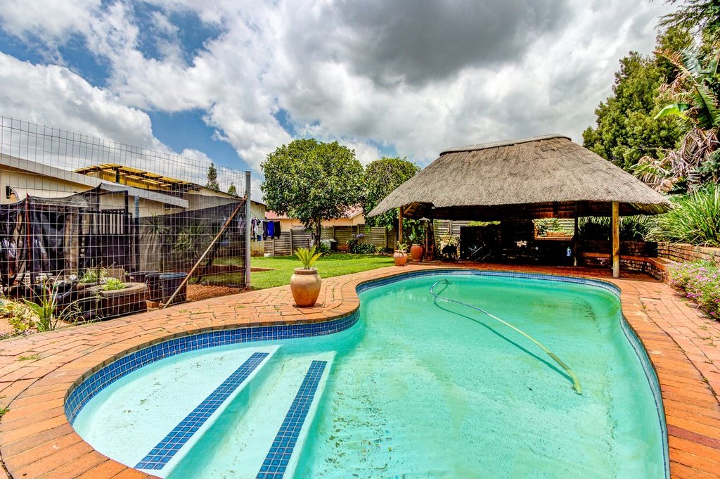 The exterior is designed for leisure and practicality. A refreshing pool and a lapa create an ideal setting for outdoor entertaining and relaxation. The well-maintained garden complements the outdoor spaces, while a paved driveway provides four dedicated parking spaces, including a covered carport. Security is enhanced by a high perimeter wall, access gates, and burglar bars. For modern connectivity, the home is equipped with fibre internet. Additional features include a 2bedroom flatlet, domestic rooms and outside toilets, adding to the property's functionality. The property is situated on a 1115 sqm erf.