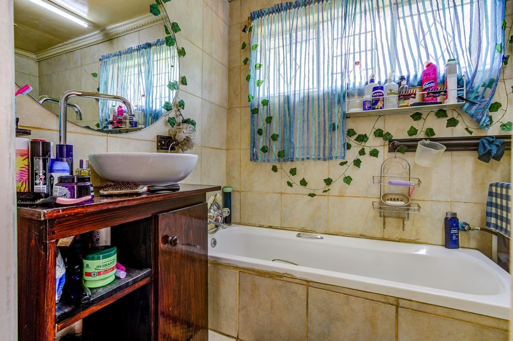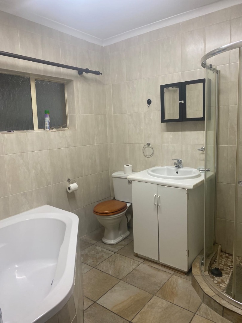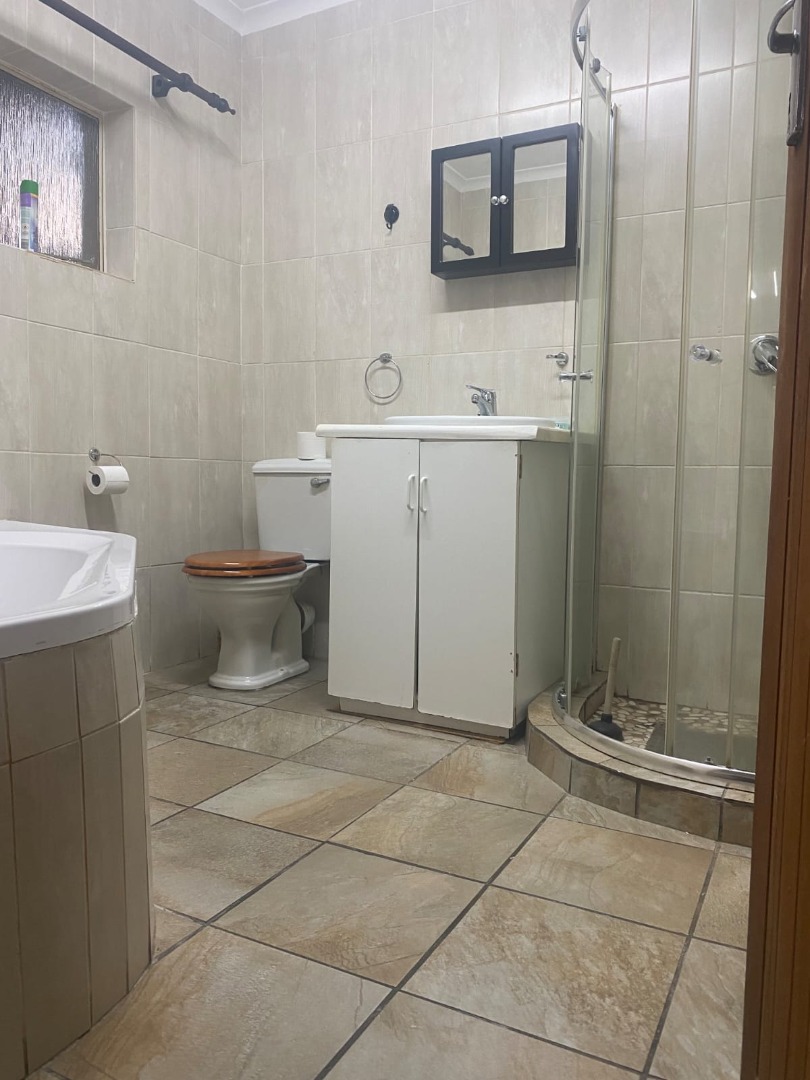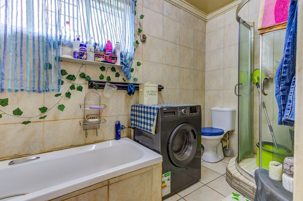 Accommodation comprises four well-proportioned bedrooms, ensuring ample space for family members or guests. The property includes three bathrooms, with one conveniently configured as an en-suite, offering privacy and comfort. Burglar bars are installed for added security.
