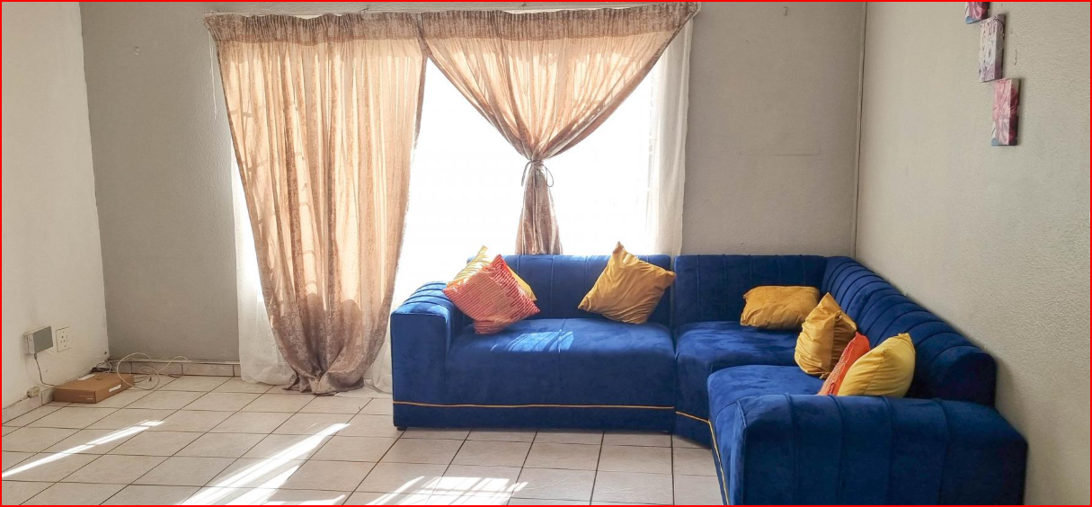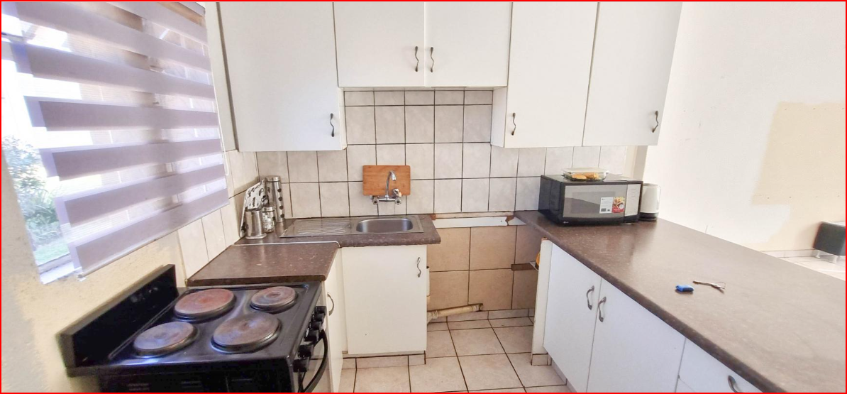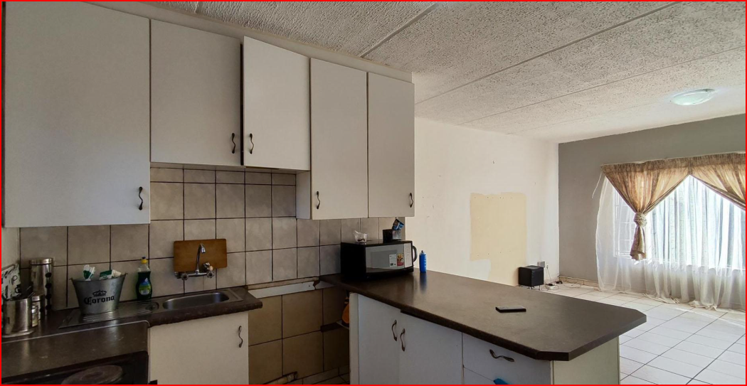 This inviting 2-bedroom apartment is situated within a well-maintained complex in Norkem Park, Kempton Park. The property offers a secure living environment, featuring a gated entrance with a guardhouse and electric fencing, ensuring controlled access and peace of mind. The complex boasts well-maintained common garden areas and paved walkways, contributing to a pleasant communal atmosphere. Inside, this 62 sqm apartment presents a functional open-plan layout, seamlessly connecting the living area and kitchen. The lounge benefits from ample natural light, creating a bright, welcoming space. The kitchen is equipped with white cabinets, dark countertops, and tiled walls, providing practical storage and preparation. Tiled flooring extends throughout, offering easy maintenance and a cohesive aesthetic. The apartment comprises two comfortable bedrooms, each with tiled flooring and natural light from large windows. These spaces offer a neutral canvas for personalization. The single bathroom is functional, including a bathtub, pedestal sink, and toilet, with tiled walls for durability and easy cleaning. One dedicated parking bay is allocated to the unit, adding convenience. This property is ideal for those seeking an accessible and secure home within a community setting. Norkem Park, located in Kempton Park, is a well-established suburb known for its family-friendly environment and convenient access to local amenities, schools, and major transport routes, making it a practical choice. Key Features: * 2 Bedrooms, 1 Bathroom * 62 sqm Floor Size * Open-plan living area * Functional kitchen * Tiled flooring throughout * Gated entrance with guardhouse * Electric fencing * Well-maintained common gardens * 1 Parking bay