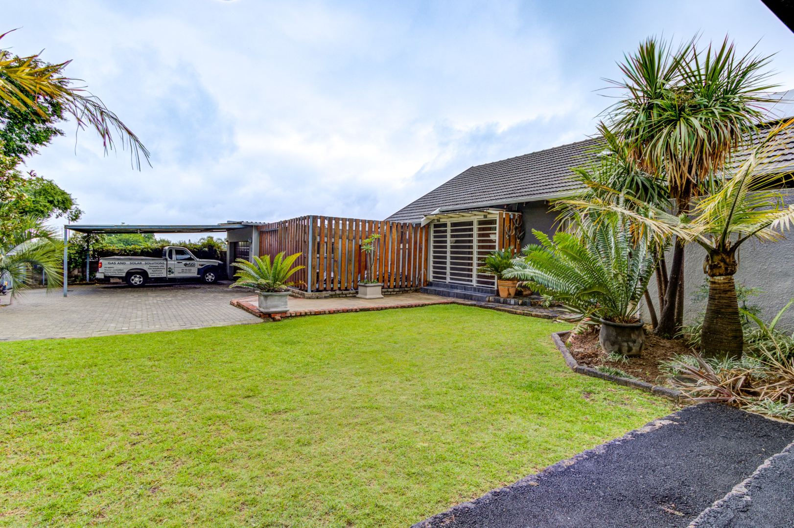 Storeroom, braai area with patio, landscaped garden with cycads, and new paving