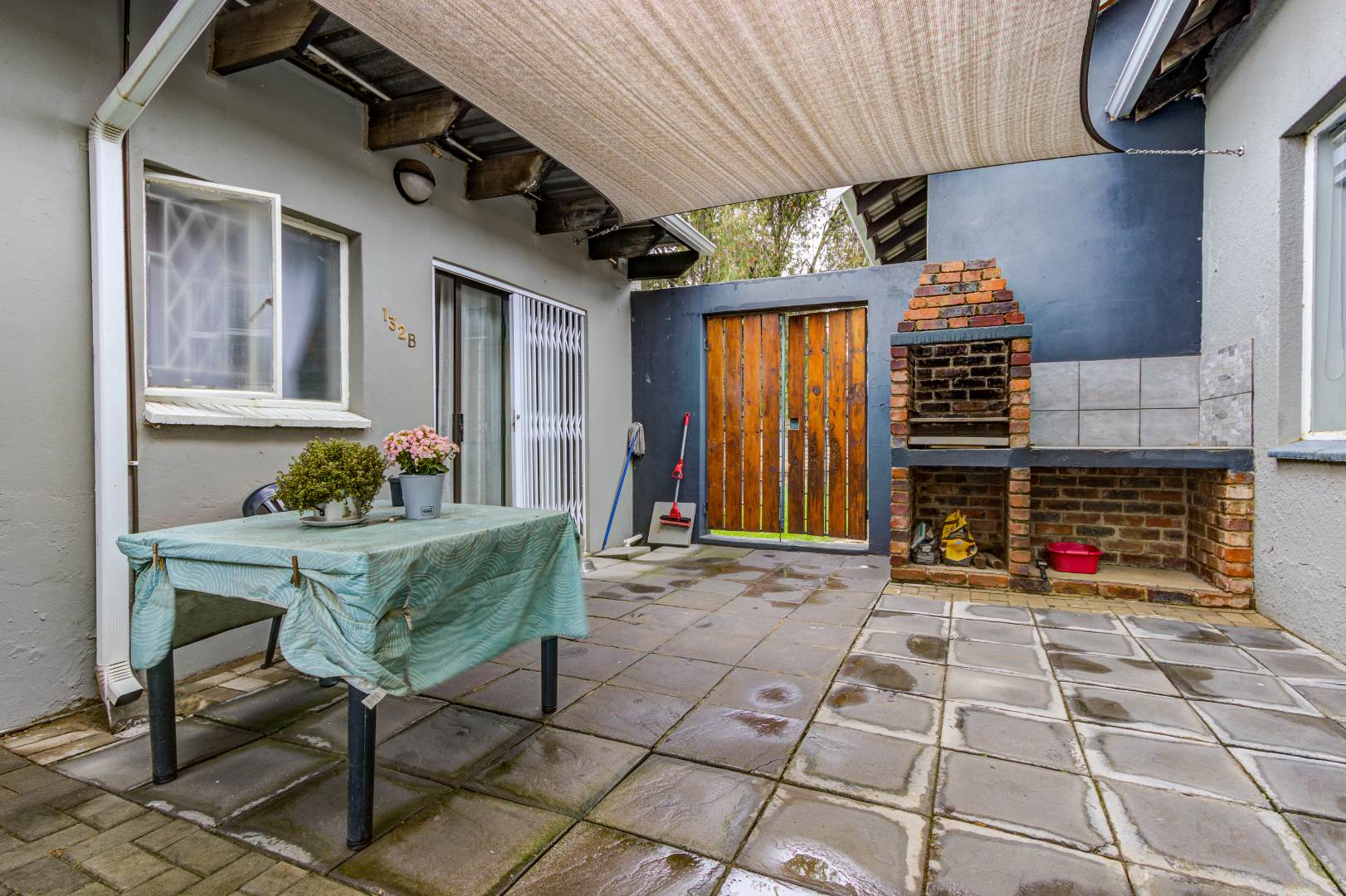Storeroom, braai area with patio, landscaped garden with cycads, and new paving