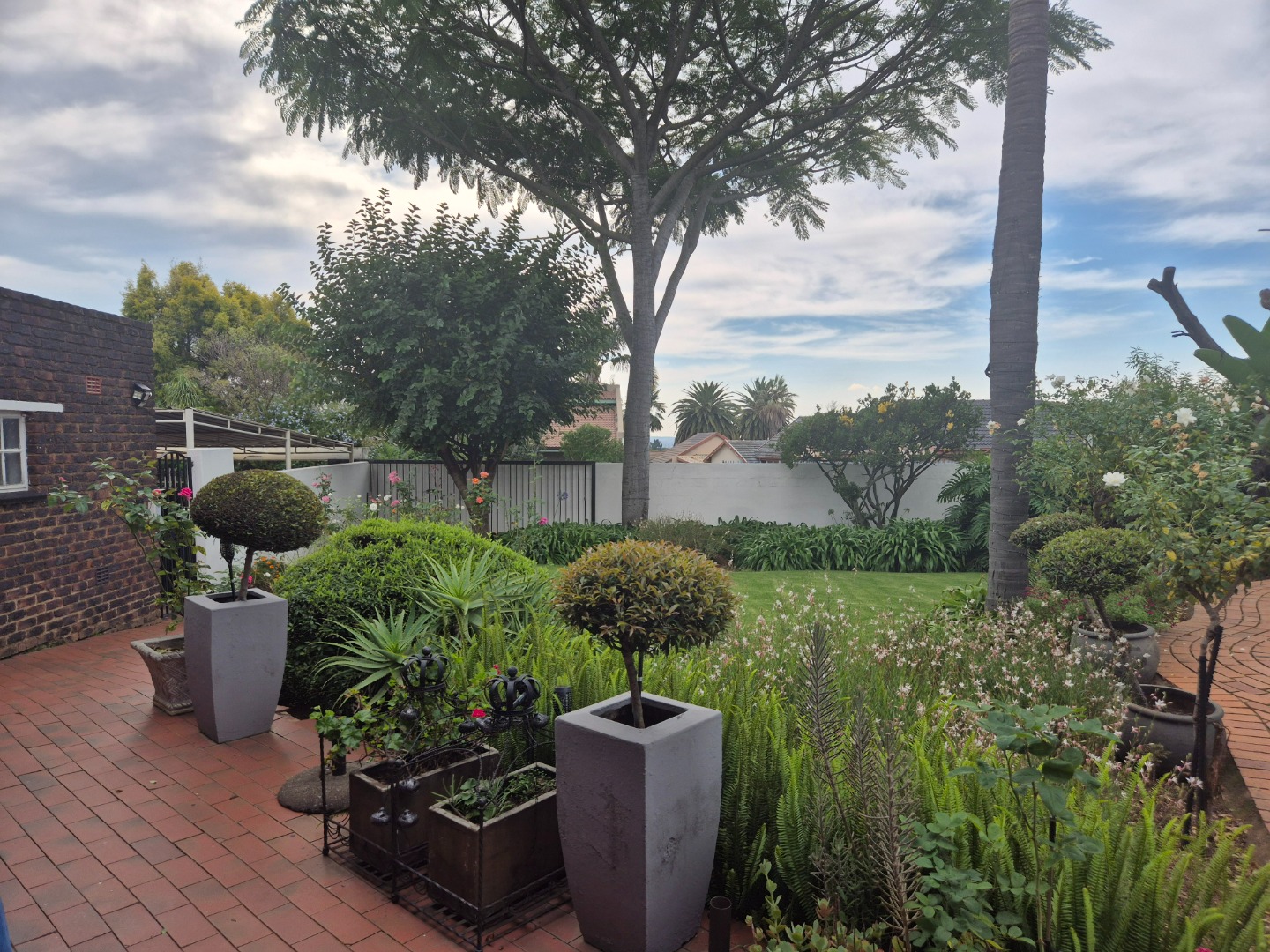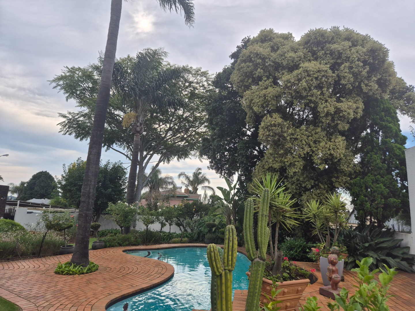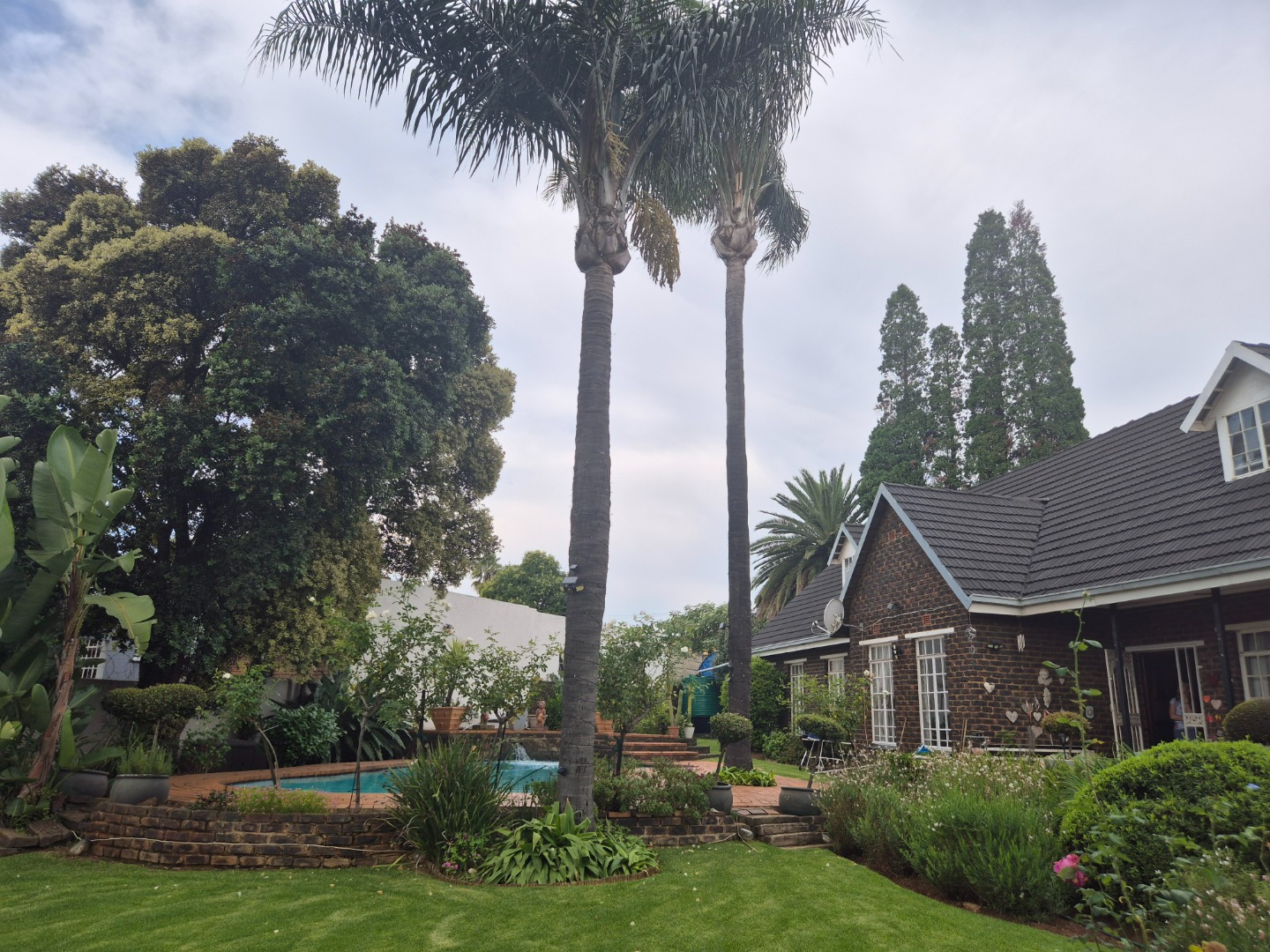 Set in the heart of Norkem Park, the property welcomes you with a beautifully landscaped garden that feels like a private retreat. Lush greenery, established trees, and winding brick pathways lead you through a tranquil setting, complete with a sparkling swimming pool surrounded by palms — perfect for relaxing or entertaining in your own holiday-like oasis.