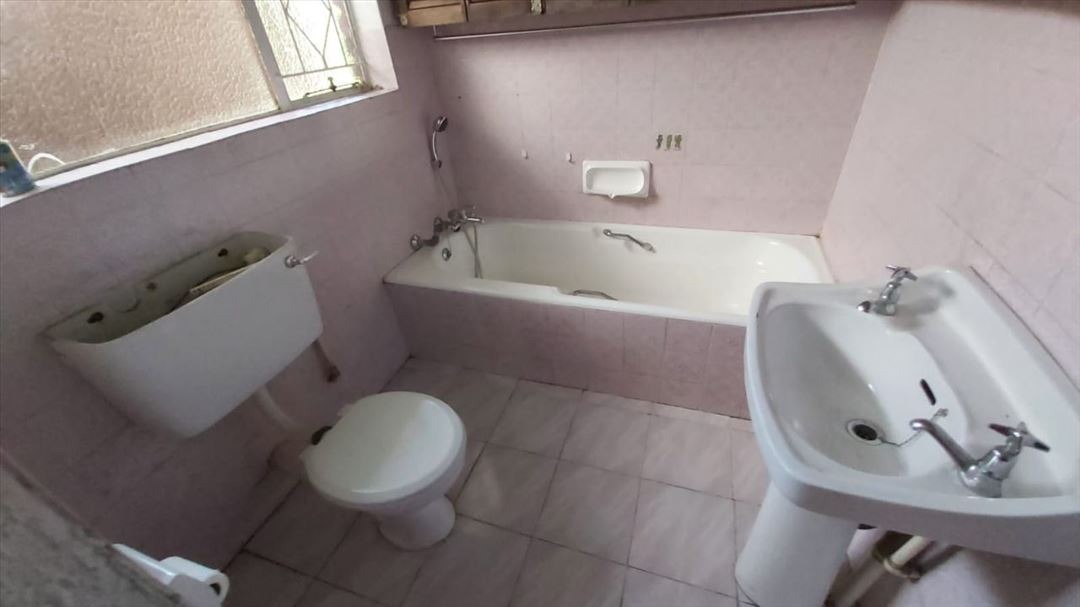 The spacious kitchen, while presenting a traditional aesthetic, is highly functional with an L-shaped layout, ample counter space, a double sink, and a gas hob. It provides a solid foundation for culinary activities and offers potential for future modernization. The three bedrooms are well-proportioned, each benefiting from natural light and tiled flooring. The two bathrooms are practical, featuring essential fixtures and tiled surfaces, with one including a bathtub and shower attachment.
