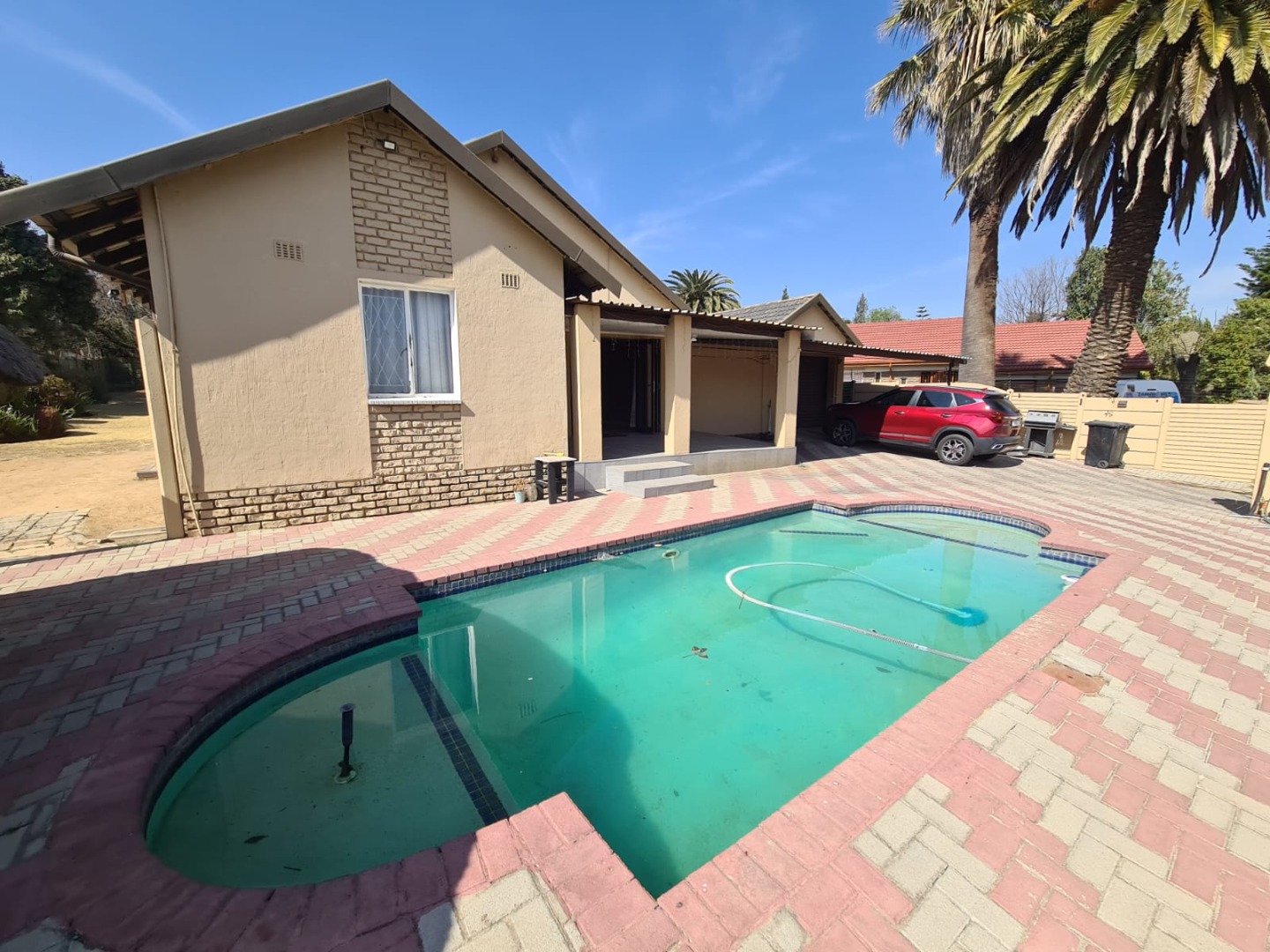 Step outside to discover a private oasis, perfect for relaxation and social gatherings. The property boasts a private swimming pool, a charming thatched lapa, and extensive paved outdoor areas, complemented by a covered patio. Practical amenities include a garage and carport, staff quarters, and outside toilet, all set within a manageable garden. This residence presents a solid foundation for a family seeking a well-located home with significant potential.