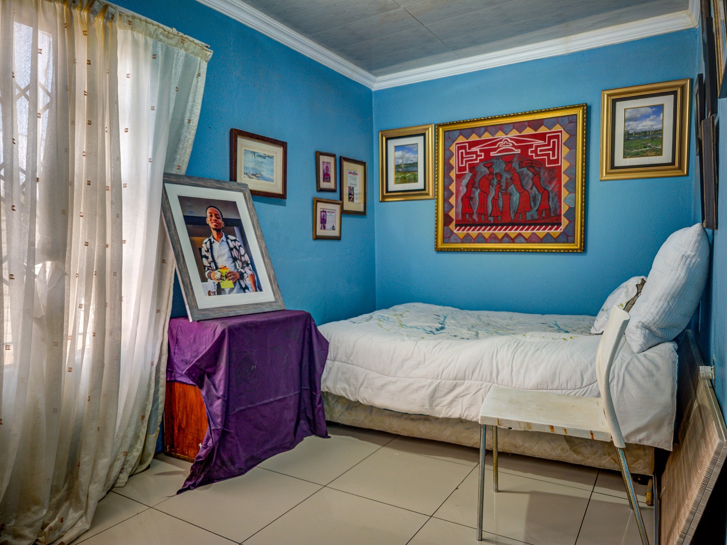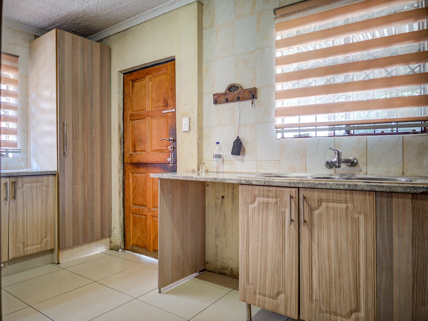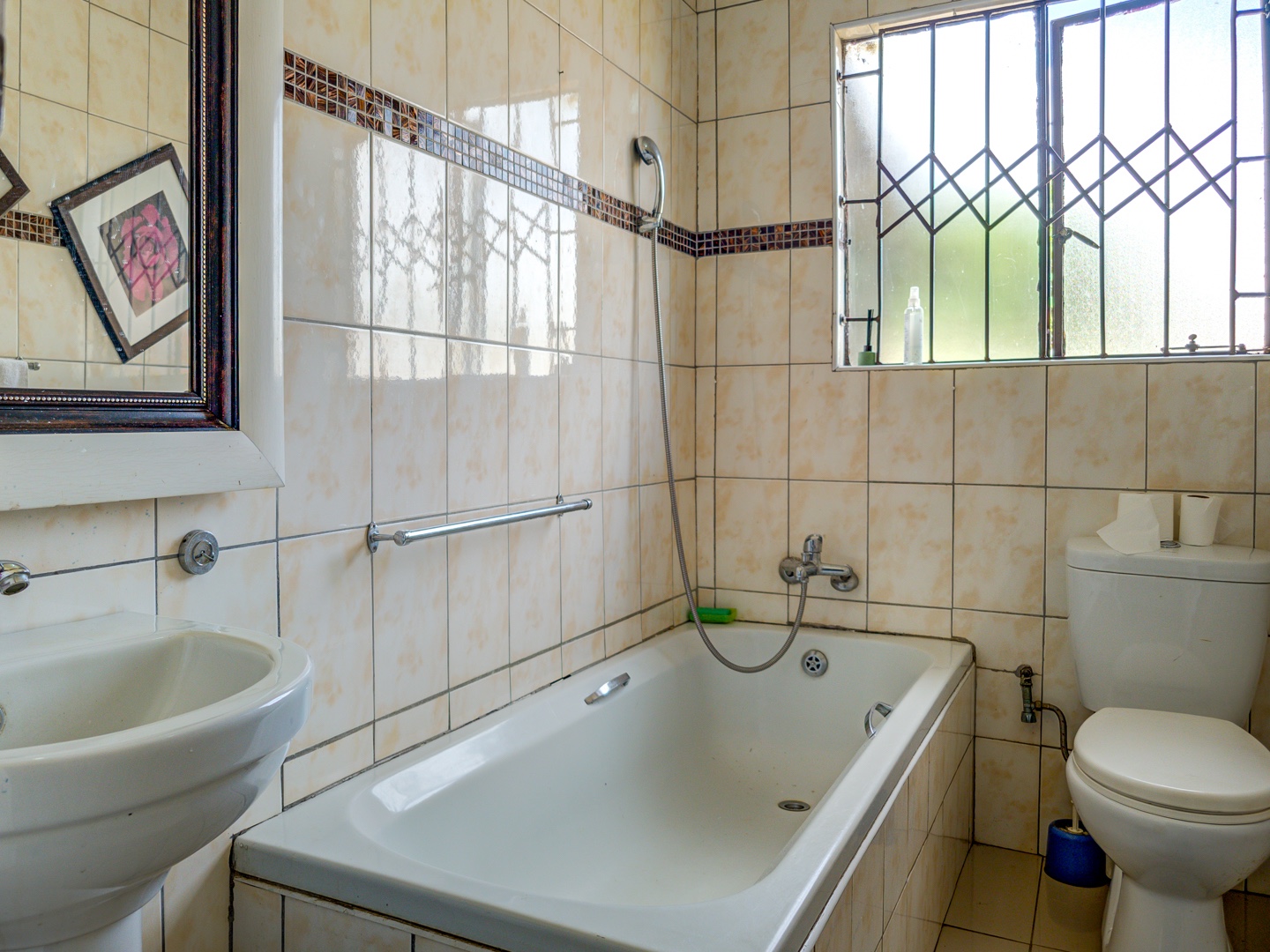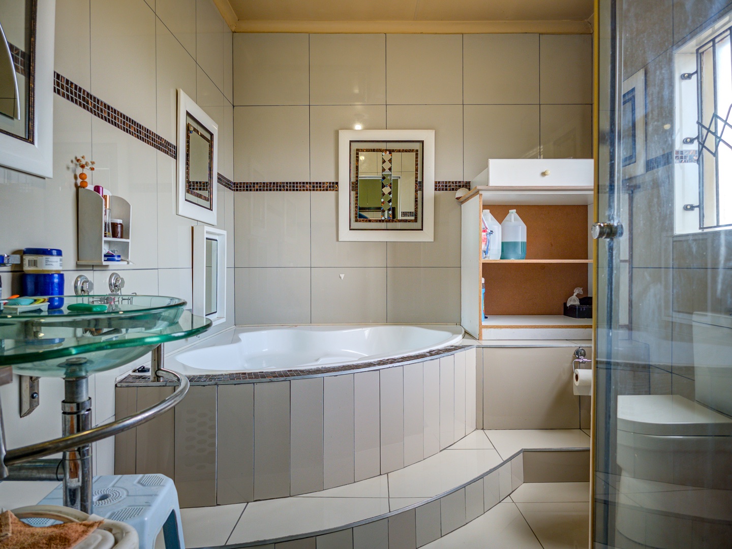 This family home features four tiled bedrooms, with the main bedroom boasting a full en-suite bathroom that includes both a bathtub and a shower. The neat, functional kitchen is equipped with two stoves — one gas and one electric — ideal for effortless cooking and meal prep.
