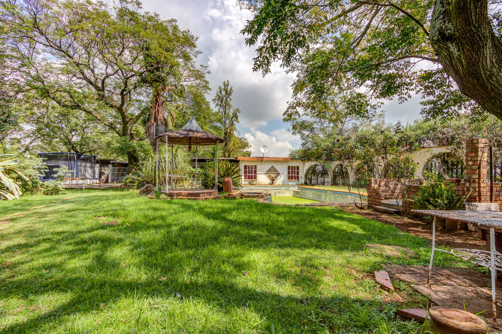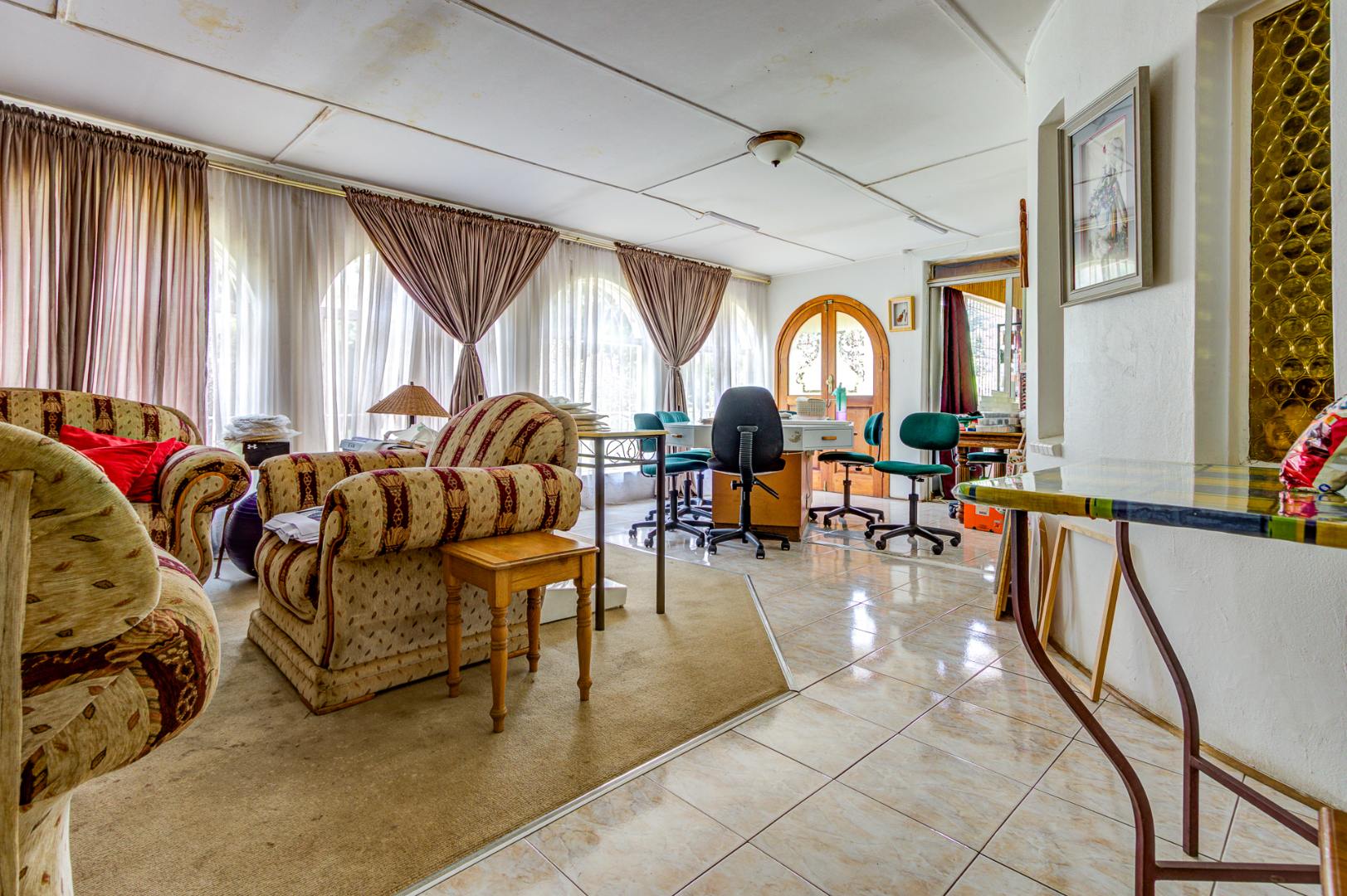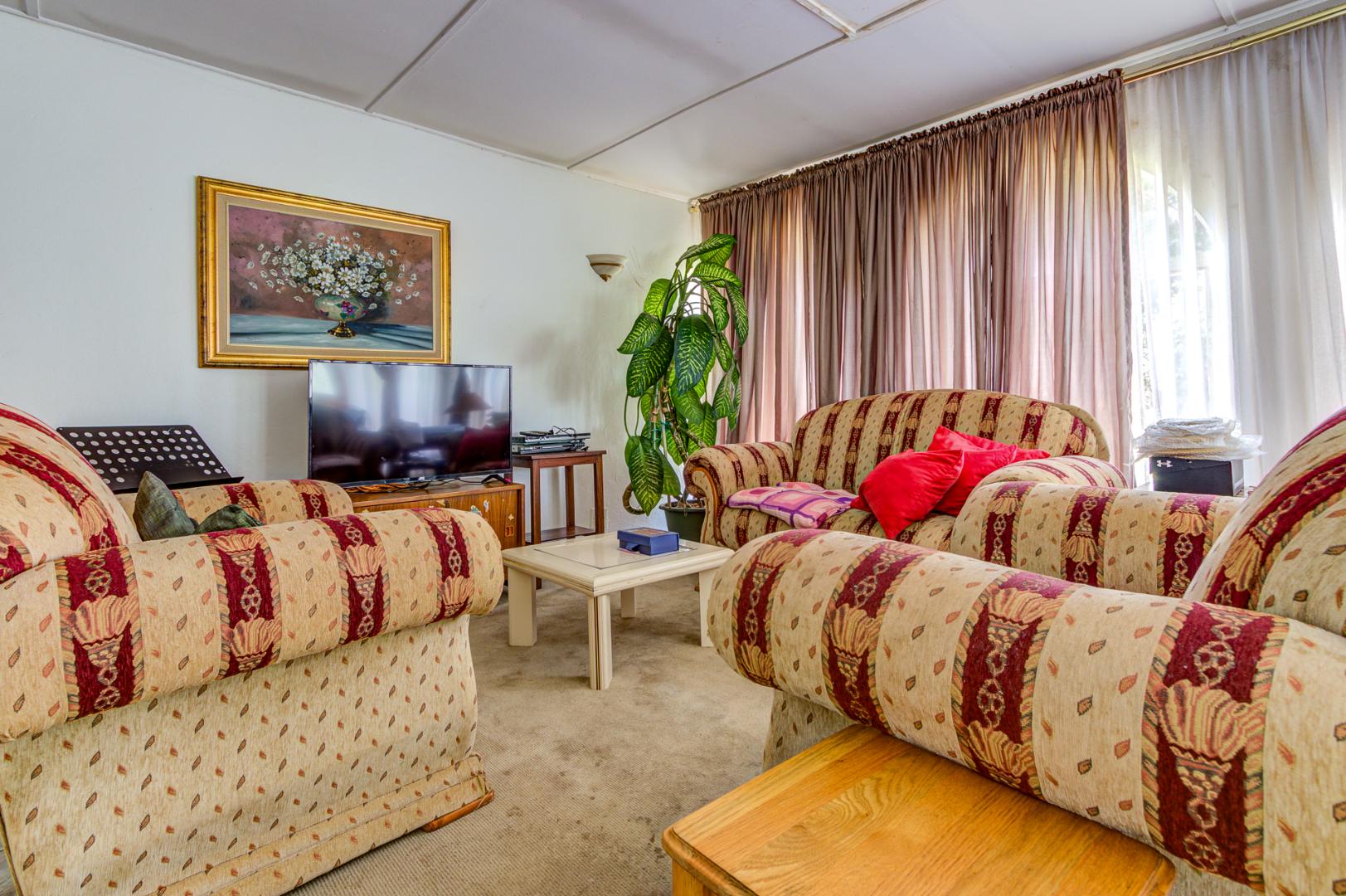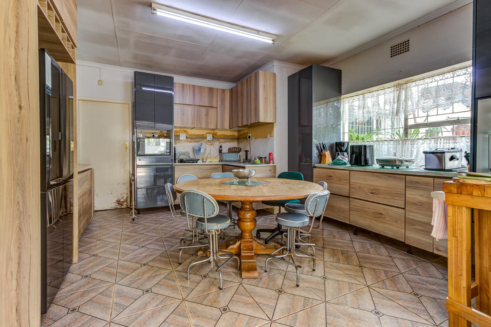 Externally, the property offers a refreshing swimming pool, a well-maintained garden, and a borehole for water independence. Parking is abundant with four garages and an additional 12 parking spaces. Security is well-addressed with an access gate, alarm system, and burglar bars. A standout feature of this property is the inclusion of subdivision rights, presenting a significant investment opportunity for expansion.