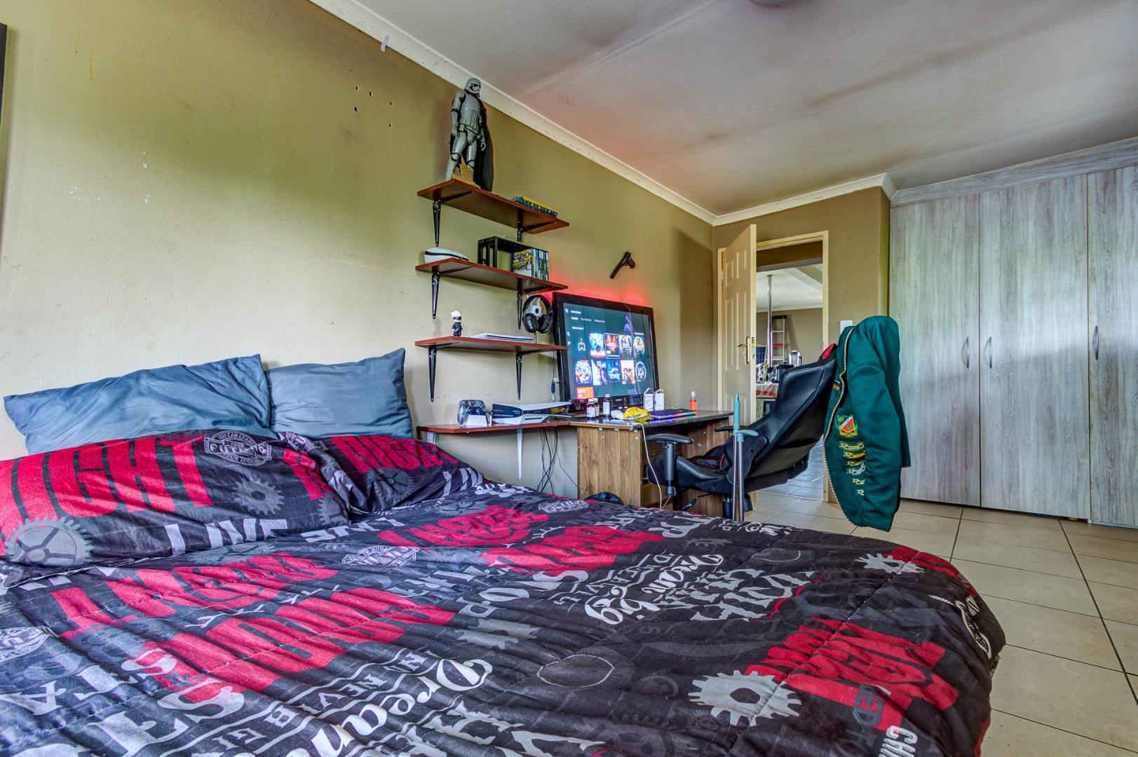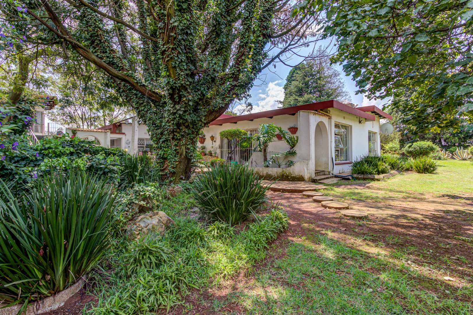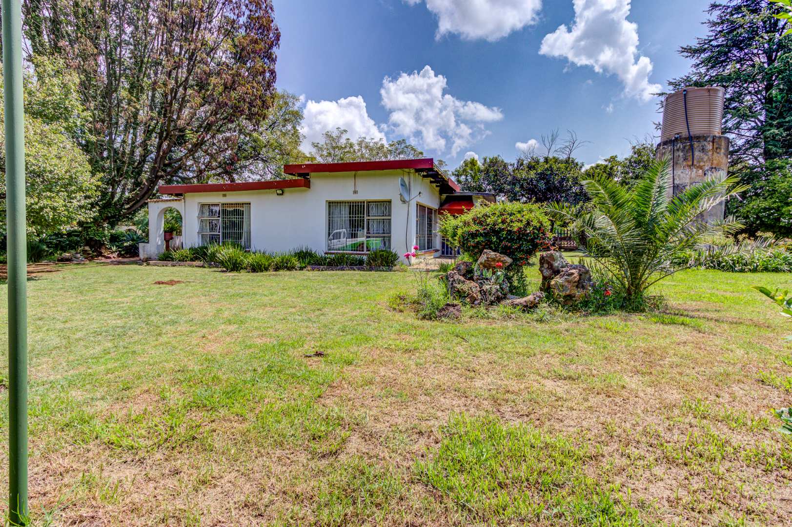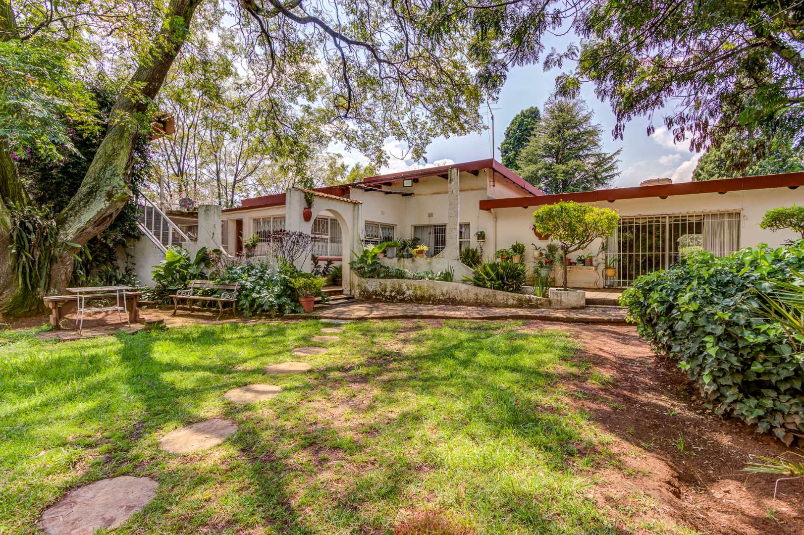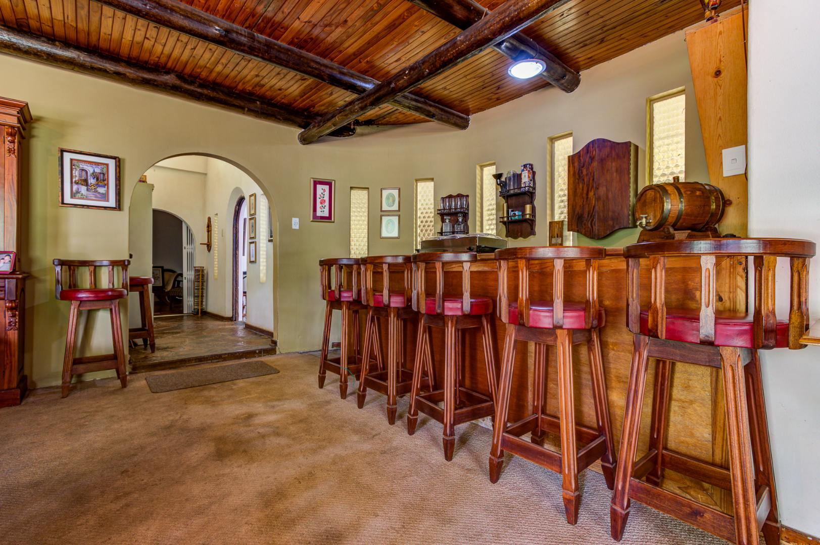 Externally, the property offers a refreshing swimming pool, a well-maintained garden, and a borehole for water independence. Parking is abundant with four garages and an additional 12 parking spaces. Security is well-addressed with an access gate, alarm system, and burglar bars. A standout feature of this property is the inclusion of subdivision rights, presenting a significant investment opportunity for expansion.