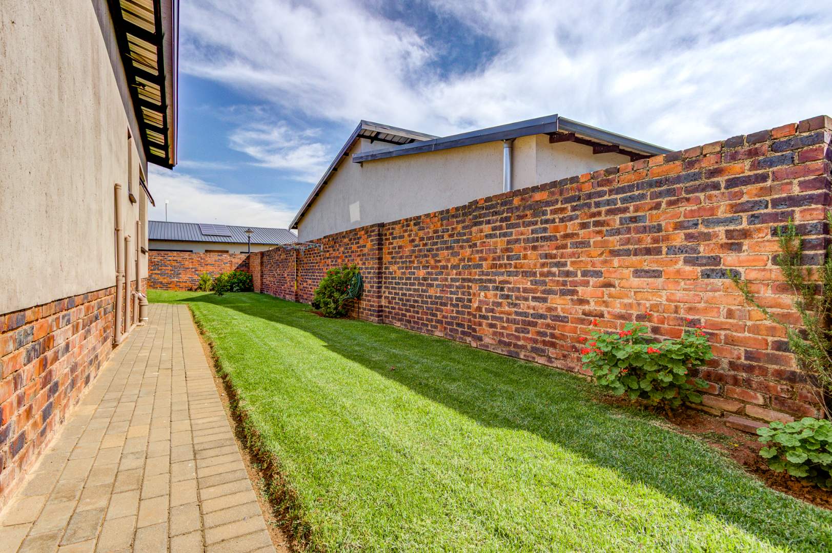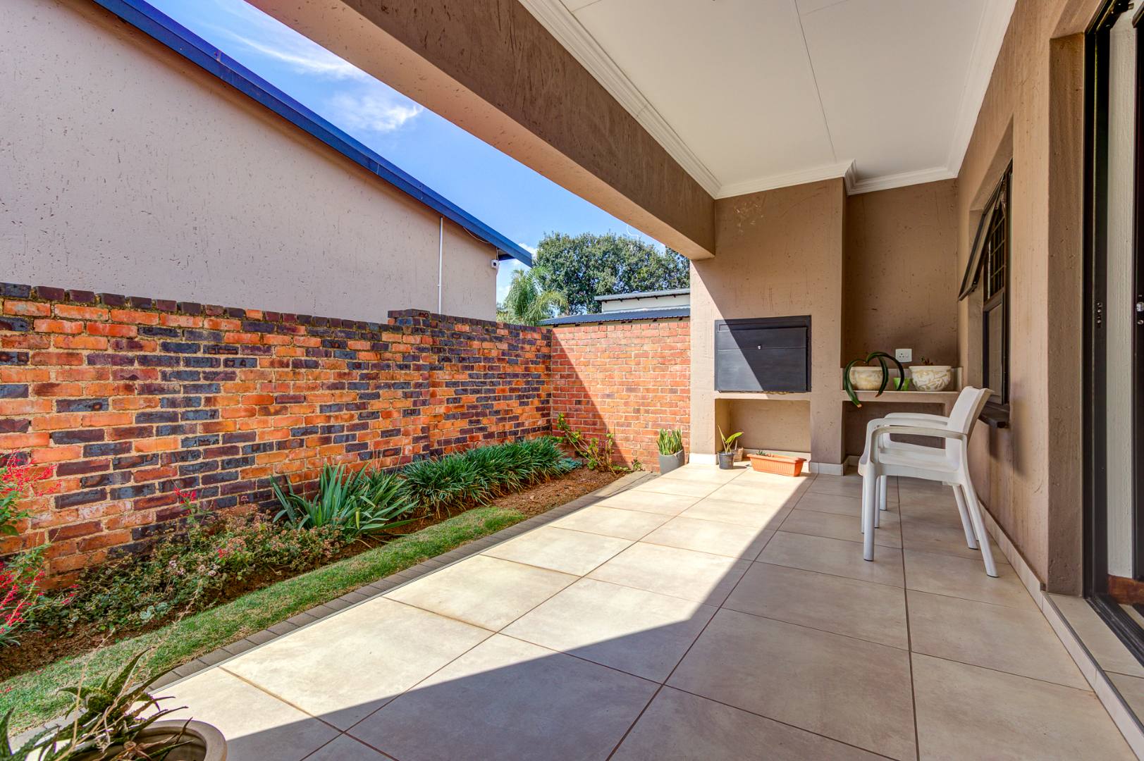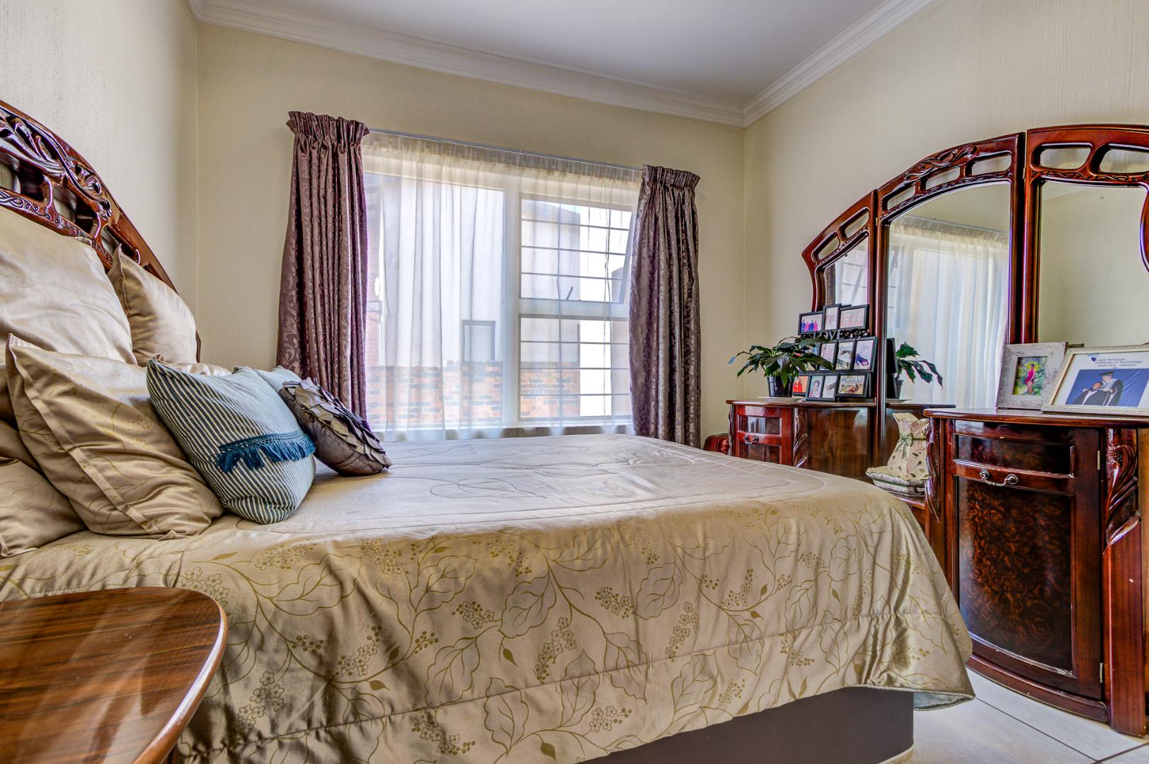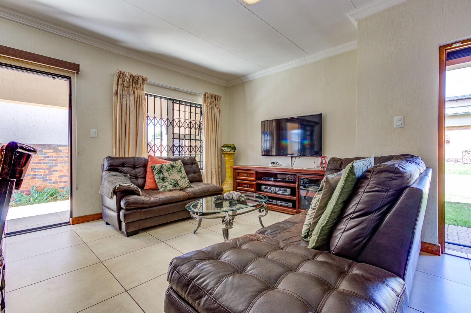 Accommodation includes three spacious, sun-filled bedrooms and two full bathrooms. The home is further enhanced by a gas geyser, adding to its energy efficiency.