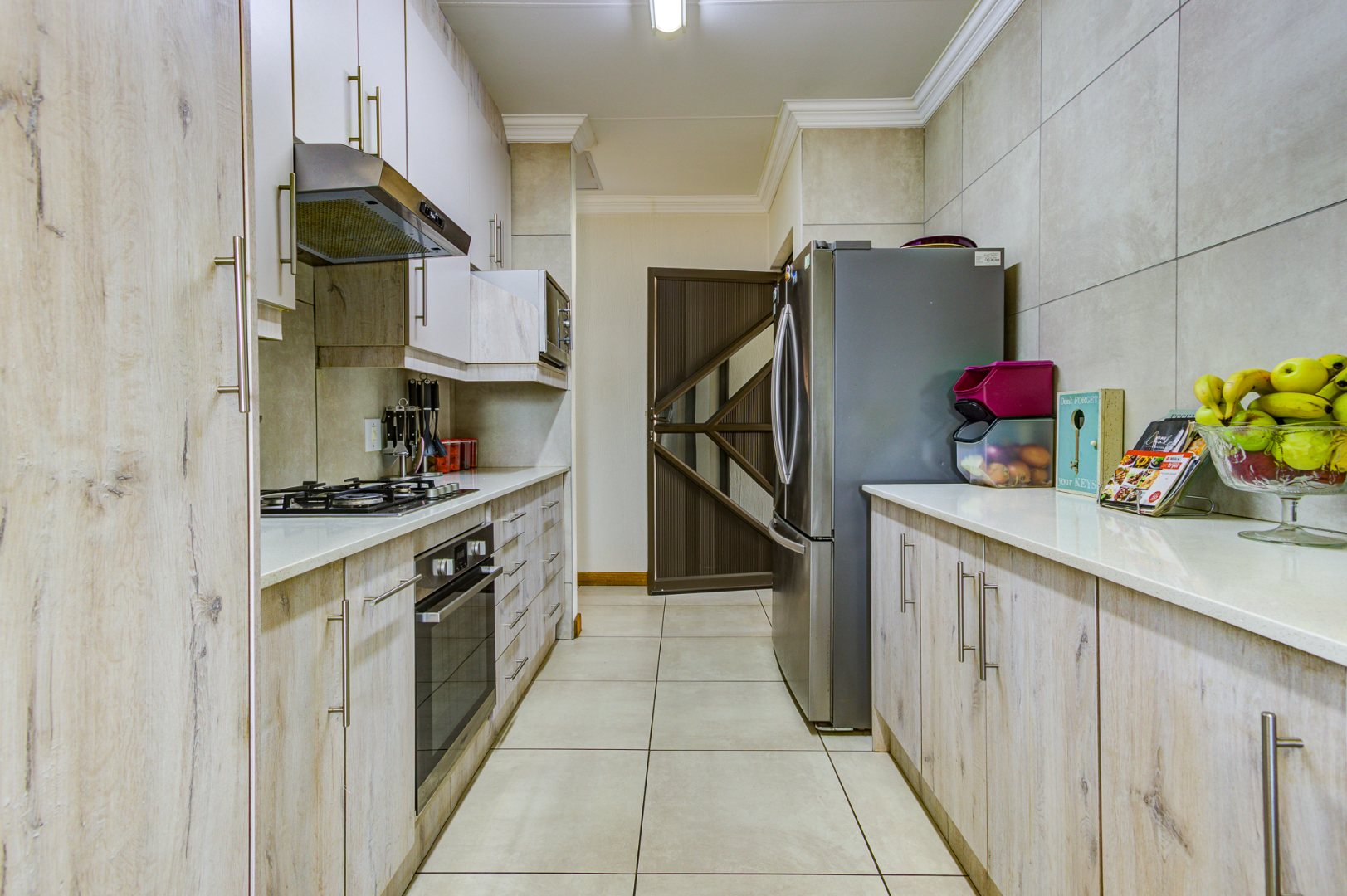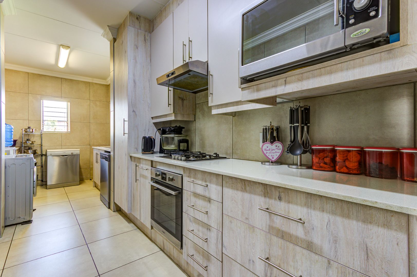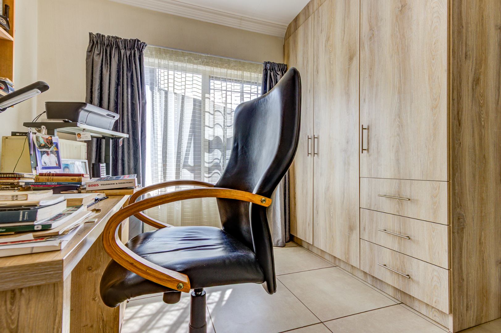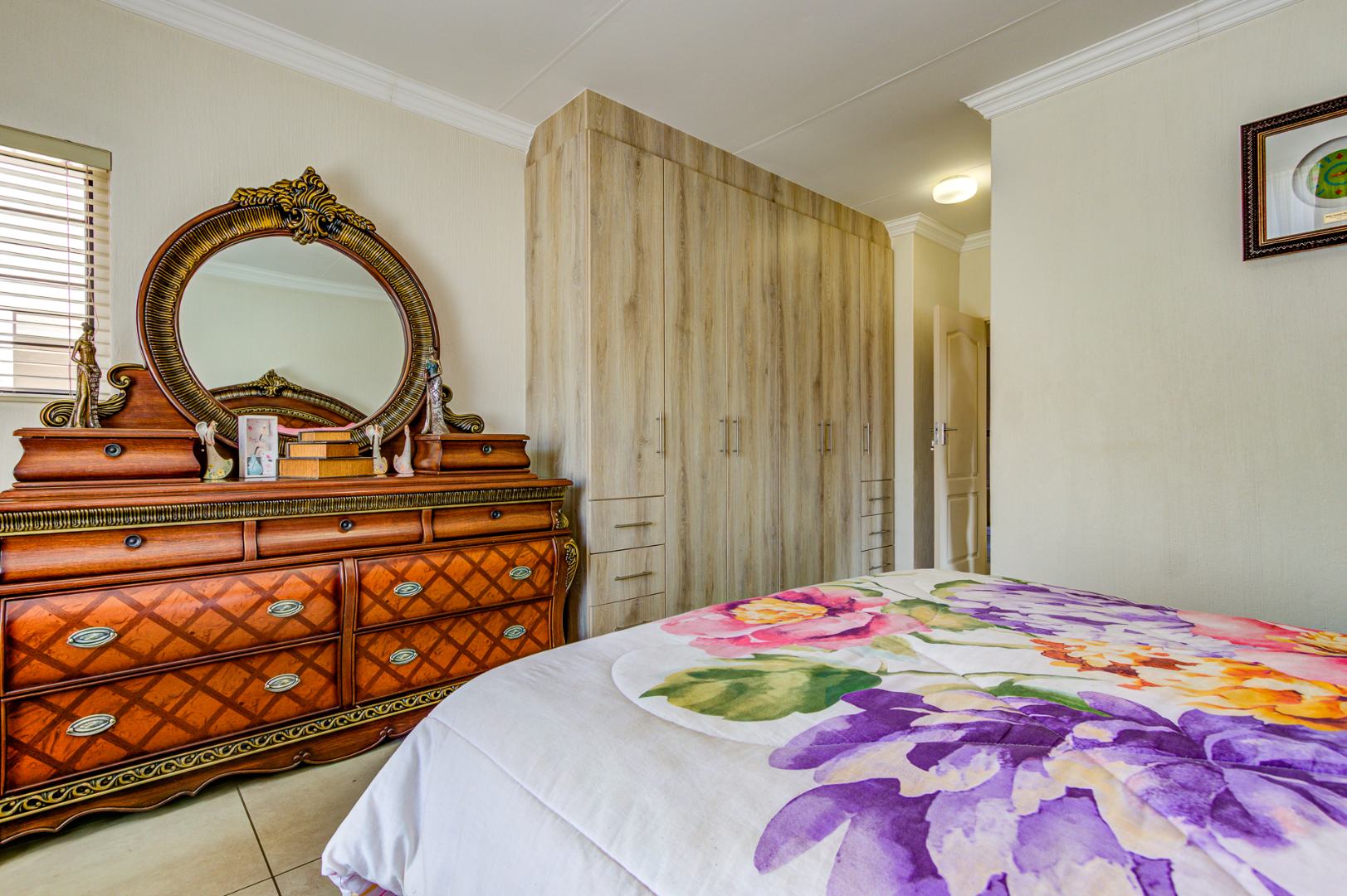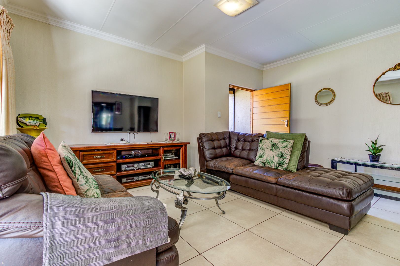 Accommodation includes three spacious, sun-filled bedrooms and two full bathrooms. The home is further enhanced by a gas geyser, adding to its energy efficiency.
