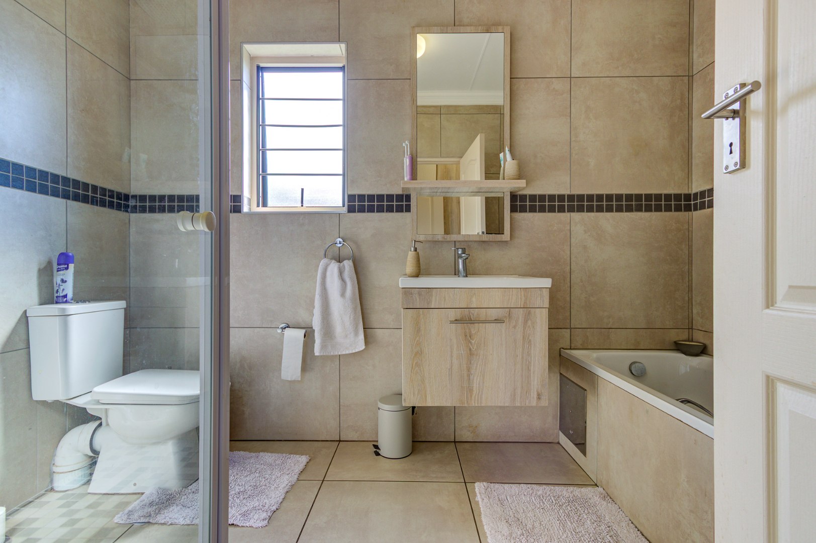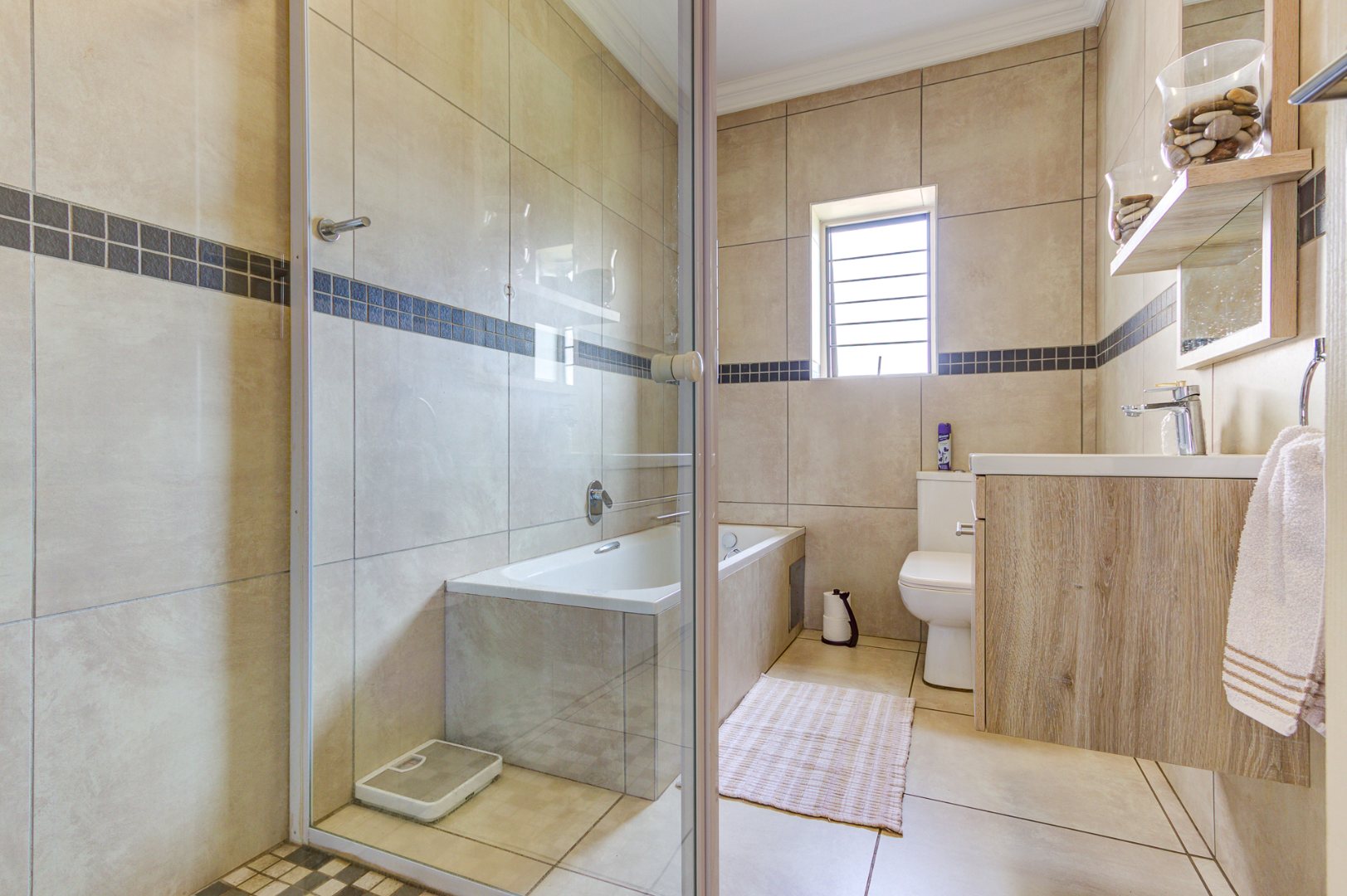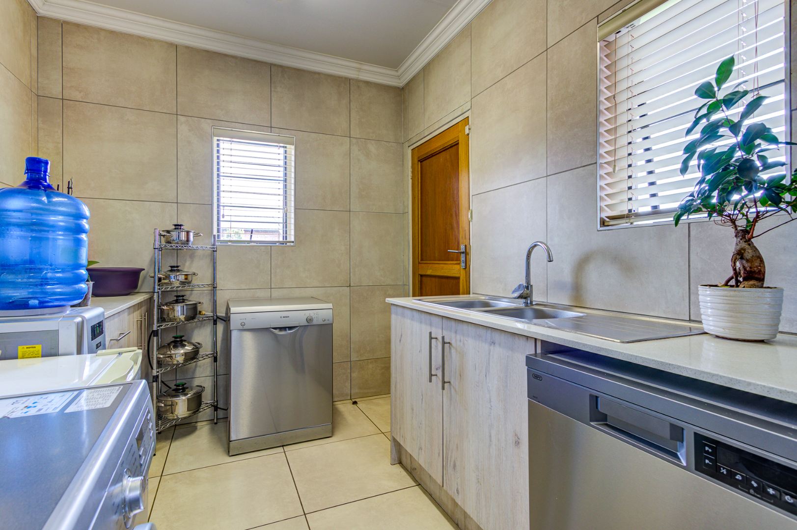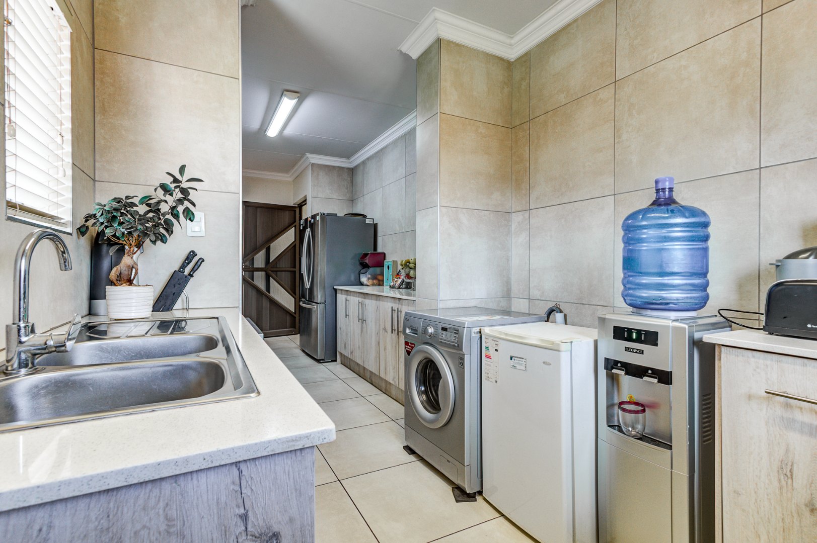 Accommodation includes three spacious, sun-filled bedrooms and two full bathrooms. The home is further enhanced by a gas geyser, adding to its energy efficiency.