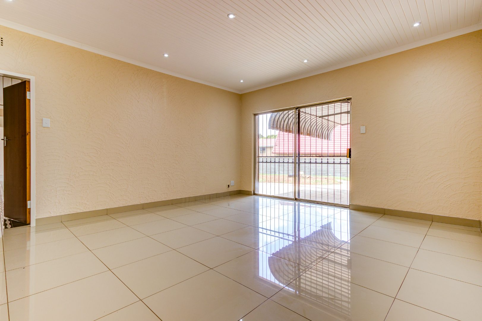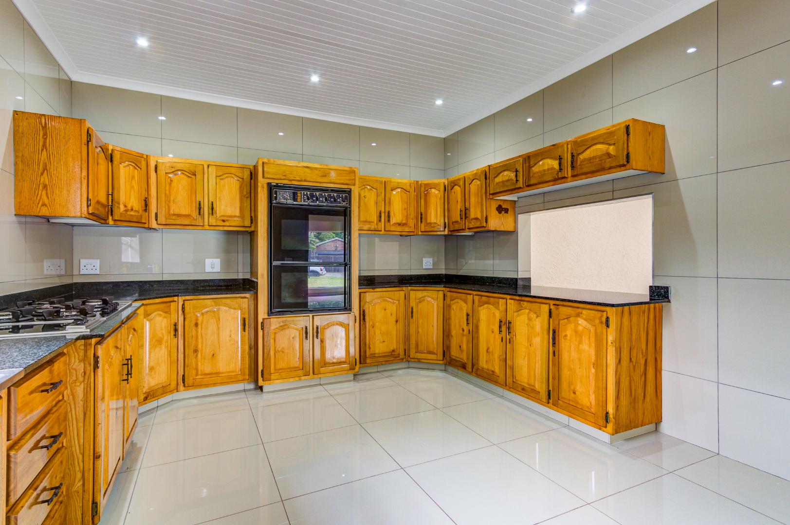 Step inside through the distinctive wooden entrance door with privacy glass into an inviting space with clean, light-colored tiled floors and textured neutral walls. The home boasts two comfortable lounges and a dedicated dining room, perfect for family gatherings or just chilling out. The spacious kitchen is a real highlight, equipped with extensive wooden cabinetry, durable granite countertops, an integrated double oven, and a gas hob. You'll also find a handy scullery/utility area, making meal prep and clean-up a breeze.