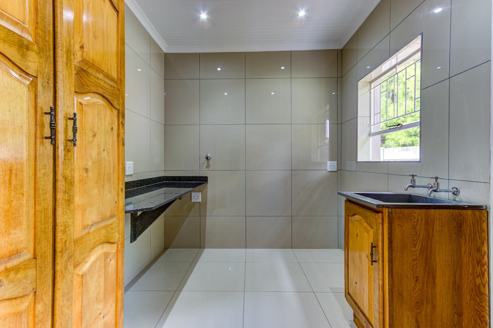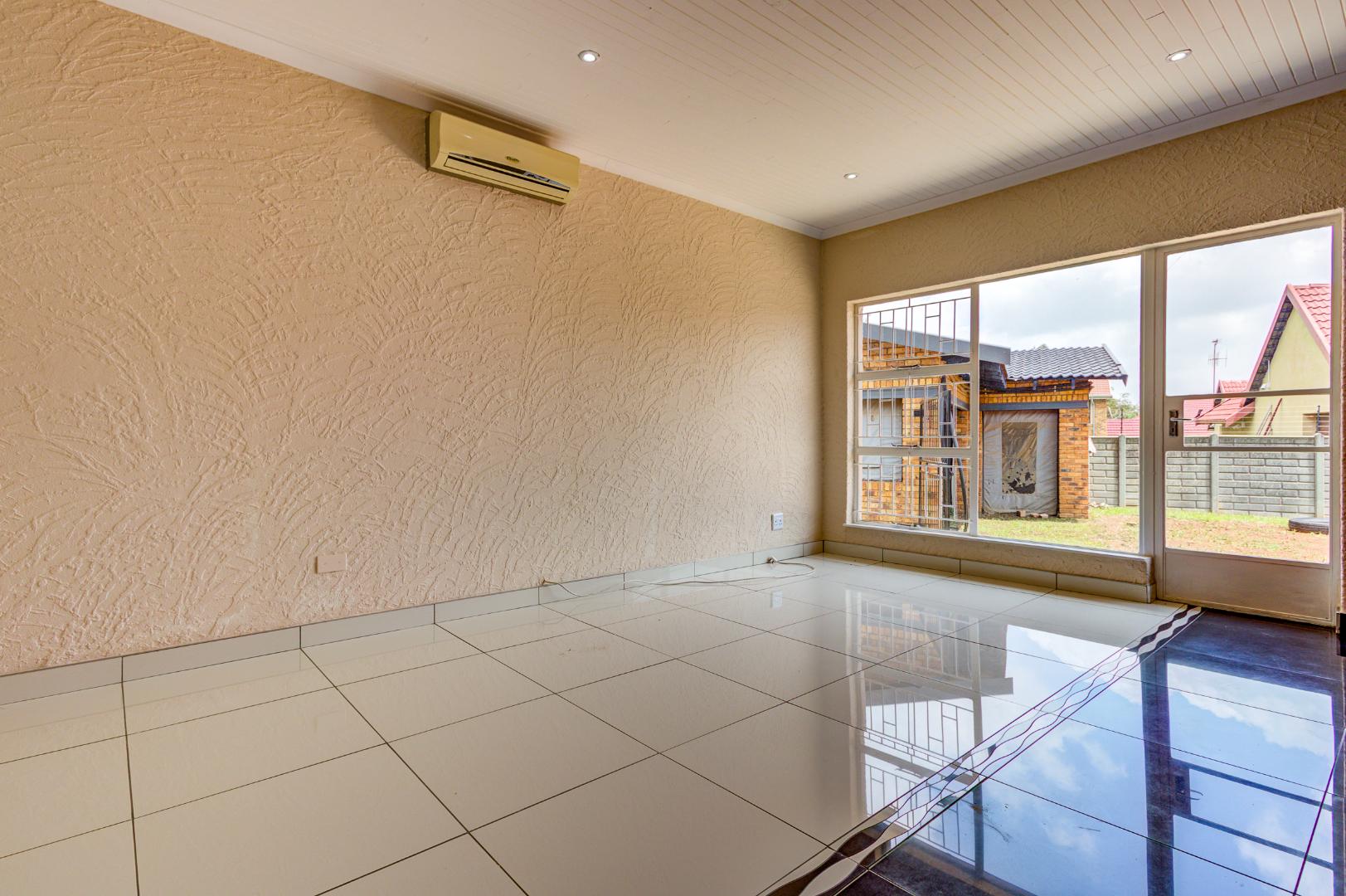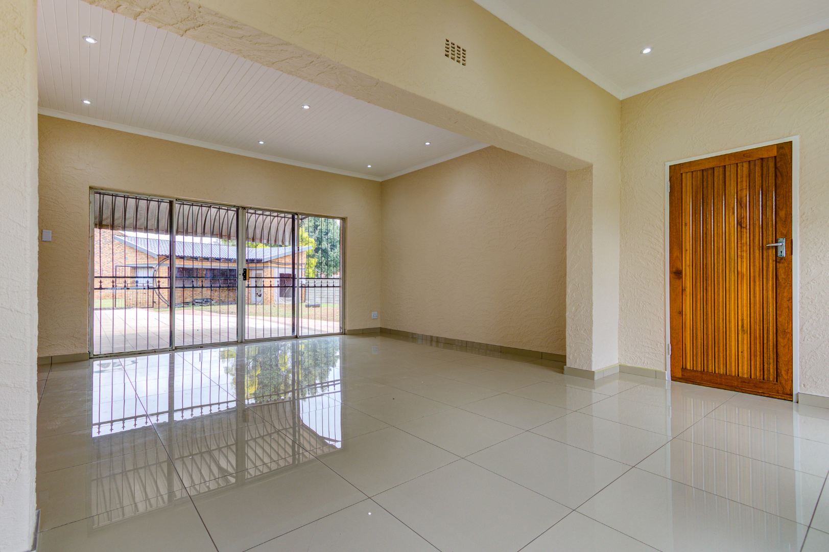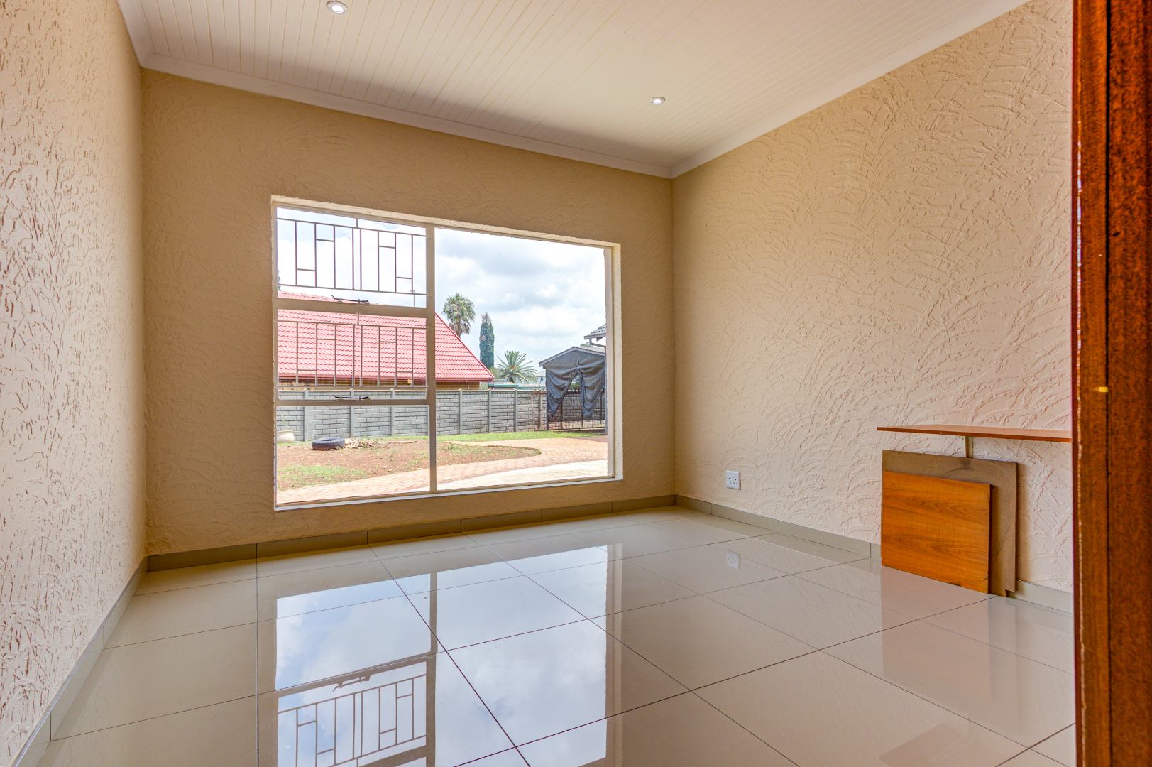 Step inside through the distinctive wooden entrance door with privacy glass into an inviting space with clean, light-colored tiled floors and textured neutral walls. The home boasts two comfortable lounges and a dedicated dining room, perfect for family gatherings or just chilling out. The spacious kitchen is a real highlight, equipped with extensive wooden cabinetry, durable granite countertops, an integrated double oven, and a gas hob. You'll also find a handy scullery/utility area, making meal prep and clean-up a breeze.