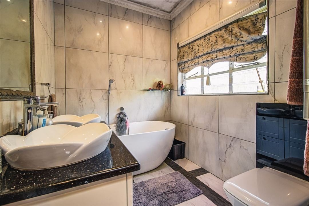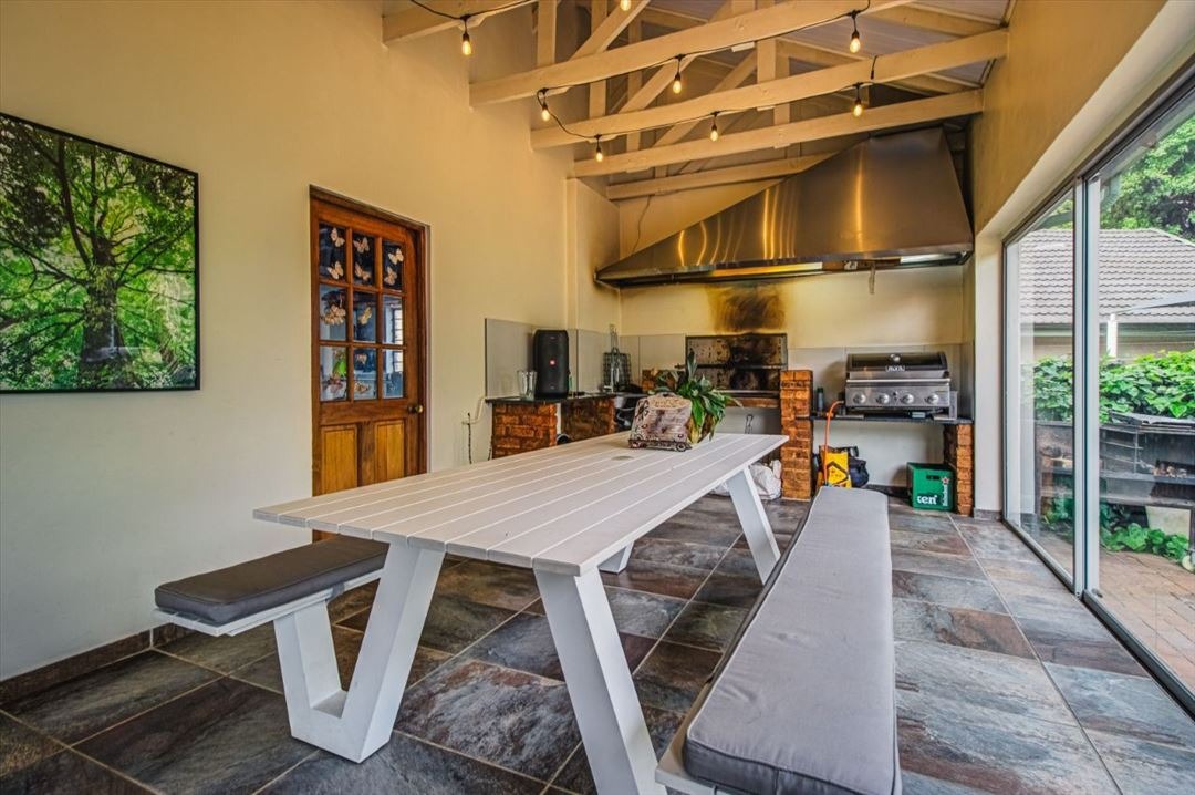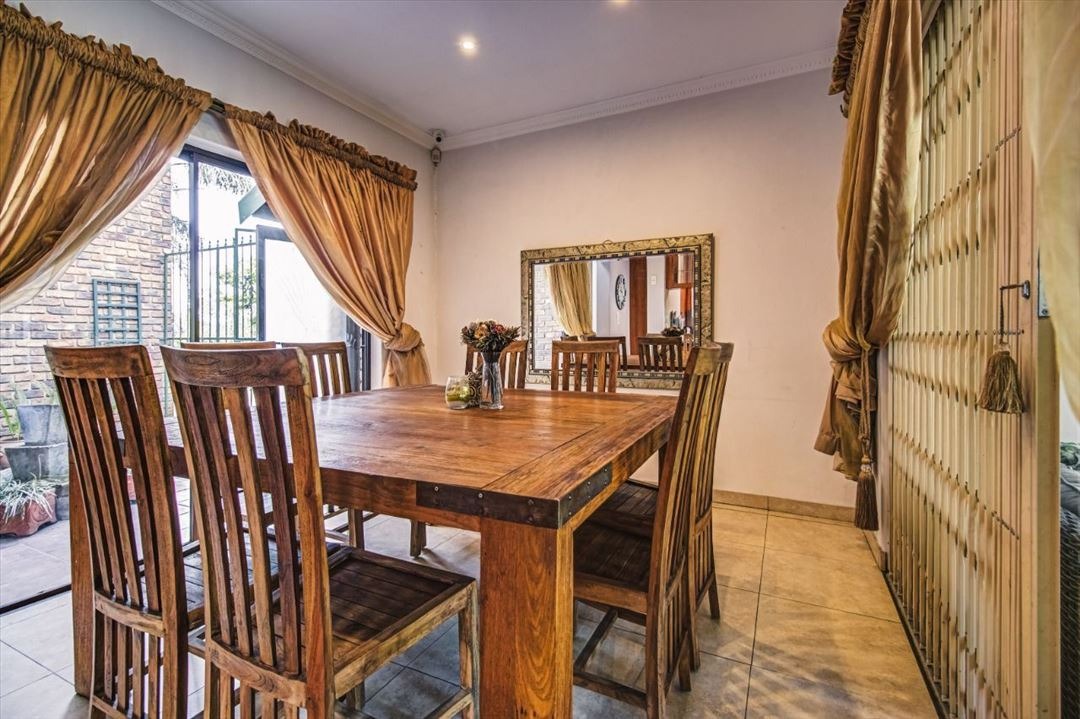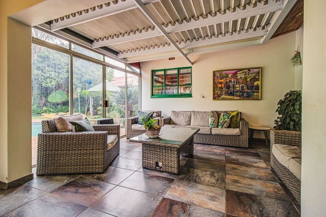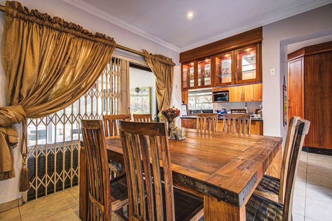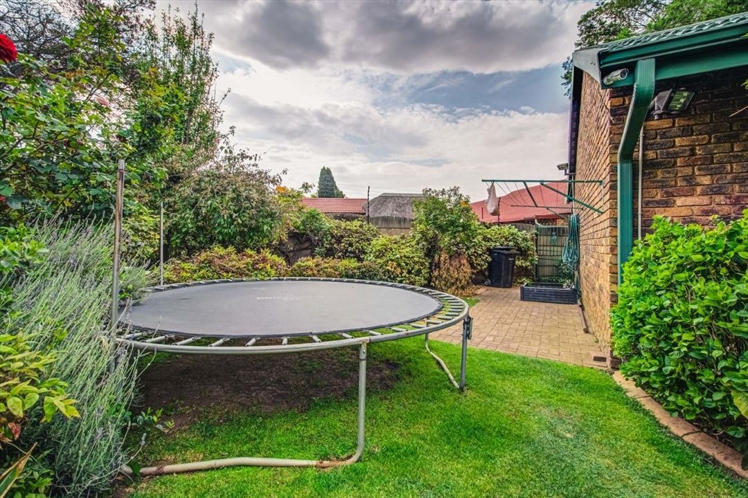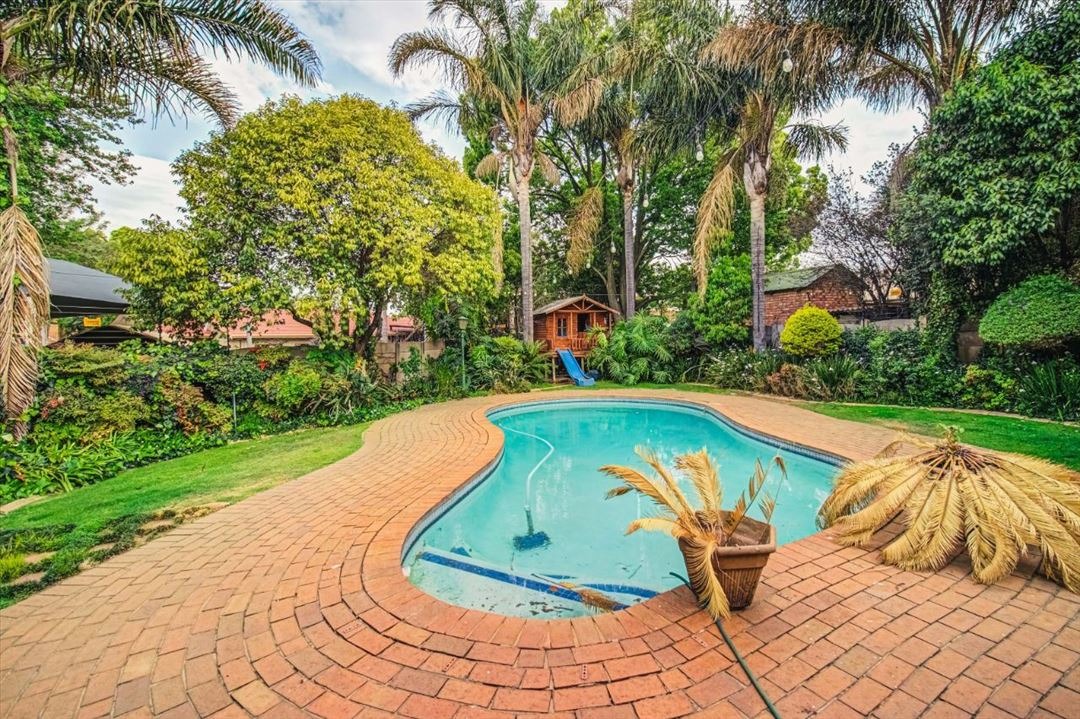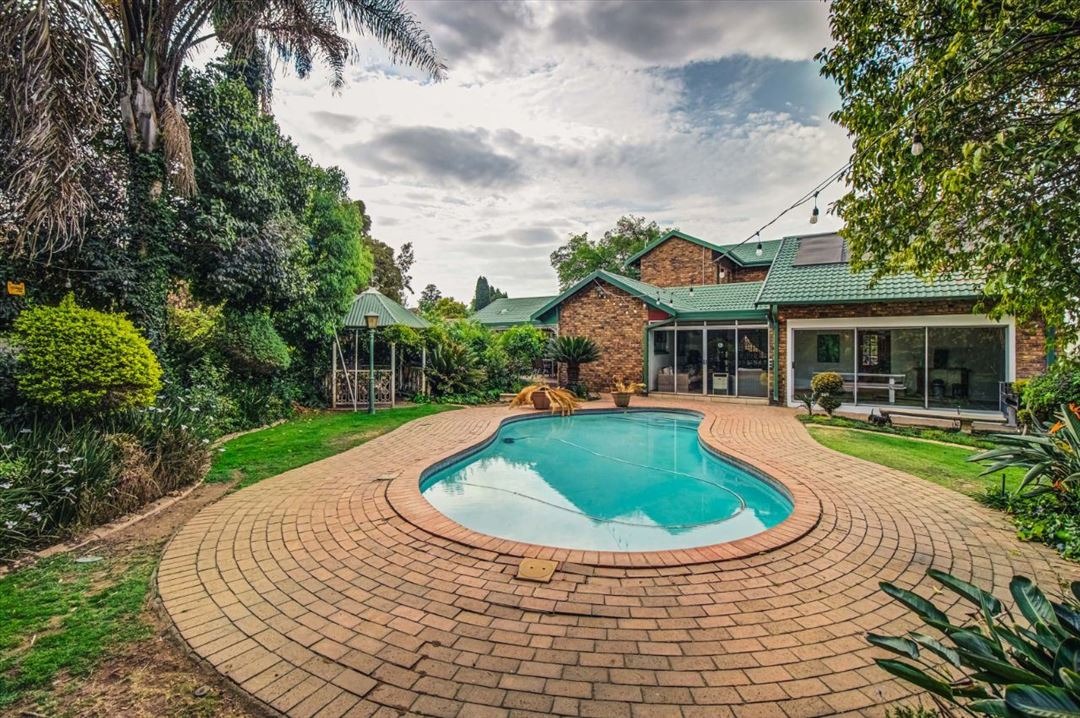 Discover an exquisite family sanctuary in the heart of Pomona, Kempton Park, where luxury meets expansive living. This distinguished two-story brick residence, set on a generous 1200 sqm erf with a substantial 375 sqm floor size, immediately captivates with its classic facade, mature landscaping, and a grand paved driveway leading to a double garage. The inviting covered front porch and an elegant upper balcony offer serene vantage points, while the attractive wooden front door, adorned with a decorative green awning, sets a tone of refined welcome. Step into a home designed for both grand entertaining and intimate family moments. The interior boasts six spacious bedrooms and two well-appointed bathrooms, including a luxurious en-suite, ensuring comfort and privacy for all. A dedicated lounge, a sophisticated dining room, and a well-equipped kitchen form the heart of the home, promising seamless flow for daily life and special occasions. The outdoor realm is a private paradise, featuring a magnificent kidney-shaped swimming pool, enveloped by extensive brick paving and a lush, mature garden. A charming gazebo provides an idyllic setting for al fresco dining, while a delightful wooden playhouse and trampoline cater to younger residents. Large glass sliding doors effortlessly merge indoor and outdoor living, creating an entertainer's dream. Embrace sustainable living with visible solar panels contributing to energy efficiency. The property is further secured with electric fencing, an access gate, security gates, and a security camera, offering peace of mind. Located in the vibrant community of Pomona, this residence provides convenient access to local amenities and major transport routes, making it an ideal address for discerning families seeking an unparalleled lifestyle in South Africa.