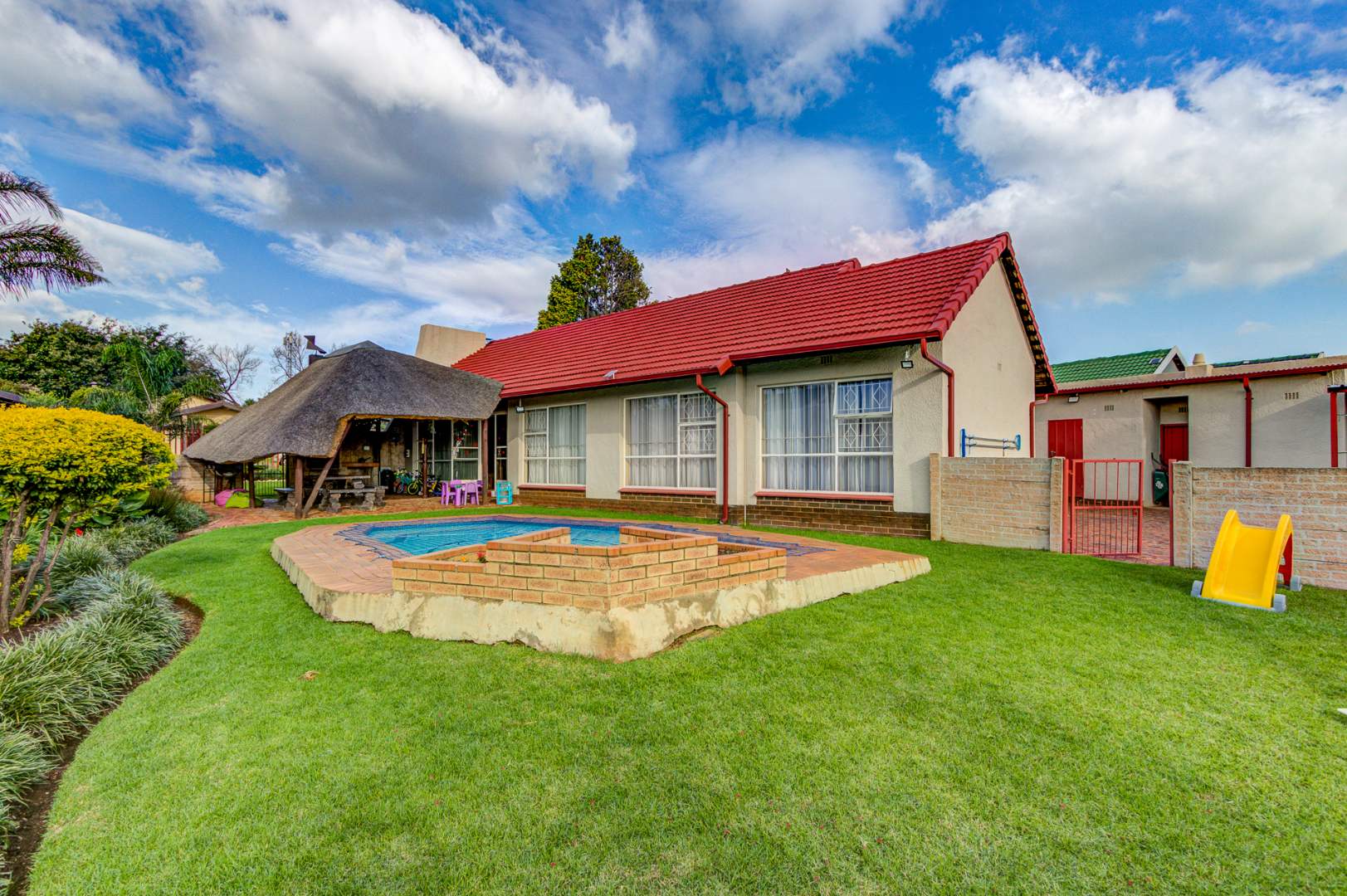 Discover this inviting three-bedroom, two-bathroom family home in the established suburb of Rhodesfield, Kempton Park. Set on a generous 849 sqm erf, the property offers comfortable living with plenty of room for future enhancements. Its convenient location provides easy access to major routes, schools, and everyday amenities, making it ideal for families seeking both space and accessibility. The home features a well-sized lounge, a dedicated dining area, and a functional kitchen, creating a practical layout for daily living and entertaining.