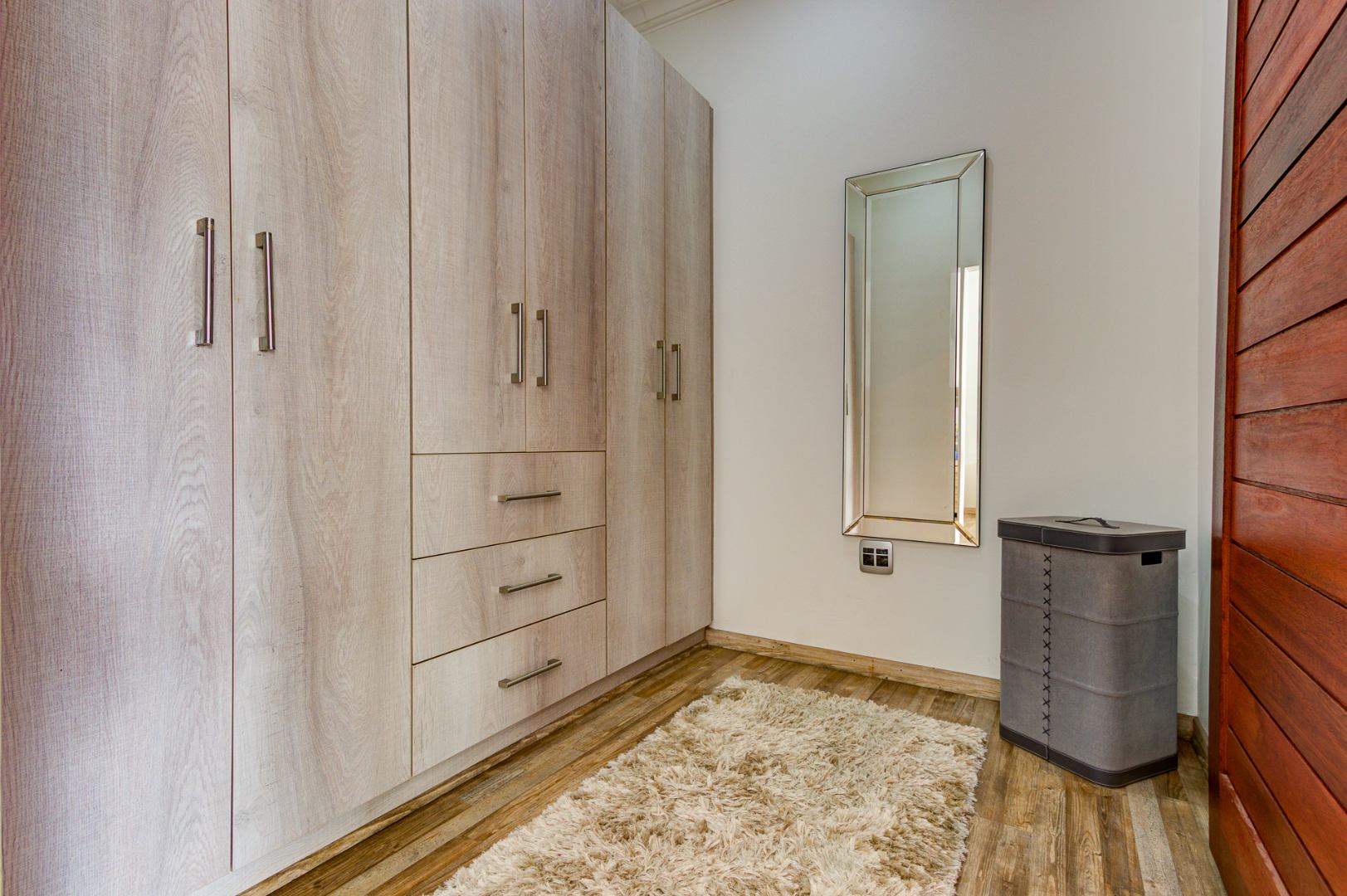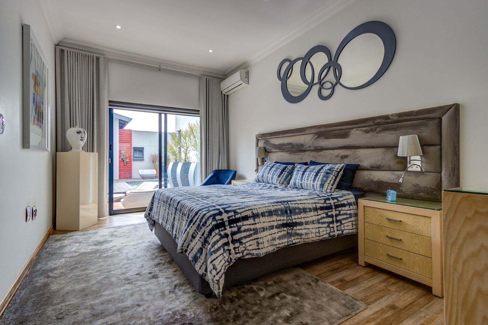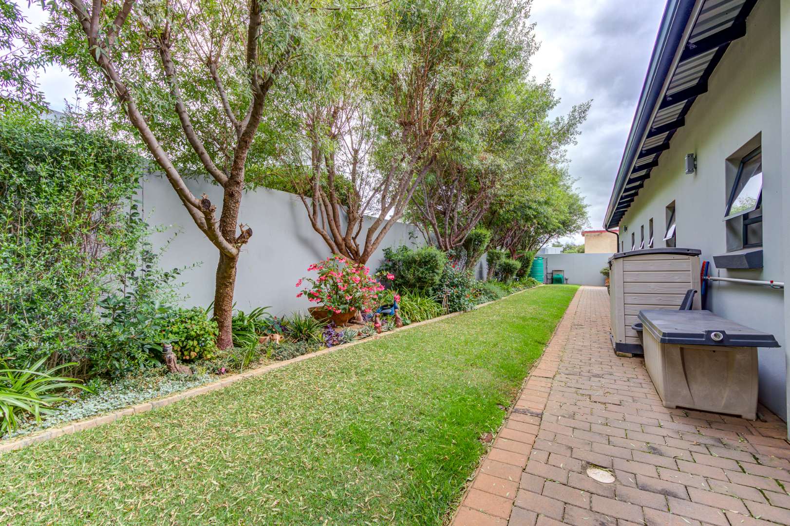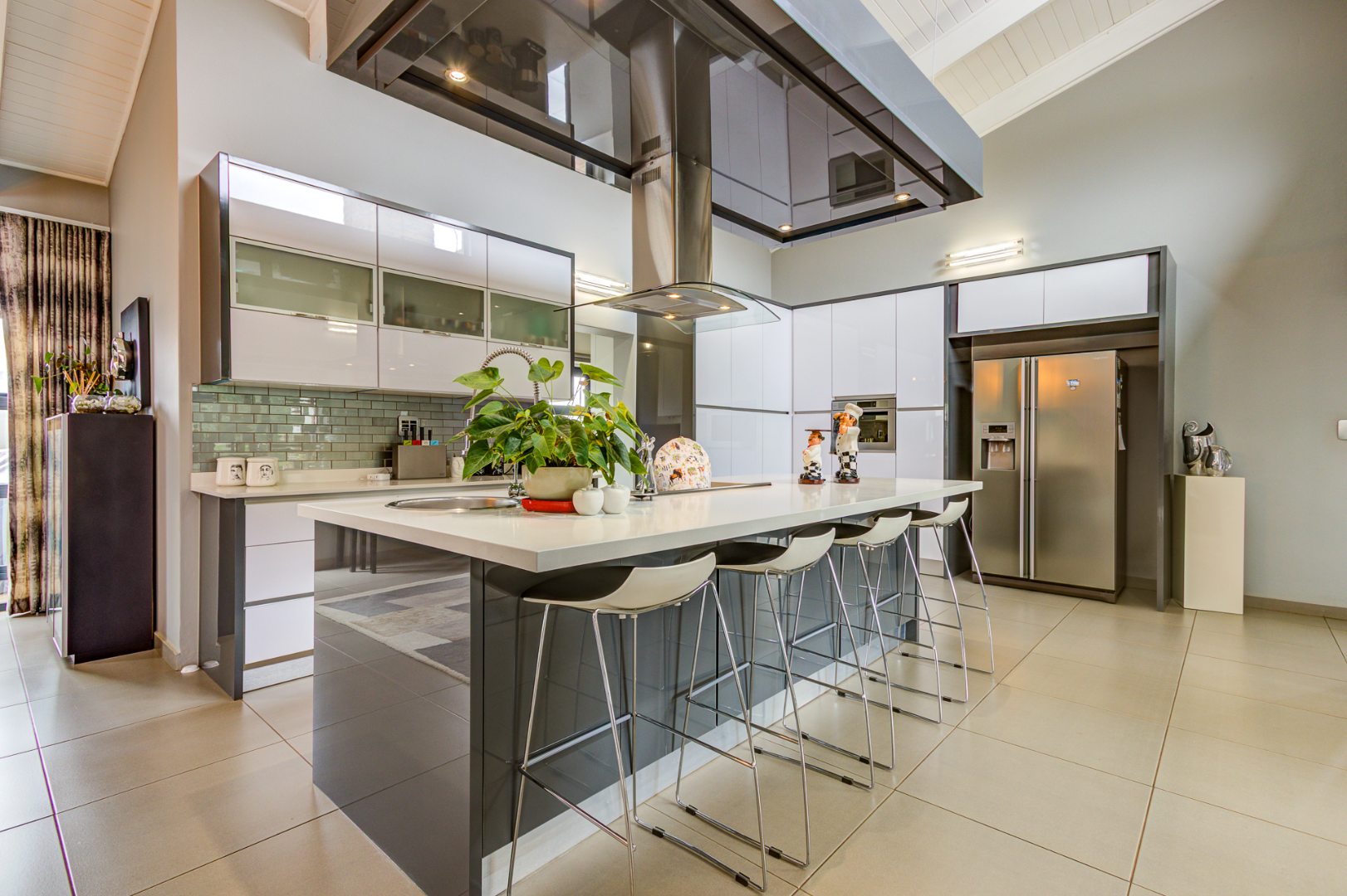 The open plan design is amazing and modern. A spacious lounge, dining room and a gourmet kitchen open onto a family room complete with built in braai. This then opens onto the heated swimming pool nestled in a private immaculate architecturally designed garden.