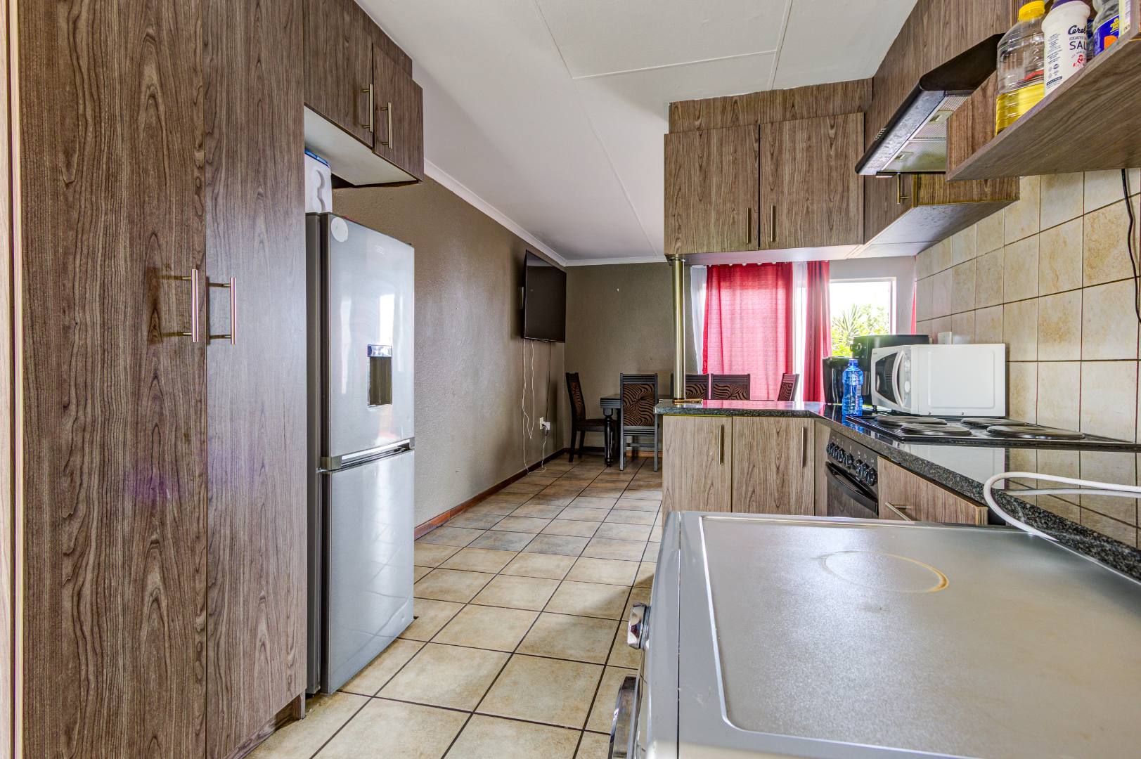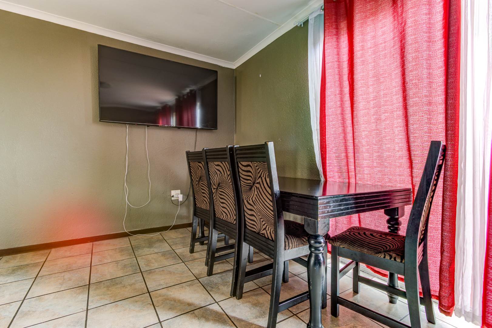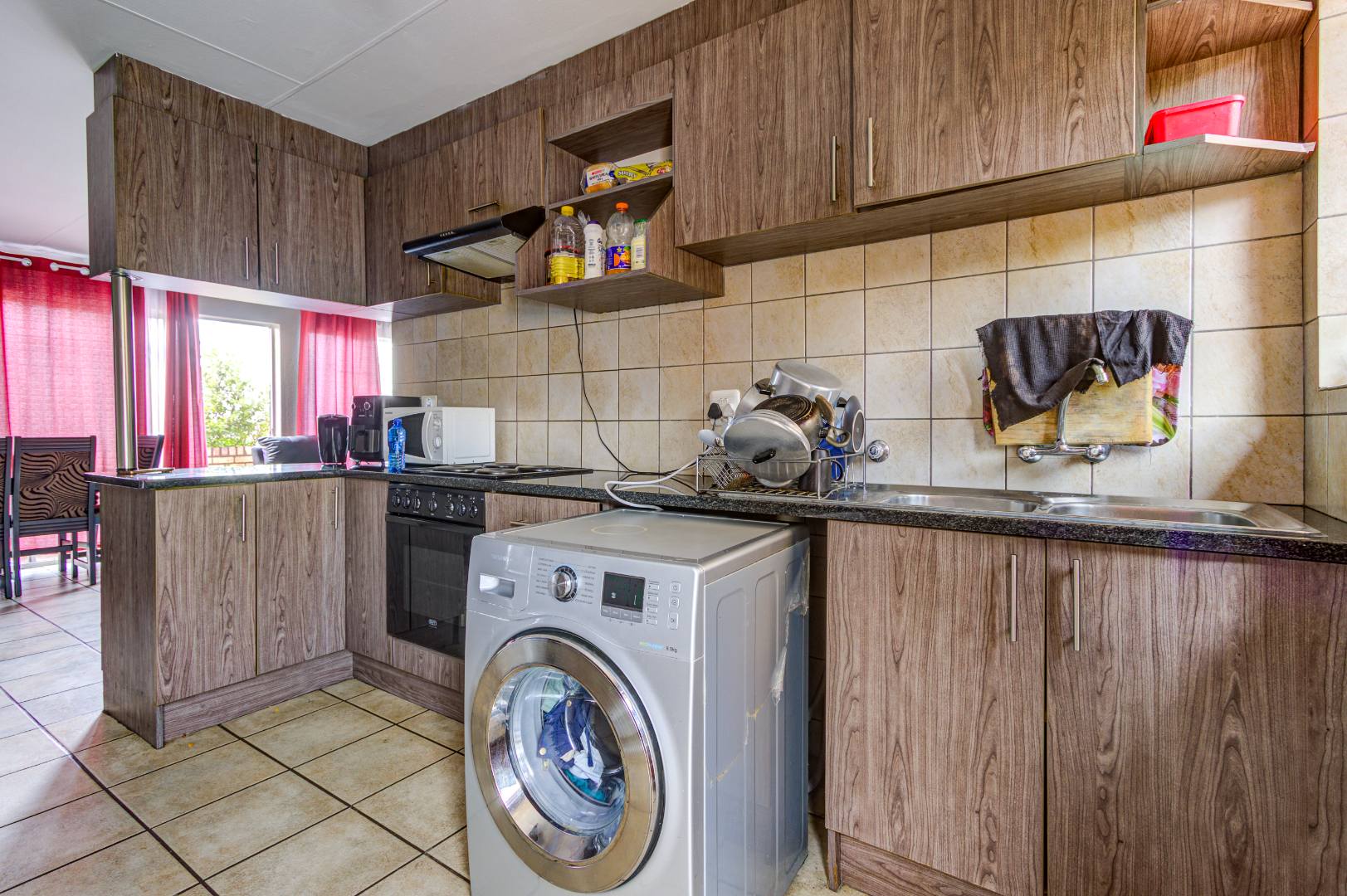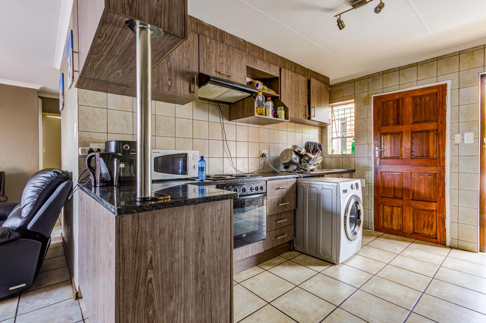Discover comfortable complex living in this inviting 2-bedroom, 2-bathroom unit located in the established suburb of Terenure, Kempton Park. This property offers a practical layout designed for ease and functionality, making it an ideal choice for first-time buyers or those seeking a convenient lifestyle. The unit presents a neat exterior and a welcoming atmosphere within a well-maintained complex setting. The interior features a spacious lounge area that flows seamlessly into the dining space, creating an open and engaging environment for daily living and entertaining. The modern kitchen is a highlight, equipped with attractive wood-grain cabinetry, dark granite countertops, an integrated hob and oven, and tiled walls and flooring for easy maintenance. A washing machine connection is also conveniently available within the kitchen, enhancing practicality. Accommodation comprises two well-proportioned bedrooms, both featuring durable tiled flooring and ample natural light. The main bedroom benefits from built-in wardrobes, offering generous storage solutions, and a ceiling fan for comfort. The property includes two functional bathrooms, both fully tiled. One bathroom features a bathtub, while the other provides a dedicated shower enclosure, catering to diverse preferences. Further enhancing this property's appeal are the practical outdoor and parking provisions. The unit includes a single garage, providing secure parking and additional storage, complemented by an extra dedicated parking space. This ensures convenience for residents and visitors alike. Terenure, situated in Kempton Park, South Africa, is a well-regarded residential area known for its accessibility and community feel, offering a blend of suburban tranquility and urban convenience. Key Features: * 2 Bedrooms, 2 Bathrooms * Modern Kitchen with Integrated Appliances * Spacious Lounge and Dining Area * Durable Tiled Flooring Throughout * Built-in Wardrobes in Main Bedroom * Ceiling Fans for Air Circulation * Single Garage and Additional Parking * Located in a Secure Complex * Floor Size: 95 sqm