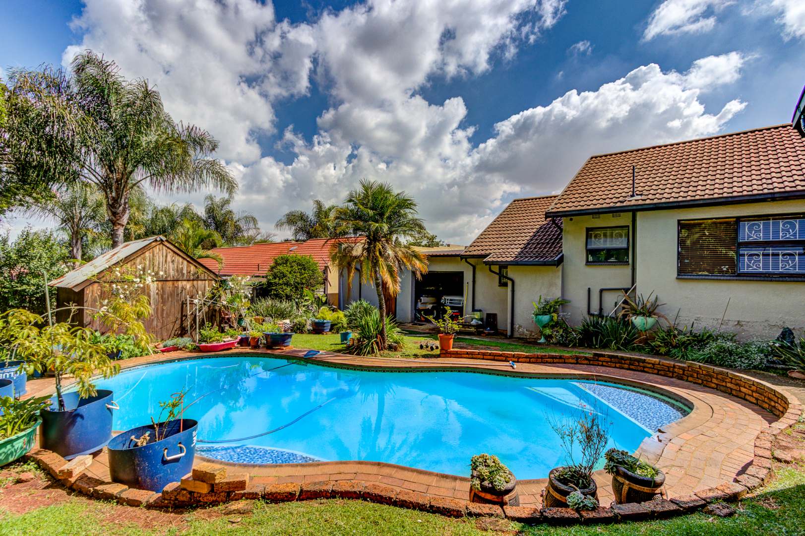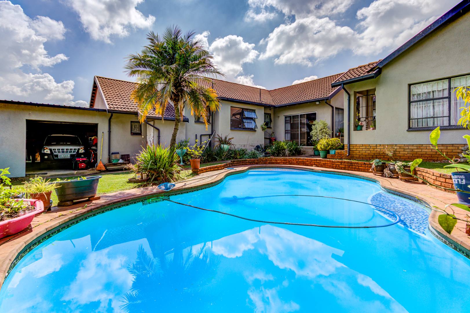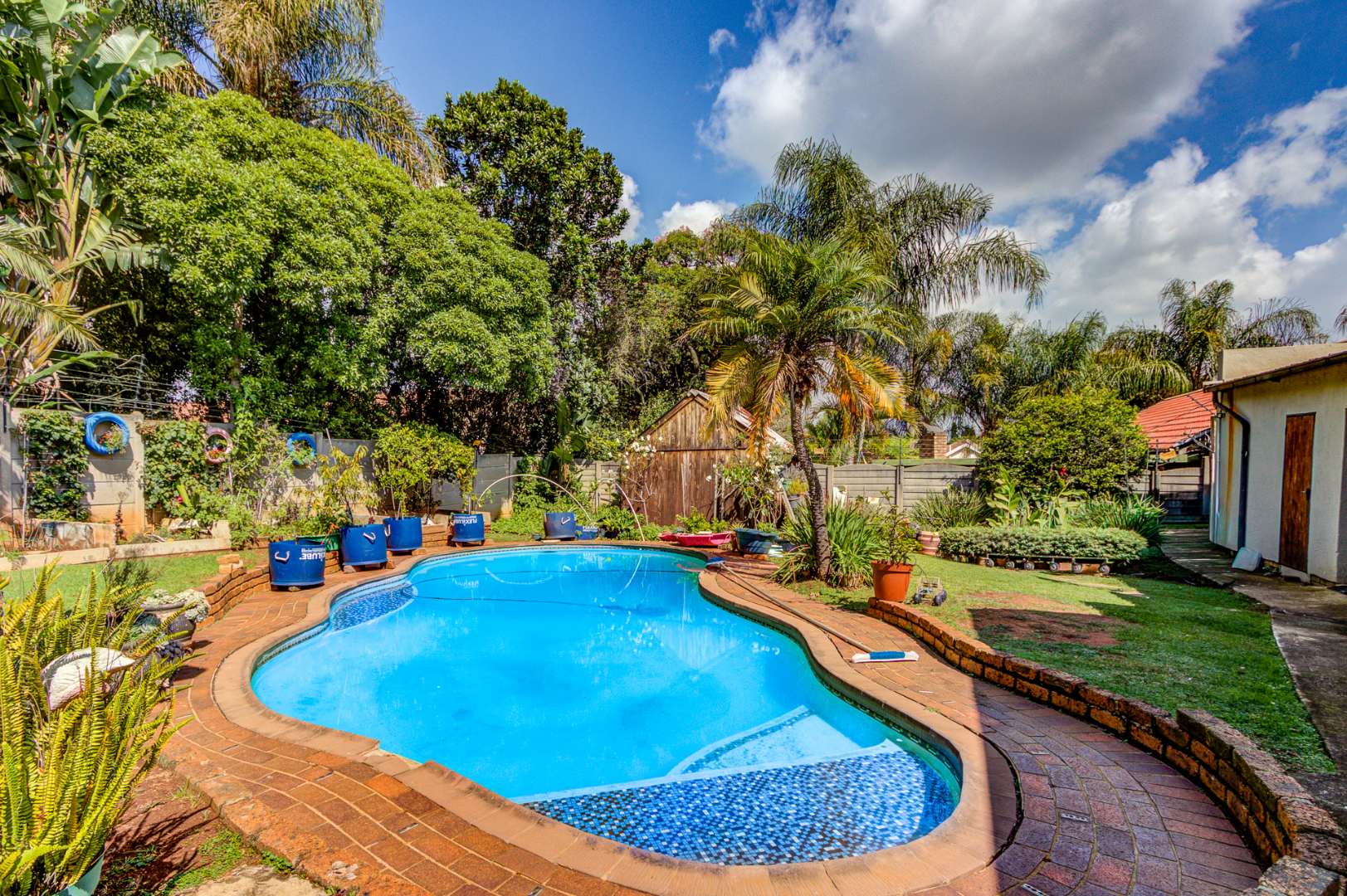 Step outside and discover your very own private paradise. Imagine sunny days by the refreshing swimming pool, chilling in the well-kept garden, or hosting epic braais with the built-in bar. There's even a handy Wendy House for extra storage or a fun play space, and a convenient outside toilet. And don't worry about privacy or safety; the whole property is totally walled, and you've got burglar bars and a security gate for peace of mind.