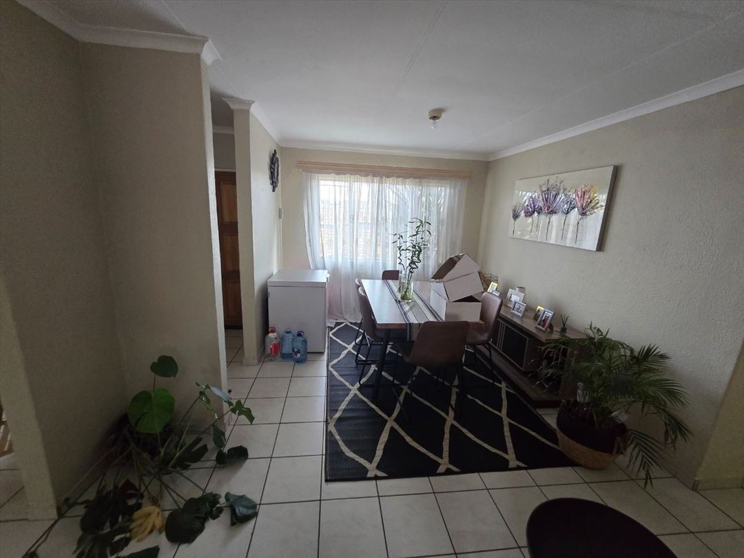 Discover this inviting 3-bedroom, 2-bathroom residence nestled within the established Frangipani complex in Terenure, Kempton Park. This suburban setting in South Africa offers a convenient lifestyle, blending community living with easy access to local amenities. The property presents a durable brick exterior, complemented by established garden plants and a welcoming stepping stone pathway. Step inside to a functional and well-lit interior spanning 142.00 sqm. The home features a comfortable lounge and a dedicated dining area, both benefiting from ample natural light through large windows. Tiled flooring throughout ensures easy maintenance, while neutral wall colours provide a versatile canvas. The practical kitchen offers generous counter and storage space, tiled walls, and an integrated hob and oven, complemented by a compact utility area with a double sink. Accommodation includes three well-proportioned bedrooms, with the master featuring an ensuite bathroom for added privacy. Built-in wardrobes ensure ample storage in the bedrooms, contributing to a tidy living environment. The property boasts a private outdoor space, ideal for relaxation or small gatherings, alongside a manageable garden area. Practicality is further enhanced by two individual private garages, providing secure parking and additional storage. The complex benefits from an electric fence, and the home features security bars on some windows, contributing to peace of mind within this suburban complex. Key Features: * 3 Bedrooms, 2 Bathrooms (1 Ensuite) * 1 Lounge, 1 Dining Room, 1 Kitchen * 2 Private Garages * 142.00 sqm Floor Size * Electric Fencing & Window Security Bars * Tiled Flooring Throughout * Established Garden & Private Outdoor Space * Suburban Complex Living