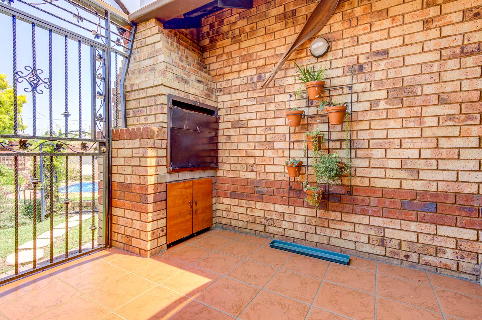 Discover this charming 3 bedroom, 2 bathroom home nestled in a residential complex within the sought-after Van Riebeeck Park, Kempton Park. The property immediately impresses with its durable brick exterior, classic tiled roof, and a well-maintained, compact front garden, complemented by a paved driveway leading to a convenient double garage. Step inside to an inviting open-plan living area, featuring practical tiled flooring that extends throughout. Large glass sliding doors flood the space with natural light and offer seamless access to the outdoor entertainment area with built-in braai. The functional kitchen boasts wooden cabinetry and a built-in wine rack, catering to everyday needs. Comfort is assured with air conditioning units installed in key areas, including one of the bedrooms.Accommodation comprises three comfortable bedrooms and two bathrooms, providing ample space for a family. Each room is designed for practicality, with tiled floors ensuring easy maintenance.