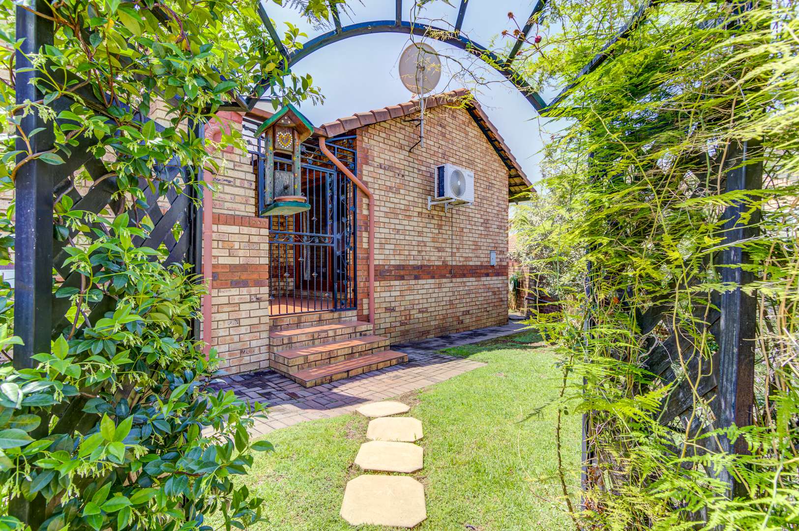 Outside, the lifestyle features truly shine. Enjoy a private, covered swimming pool set within a mature, landscaped garden perfect for relaxation and entertaining. A covered outdoor space with a built-in braai and tiled floor provides an ideal setting for gatherings. Pets are allowed, making this a welcoming home for all family members. Lovely manicured garden with glowing water stream makes this Estate irresistible.