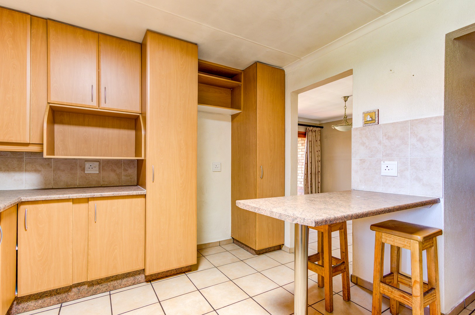 Discover this charming 3 bedroom, 2 bathroom home nestled in a residential complex within the sought-after Van Riebeeck Park, Kempton Park. The property immediately impresses with its durable brick exterior, classic tiled roof, and a well-maintained, compact front garden, complemented by a paved driveway leading to a convenient double garage. Step inside to an inviting open-plan living area, featuring practical tiled flooring that extends throughout. Large glass sliding doors flood the space with natural light and offer seamless access to the outdoor entertainment area with built-in braai. The functional kitchen boasts wooden cabinetry and a built-in wine rack, catering to everyday needs. Comfort is assured with air conditioning units installed in key areas, including one of the bedrooms.Accommodation comprises three comfortable bedrooms and two bathrooms, providing ample space for a family. Each room is designed for practicality, with tiled floors ensuring easy maintenance.
